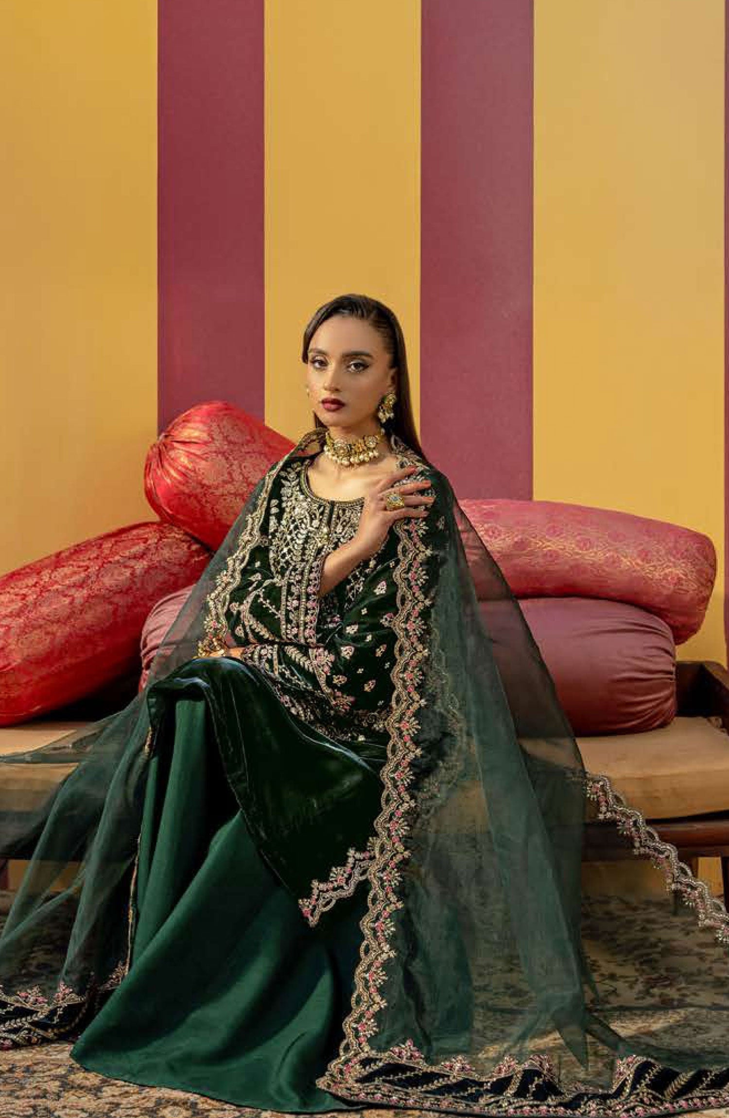 Maria B Unstitched Festive 2024 has been styled in the image for photography and illustrative purposes.
