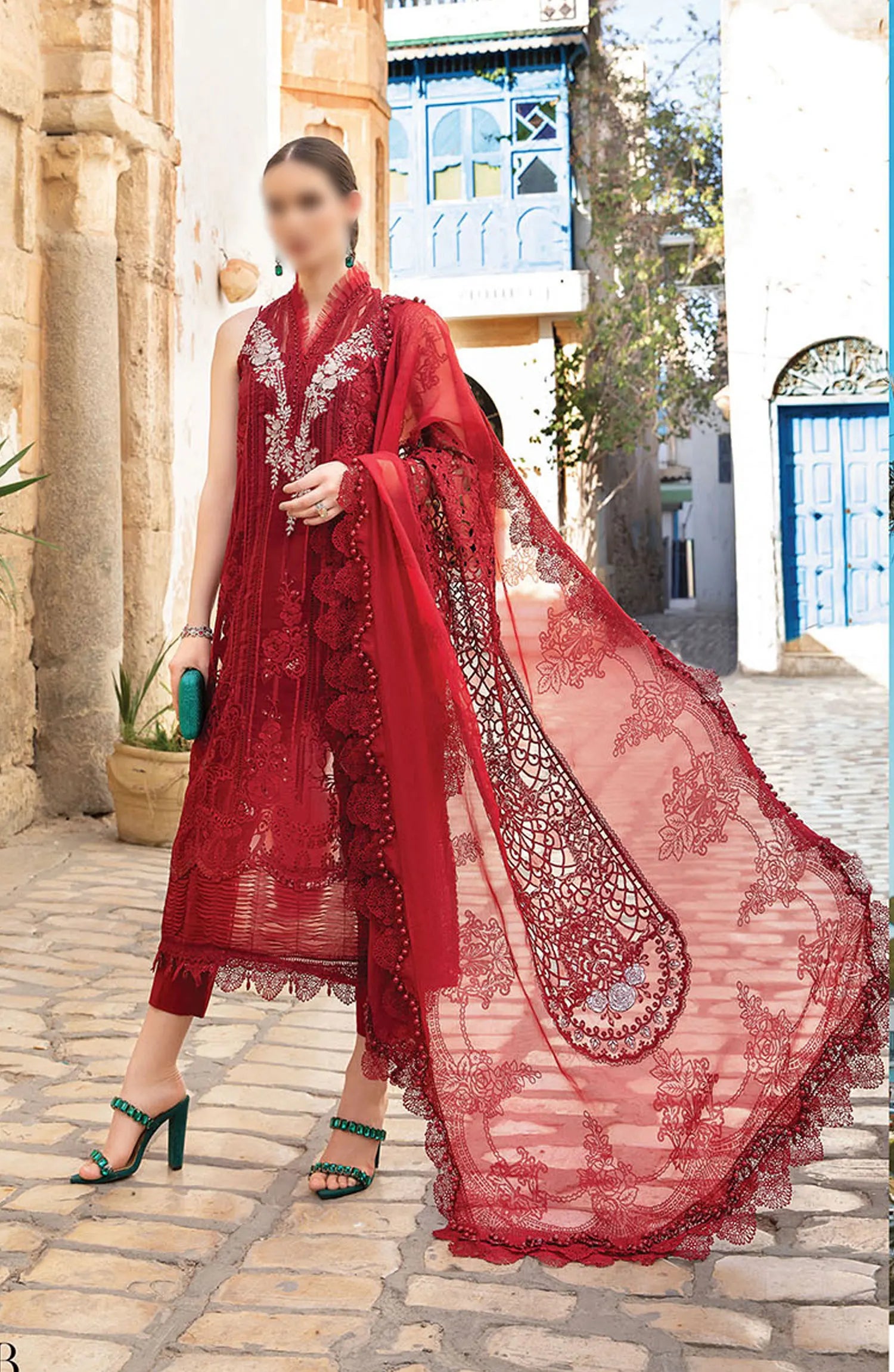 Maria B Unstitched Luxury Lawn Collection 2024 has been styled in the image for photography and illustrative purposes.