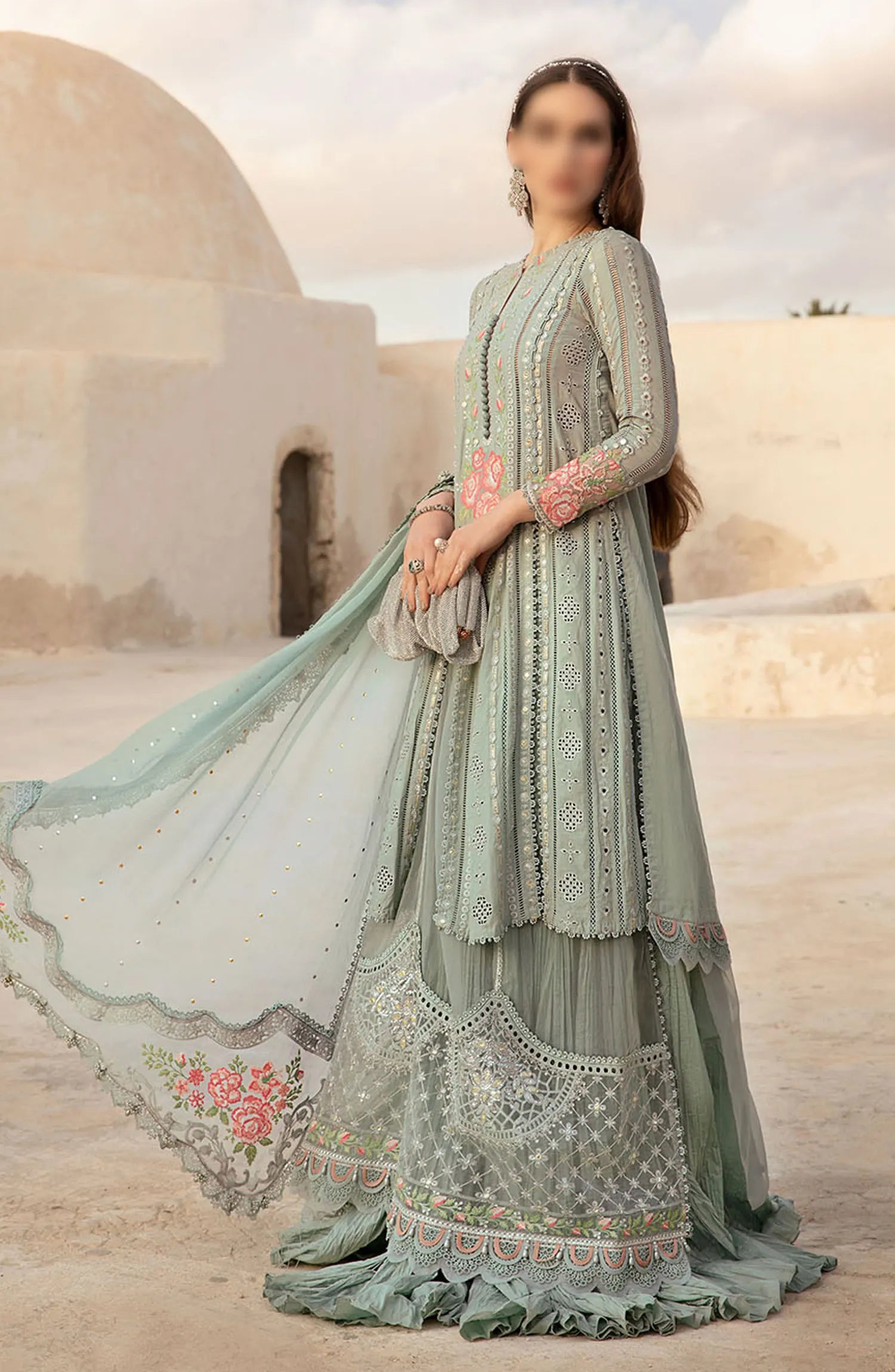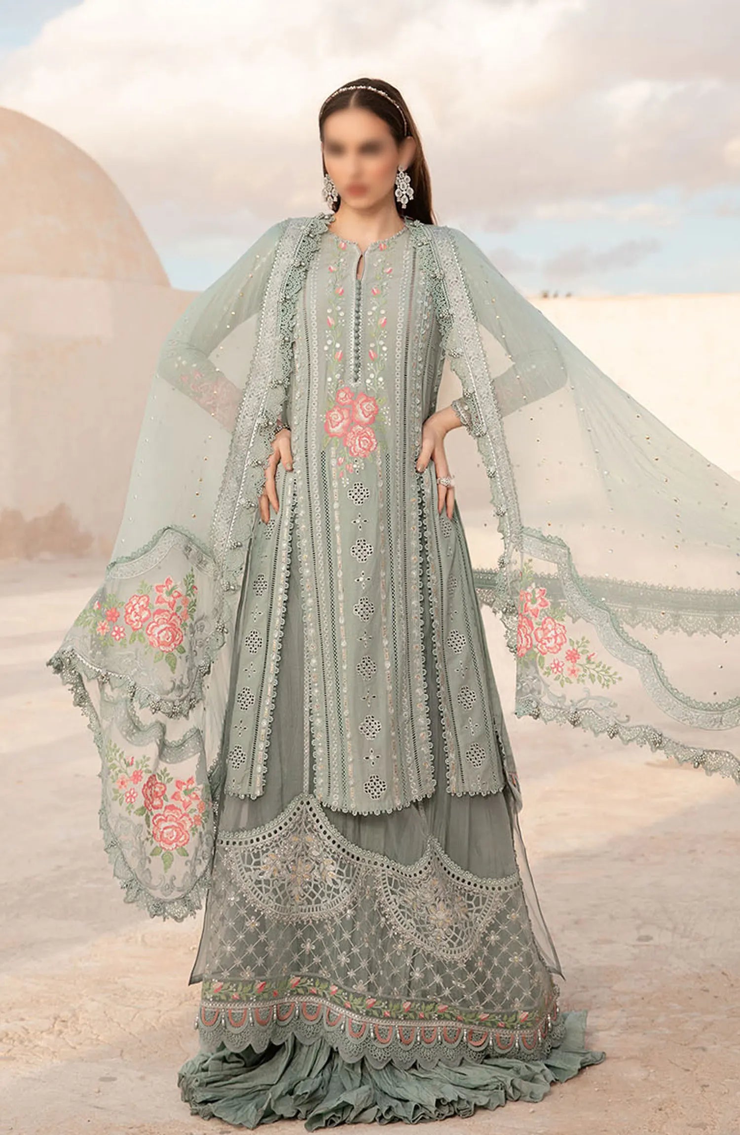 Maria B Unstitched Luxury Lawn Collection 2024 has been styled in the image for photography and illustrative purposes.