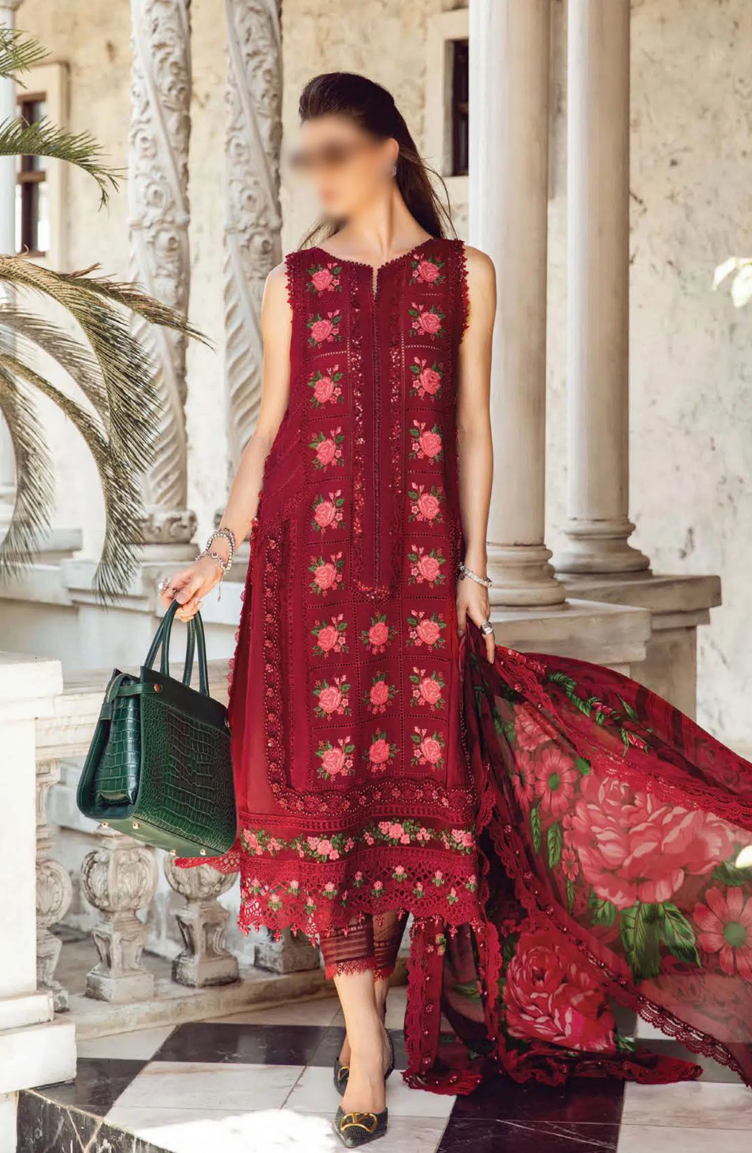 Maria B Unstitched Luxury Lawn Eid Edition 02 has been styled in the image for photography and illustrative purposes.