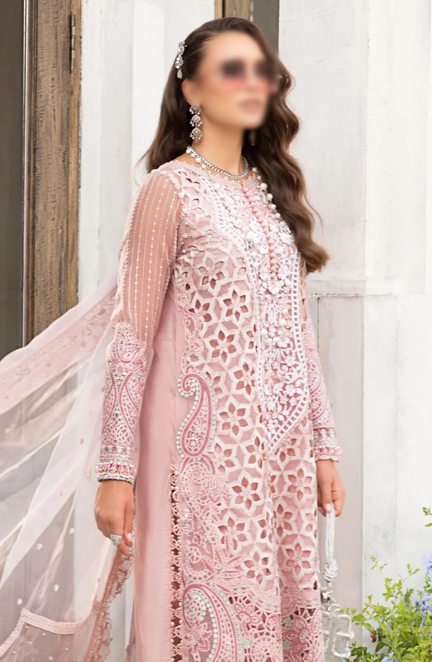 Maria B Unstitched Luxury Lawn Eid Edition 02 has been styled in the image for photography and illustrative purposes.