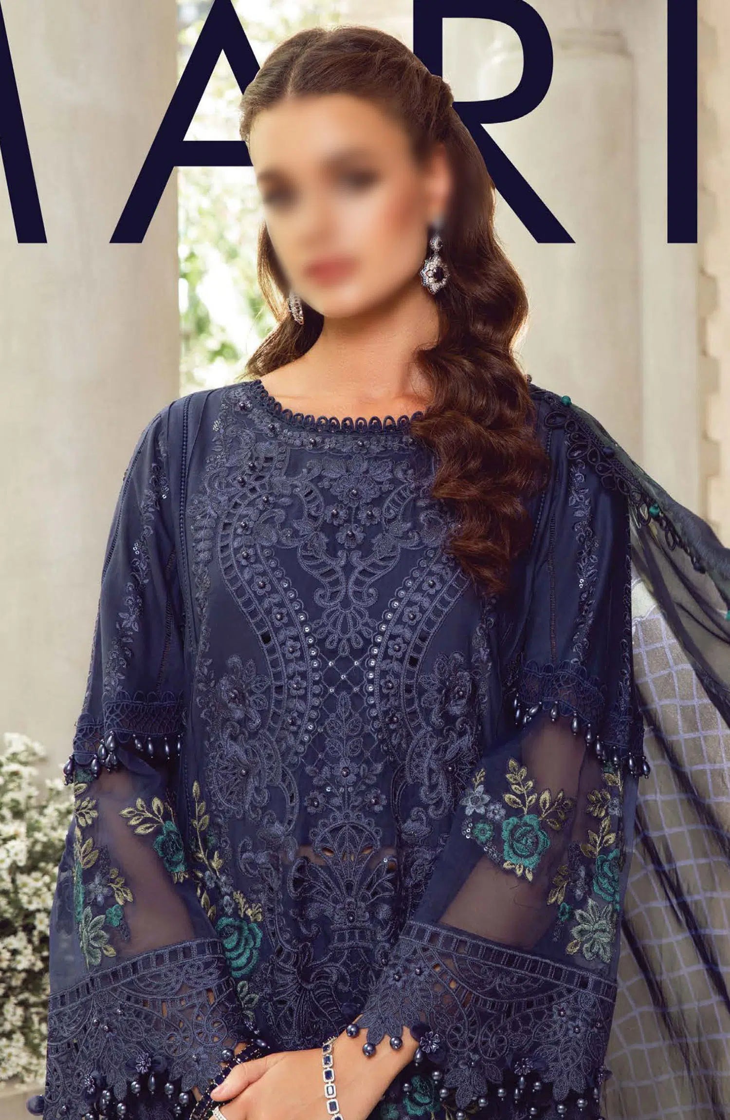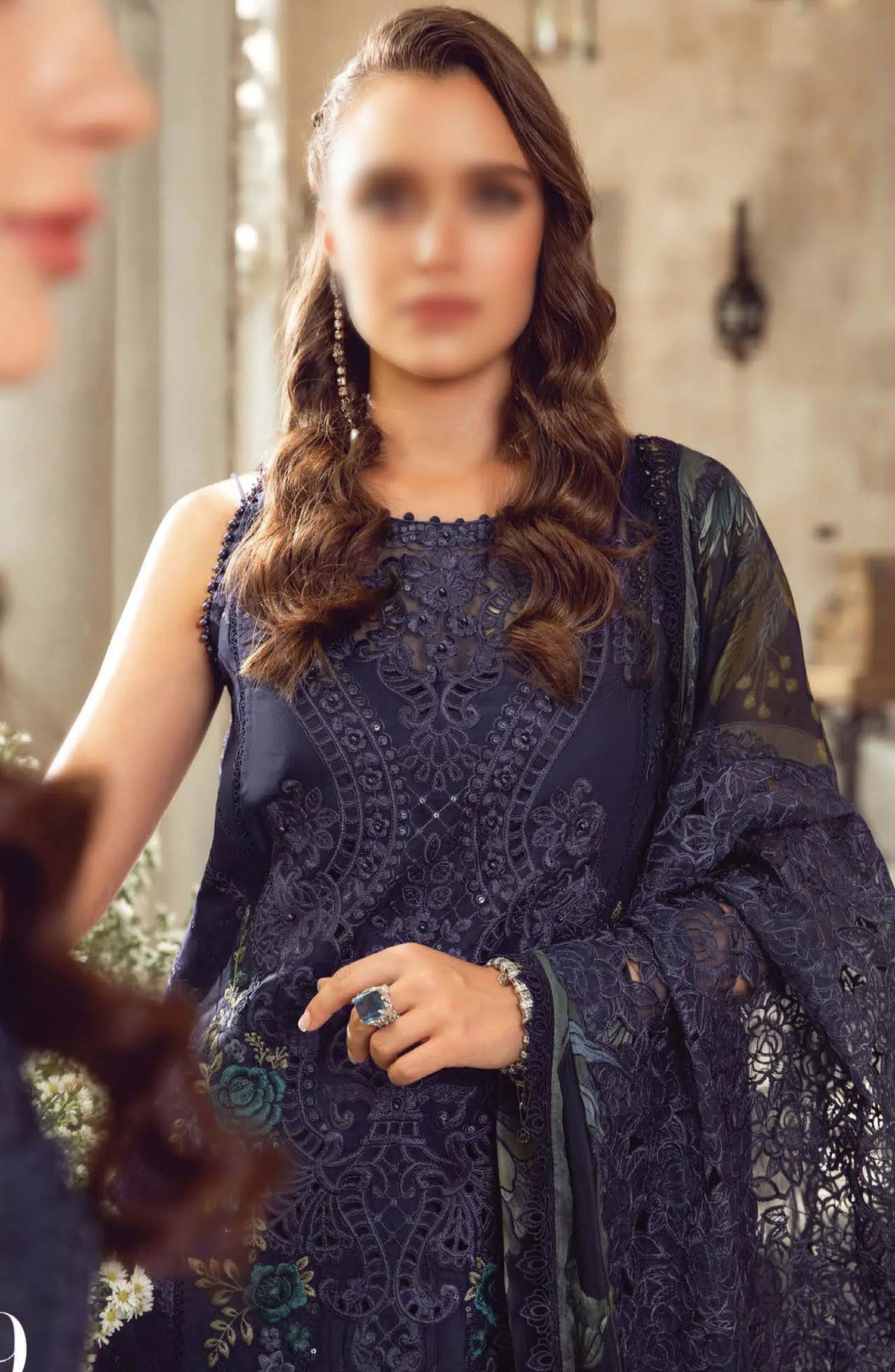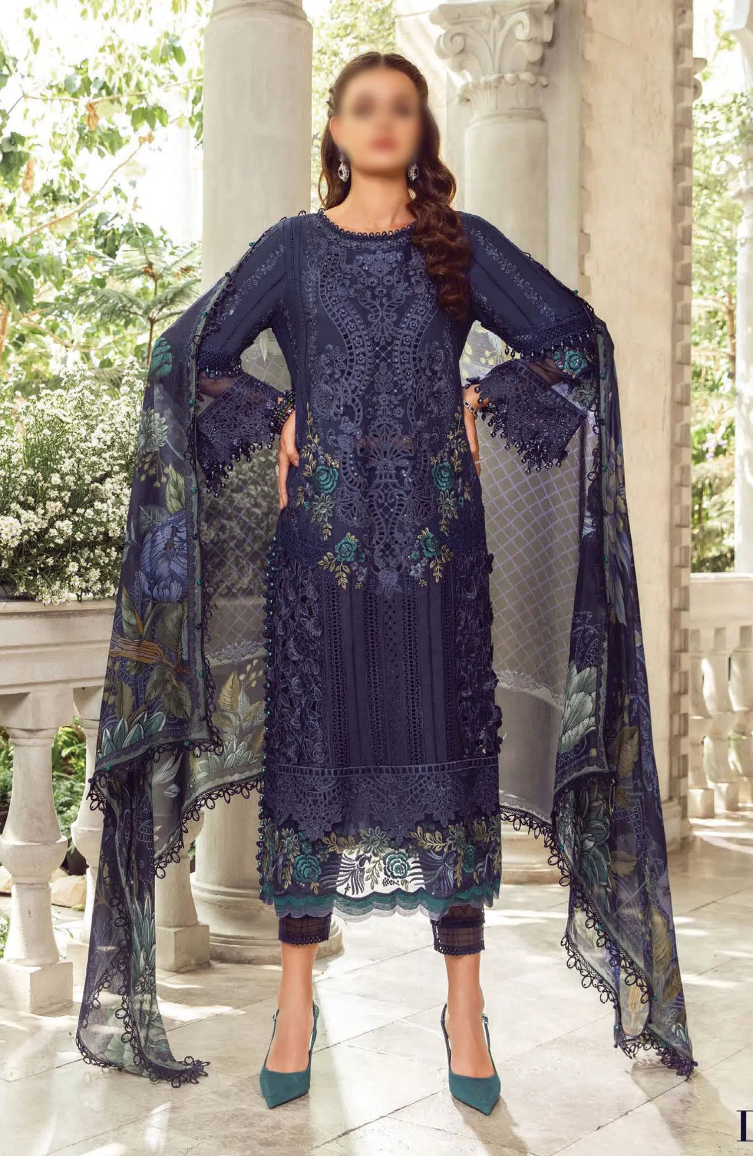 Maria B Unstitched Luxury Lawn Eid Edition 02 has been styled in the image for photography and illustrative purposes.