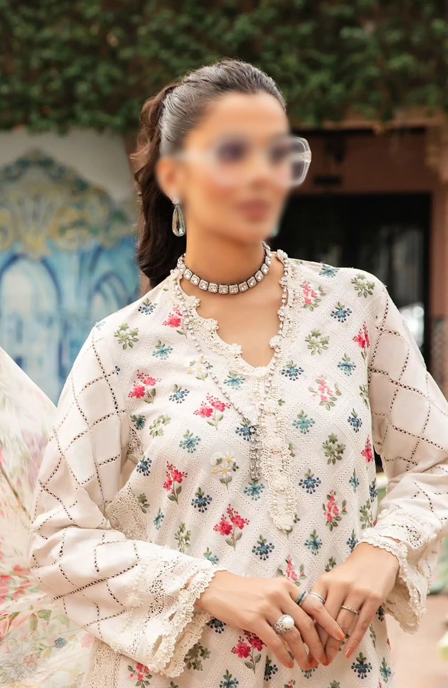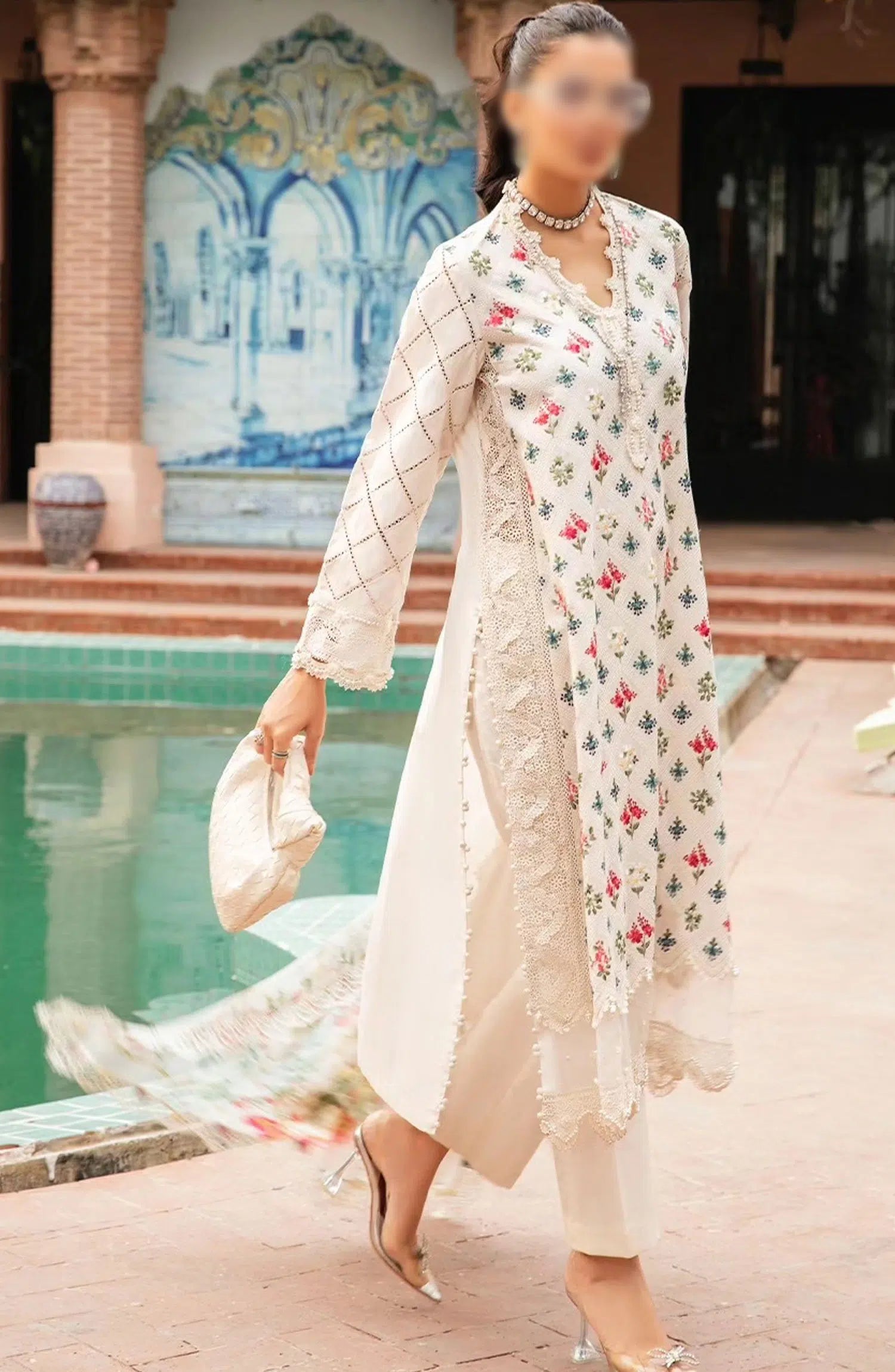 Maria B Unstitched M Prints Eid Edit Vol 02 has been styled in the image for photography and illustrative purposes.