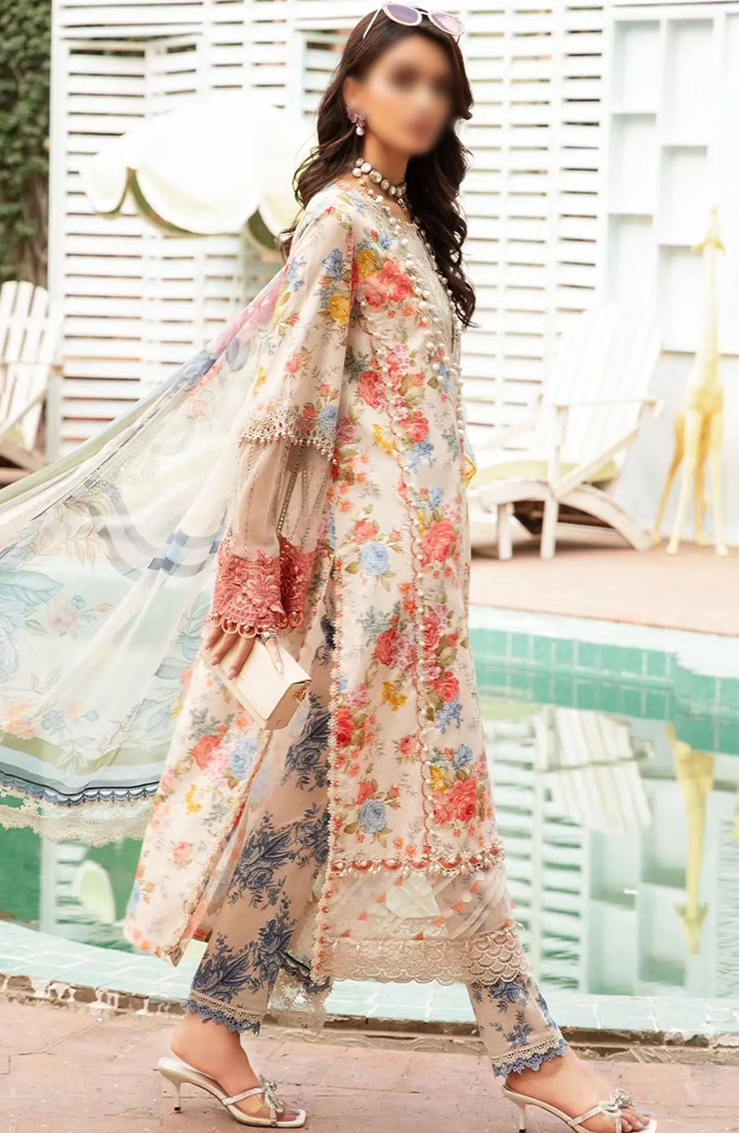 Maria B Unstitched M Prints Eid Edit Vol 02 has been styled in the image for photography and illustrative purposes.
