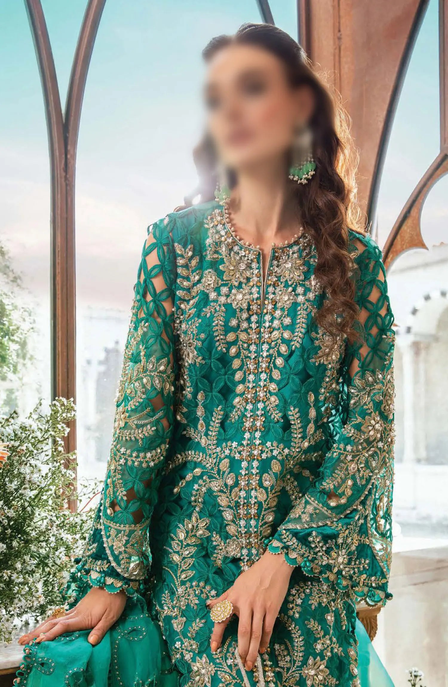 Maria B Unstitched Mbroidered Eid Edition 2024 has been styled in the image for photography and illustrative purposes.