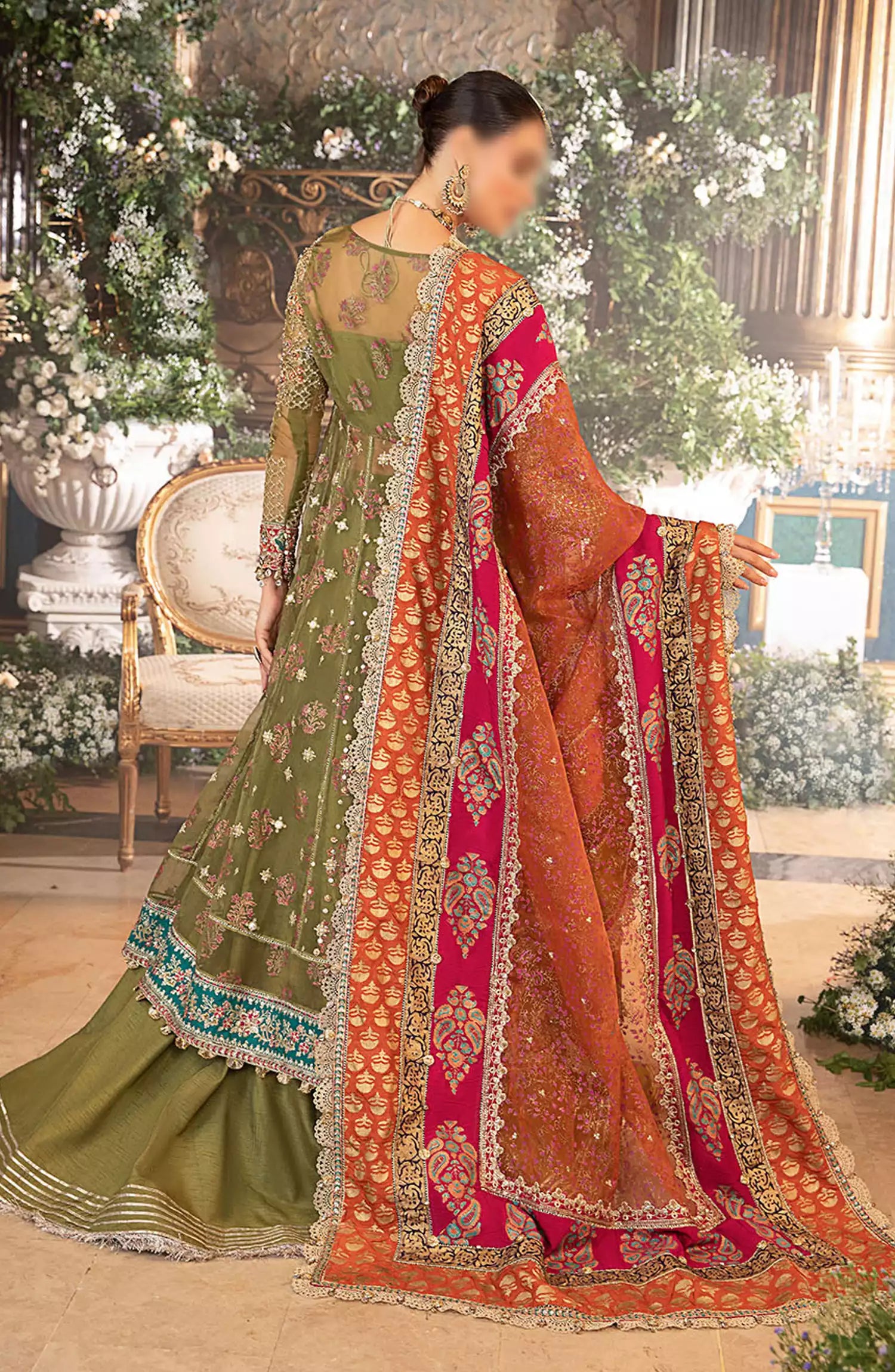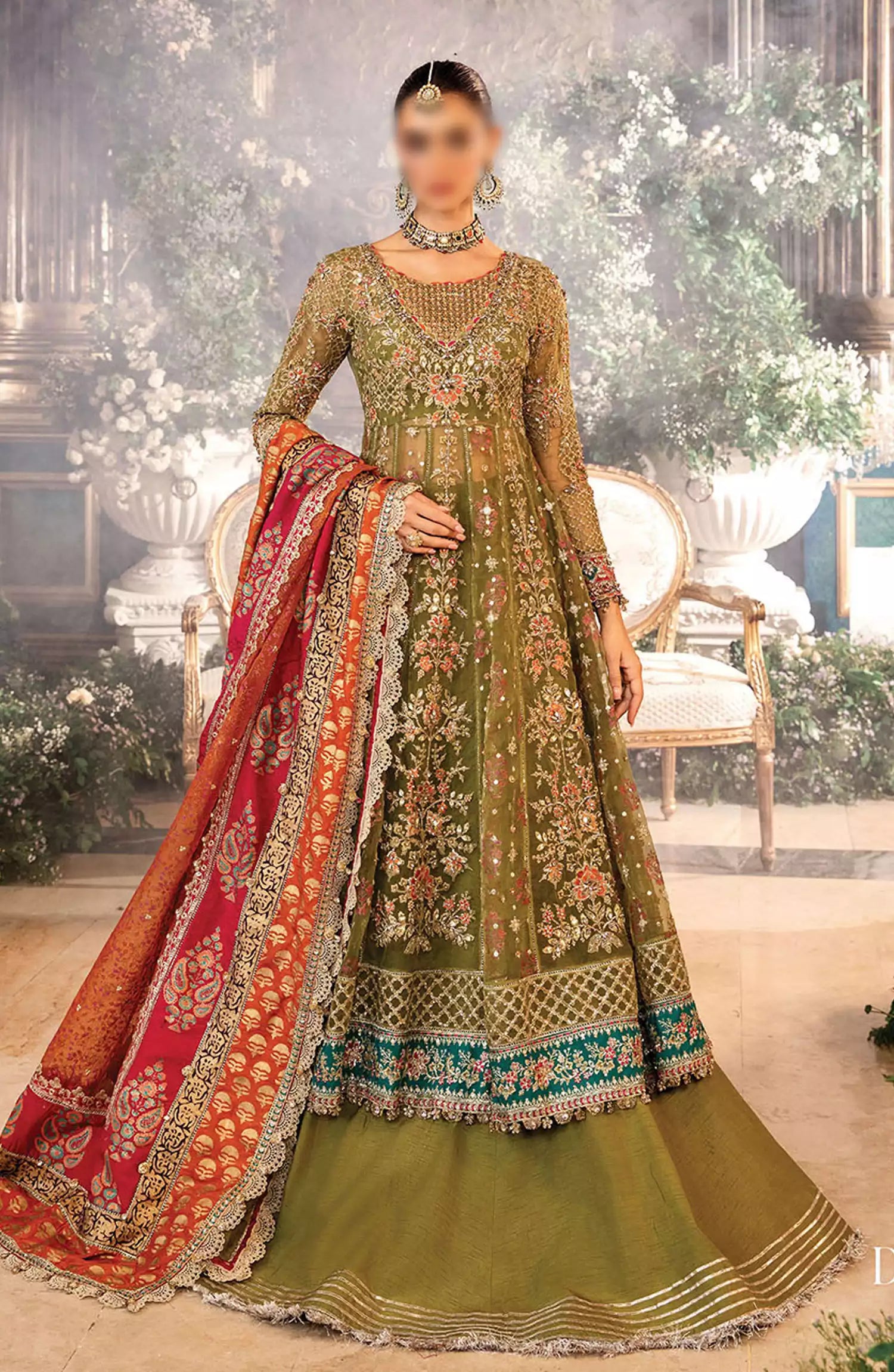 Maria B Unstitched Mbroidered Wedding Edit 2024 has been styled in the image for photography and illustrative purposes.