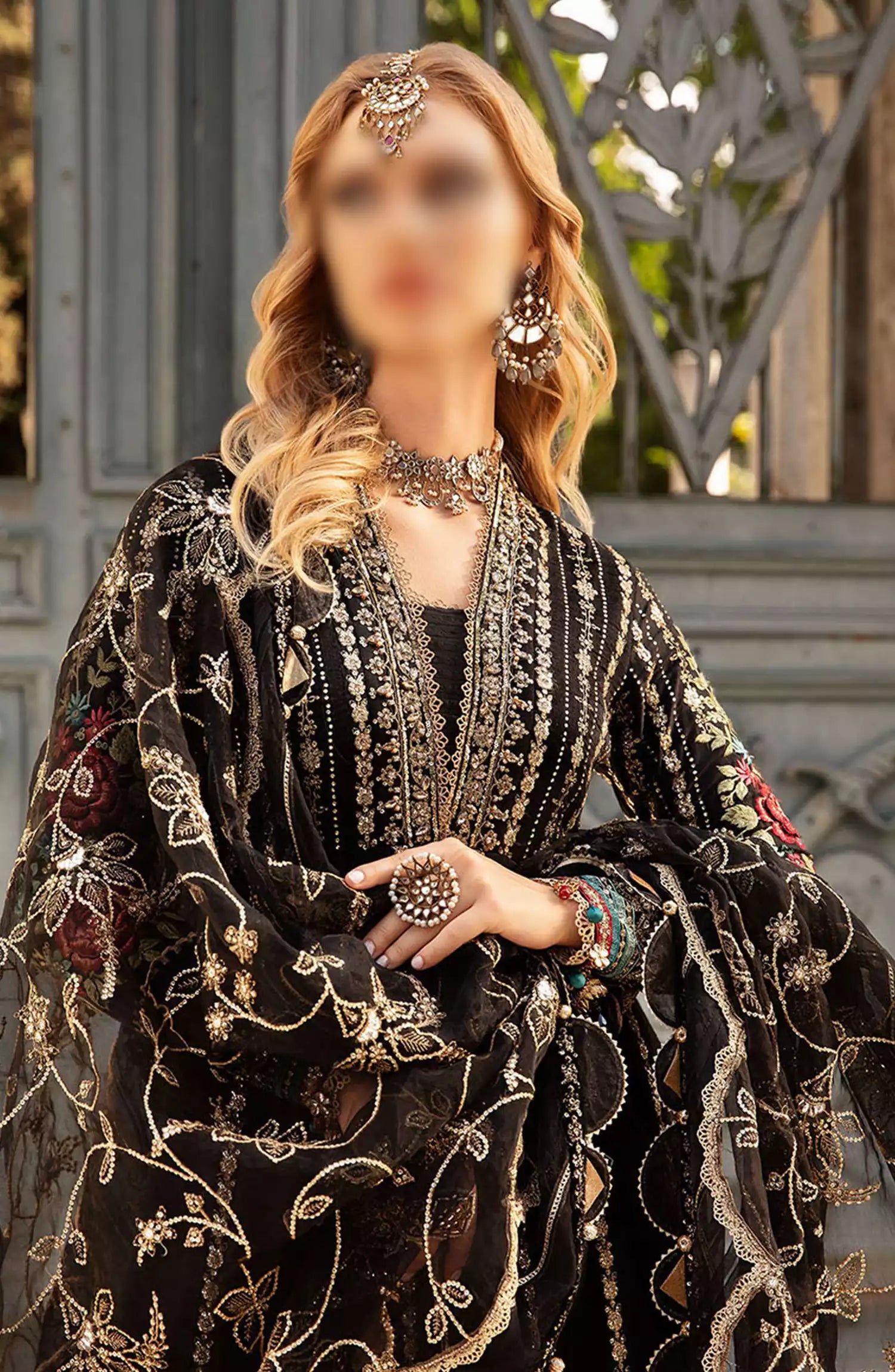 Maria B Unstitched Sateen Collection 2024 has been styled in the image for photography and illustrative purposes.