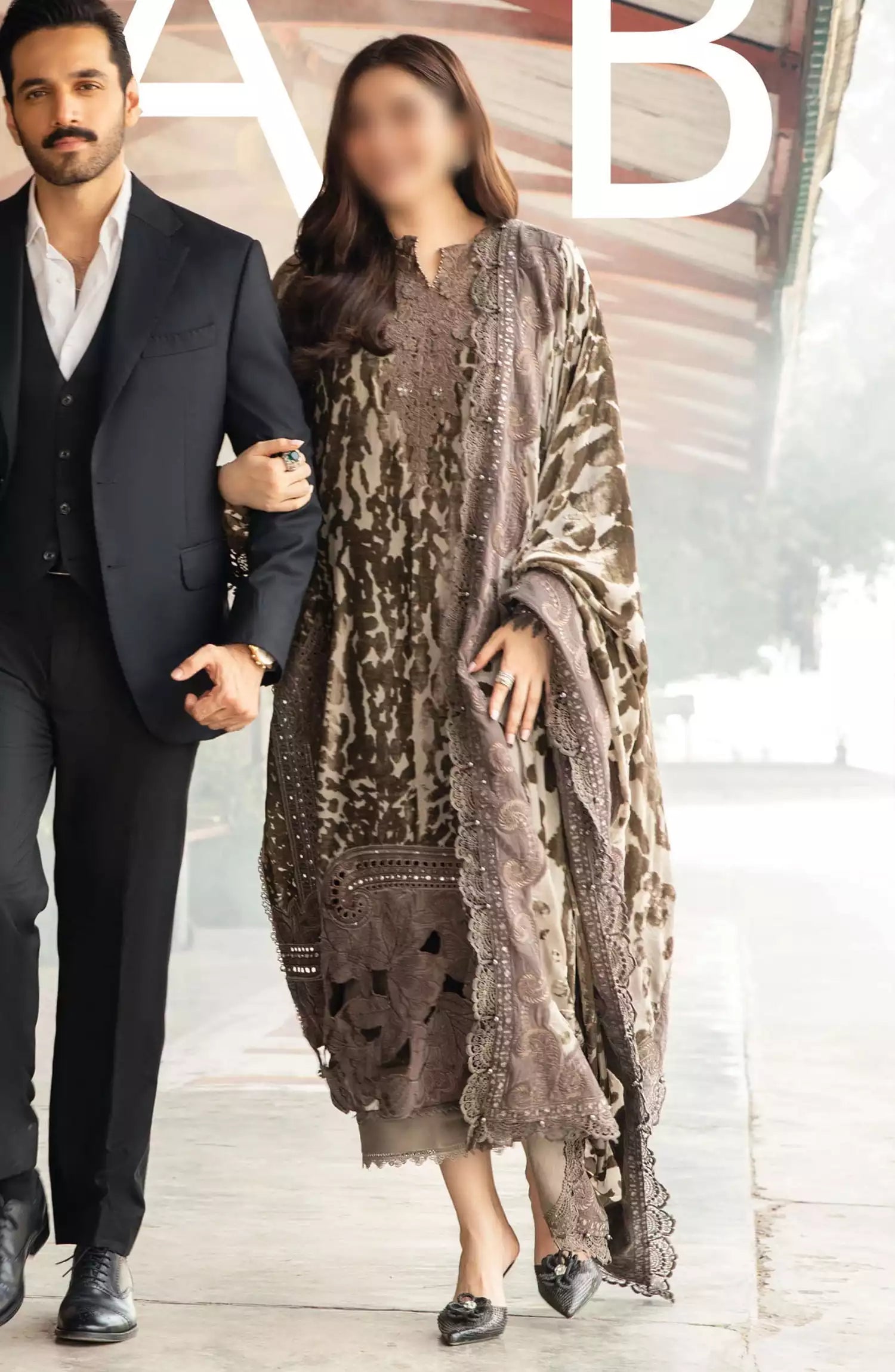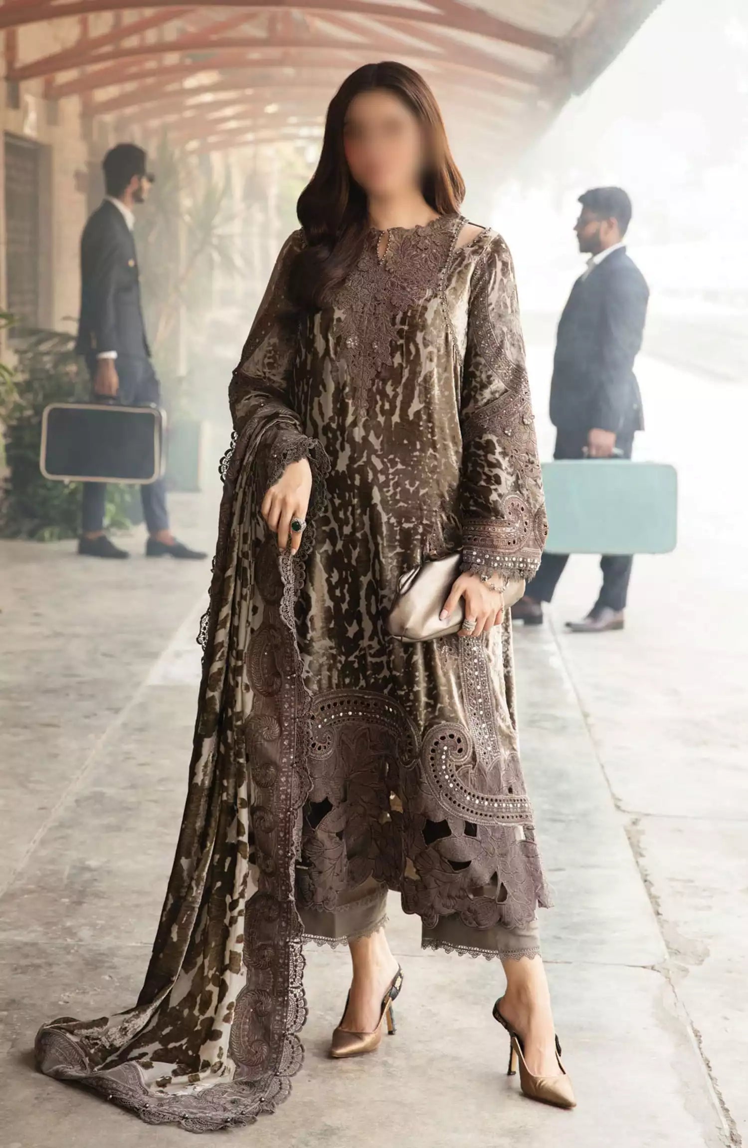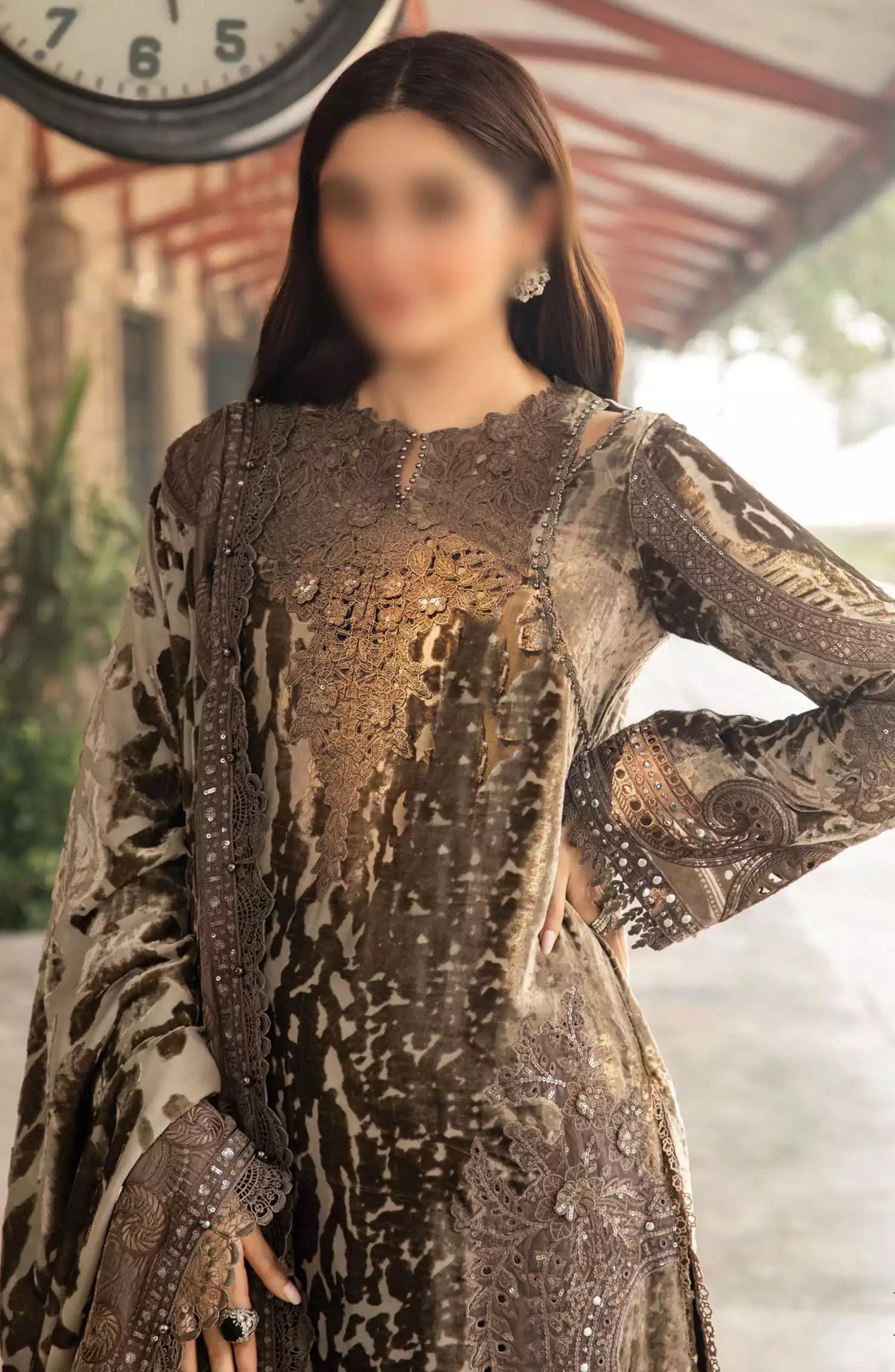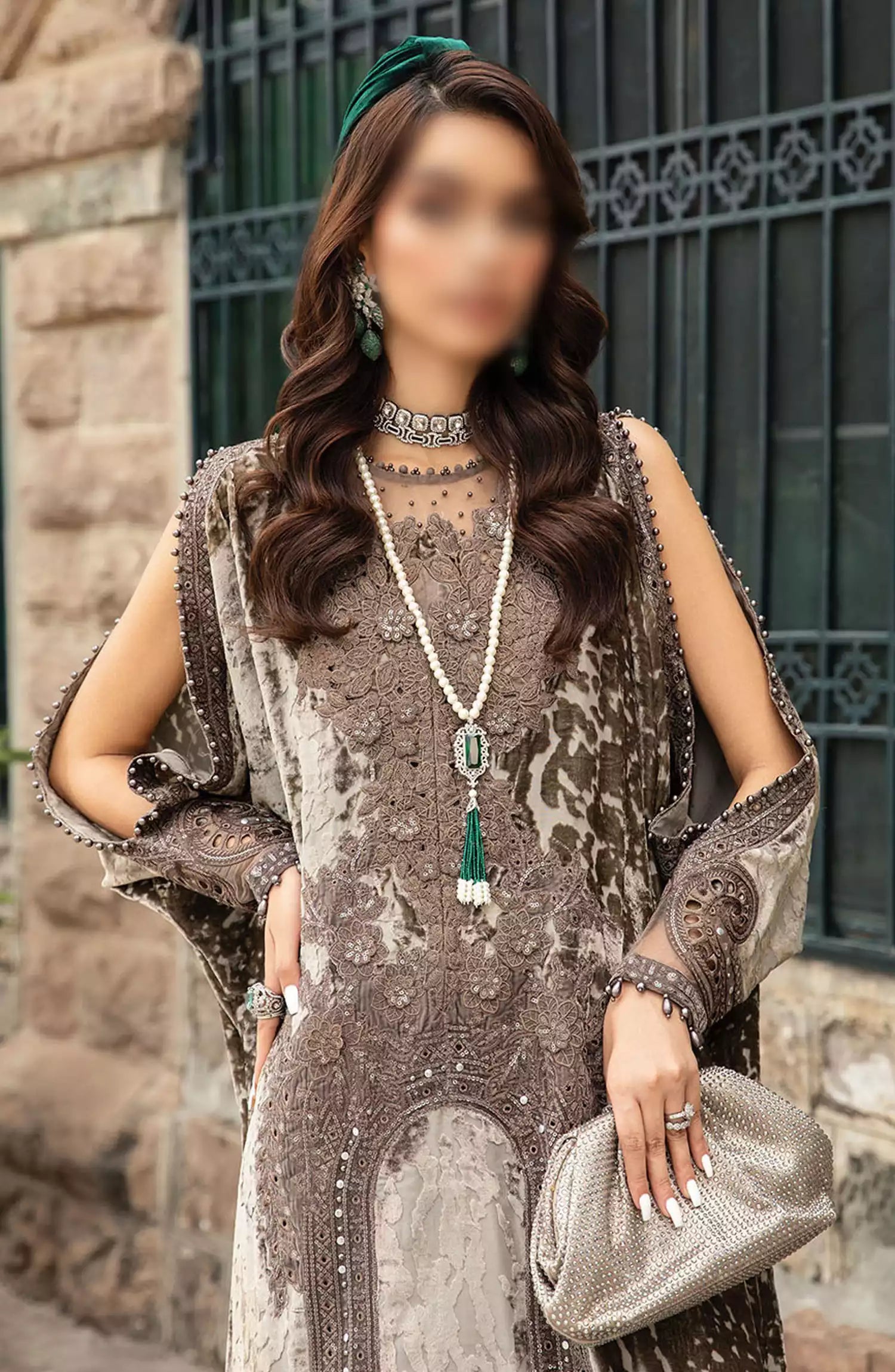 Maria B Unstitched Winter Luxe Collection 2024 has been styled in the image for photography and illustrative purposes.