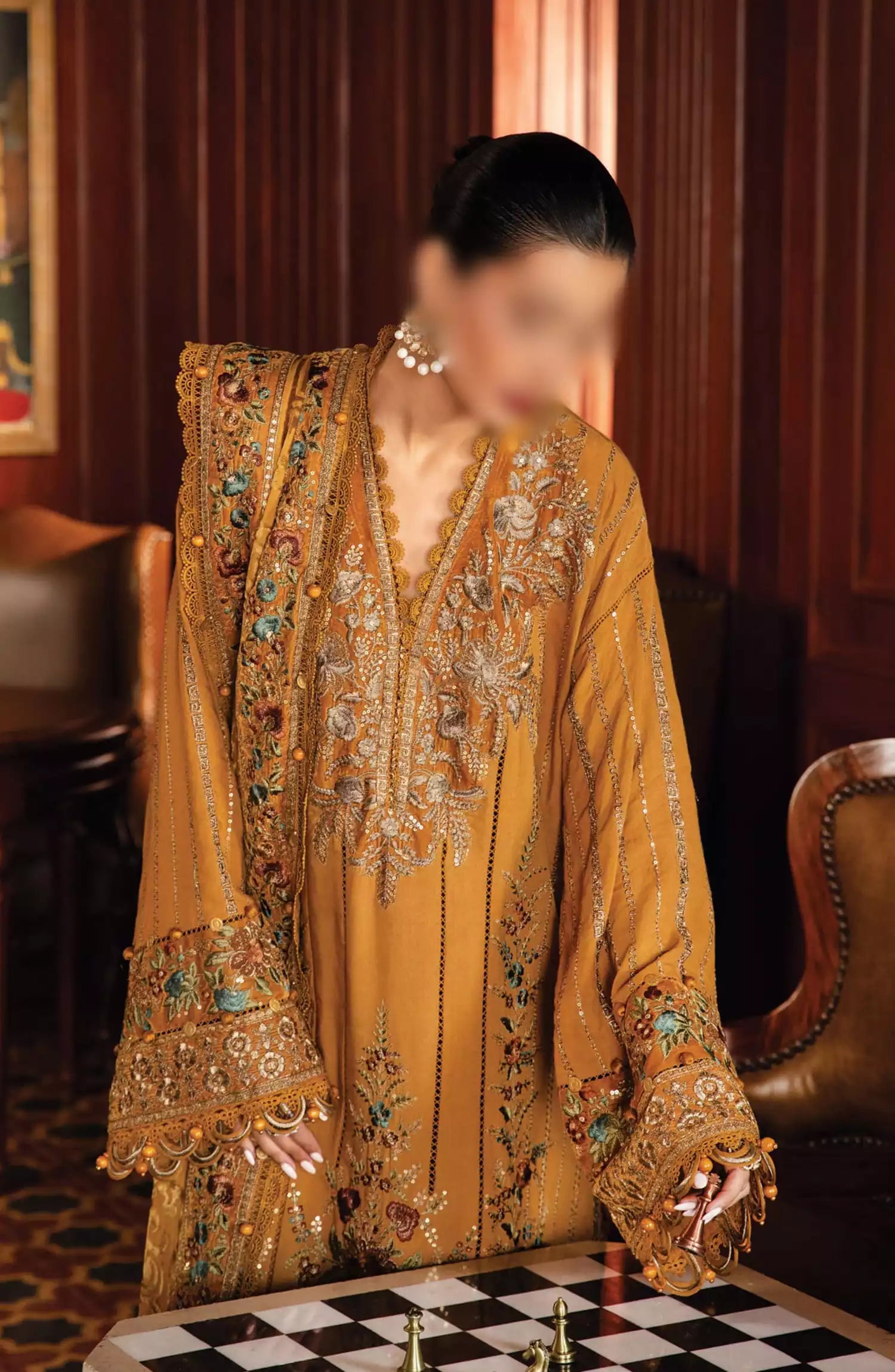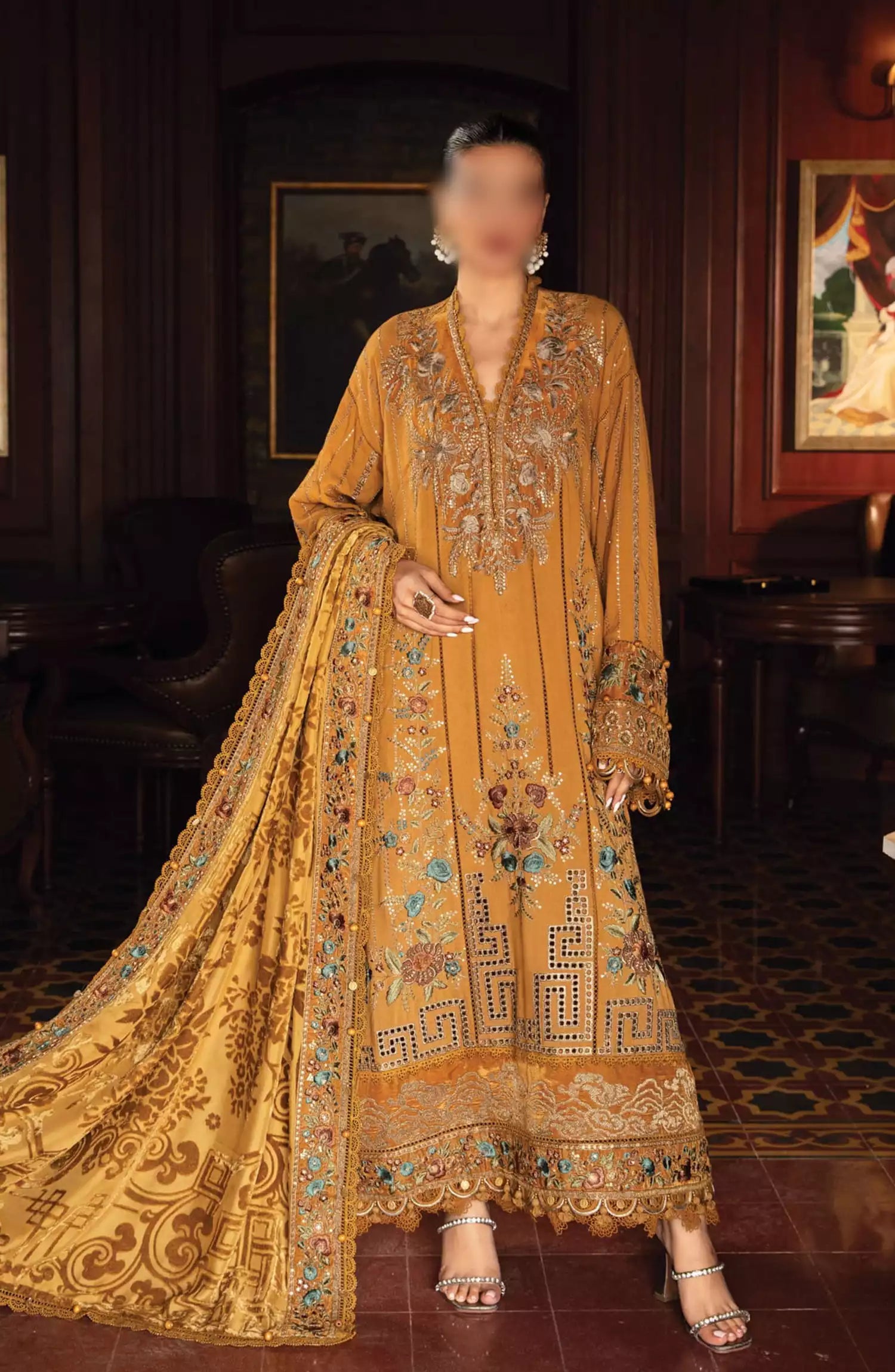 Maria B Unstitched Winter Luxe Collection 2024 has been styled in the image for photography and illustrative purposes.