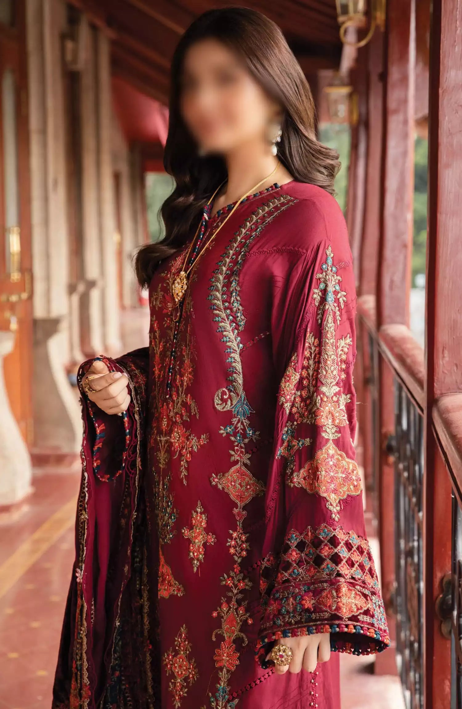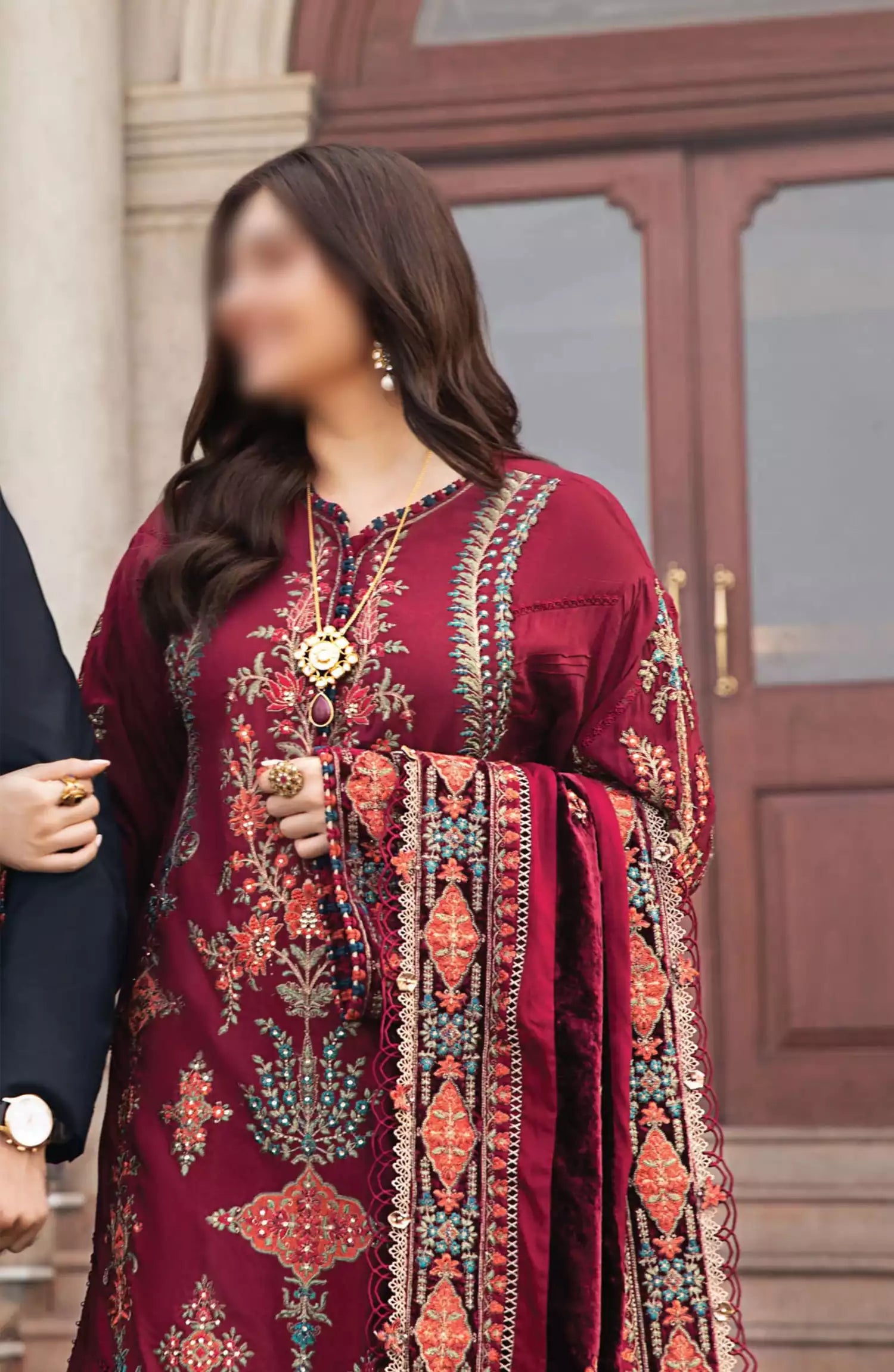 Maria B Unstitched Winter Luxe Collection 2024 has been styled in the image for photography and illustrative purposes.