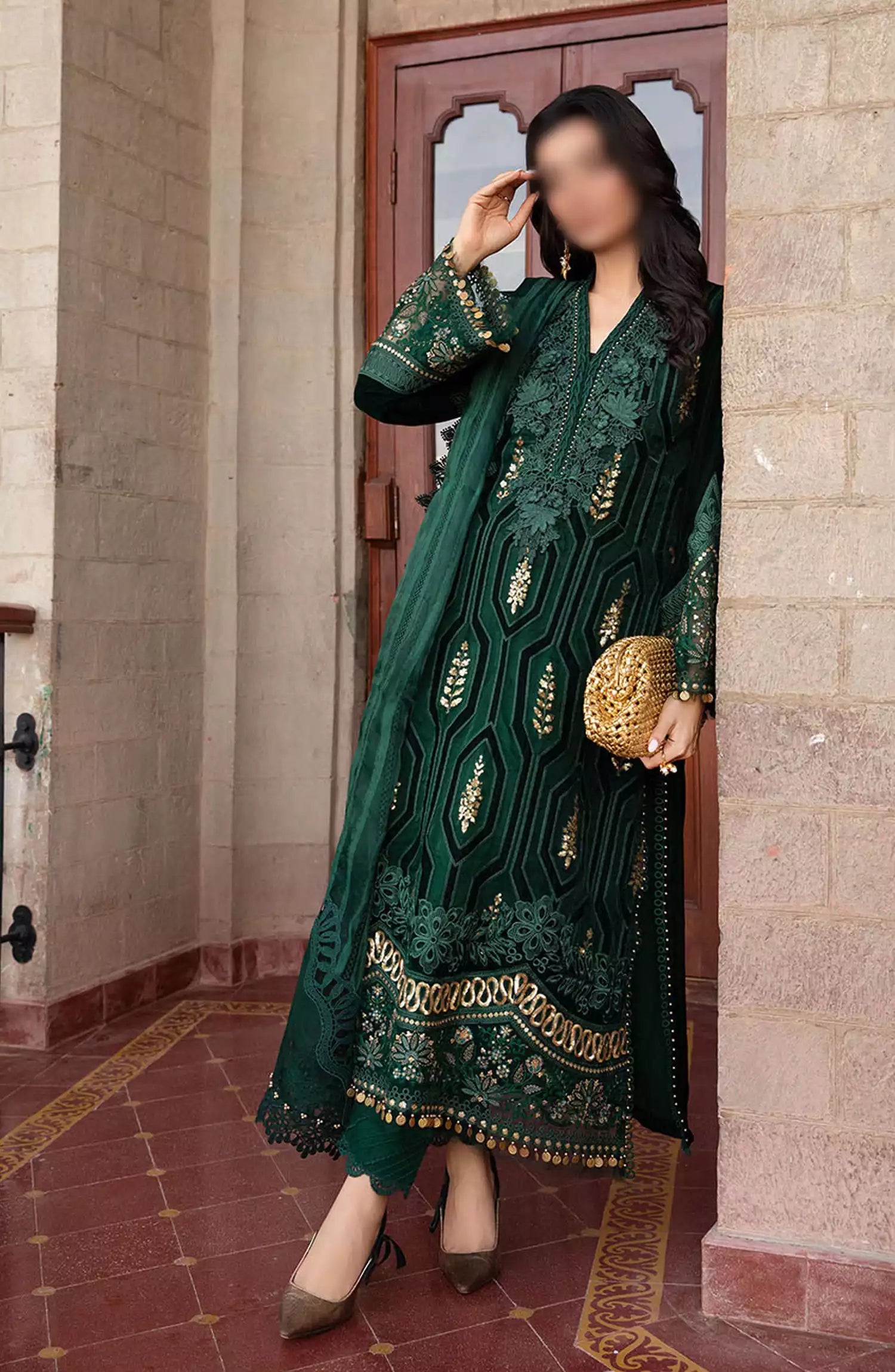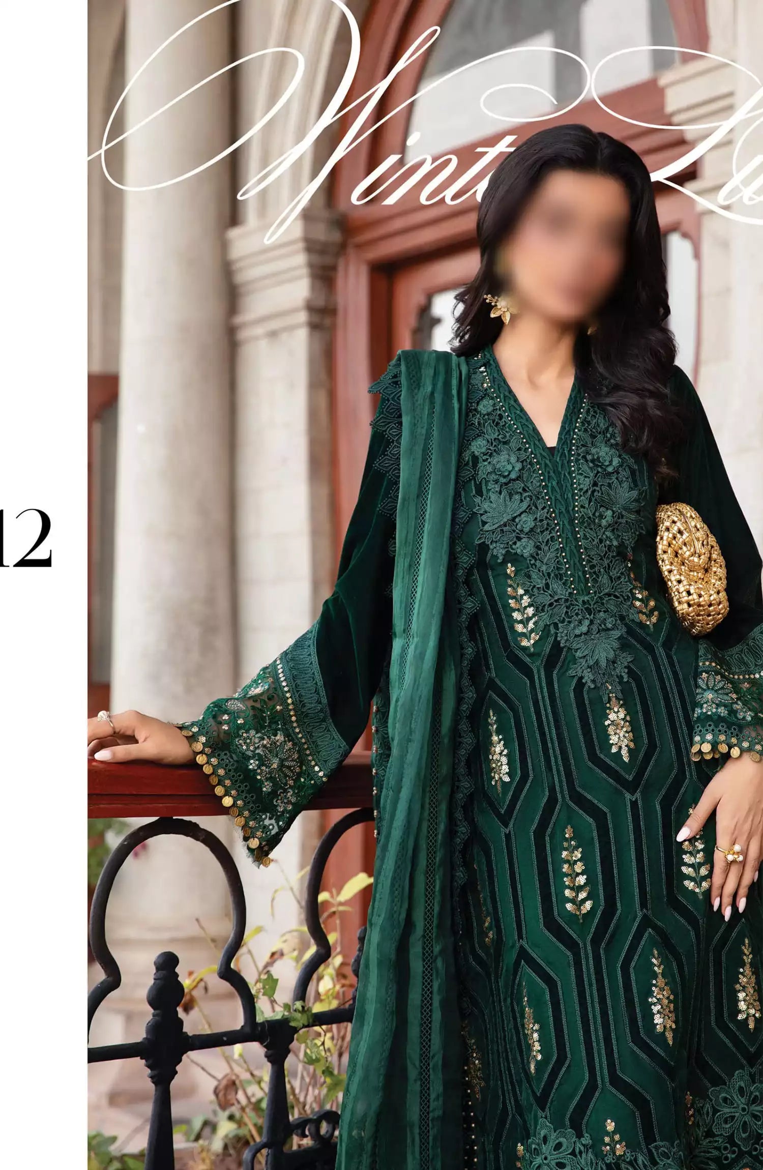 Maria B Unstitched Winter Luxe Collection 2024 has been styled in the image for photography and illustrative purposes.