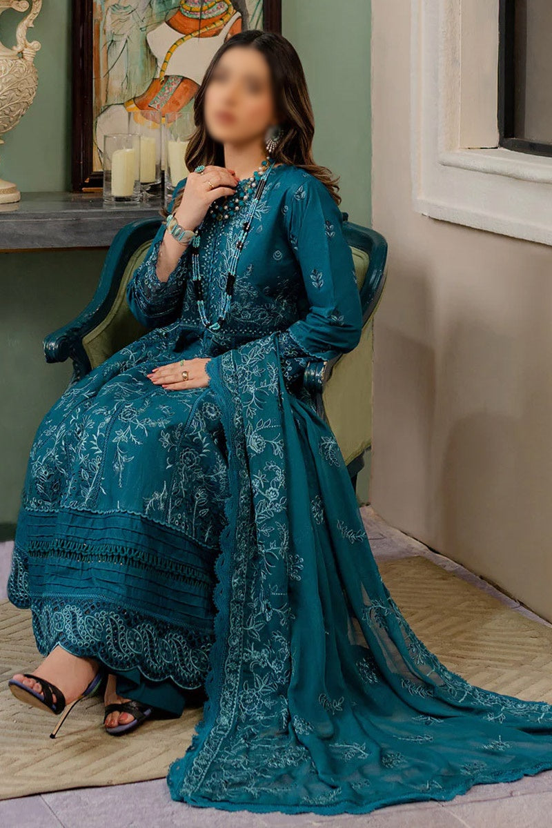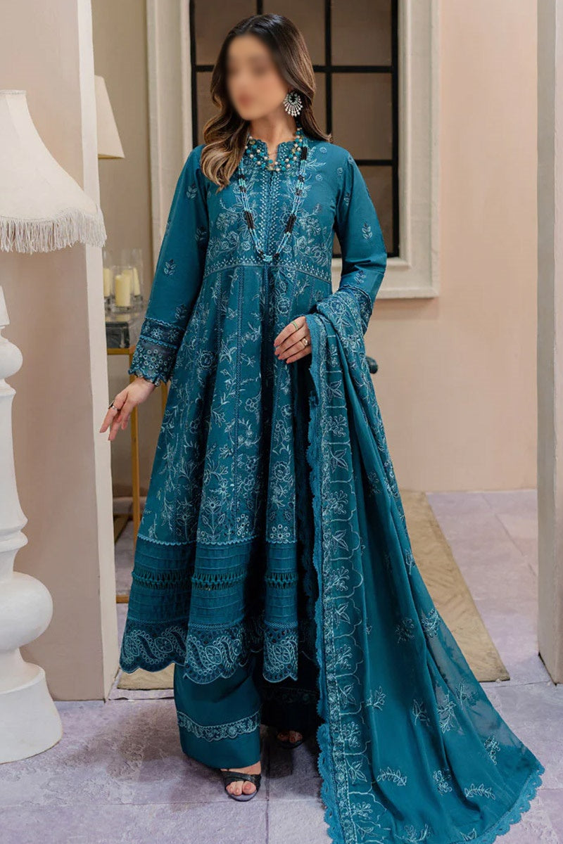 Marjjan Florence Embroidered Karandi Collection 2023 has been styled in the image for photography and illustrative purposes.