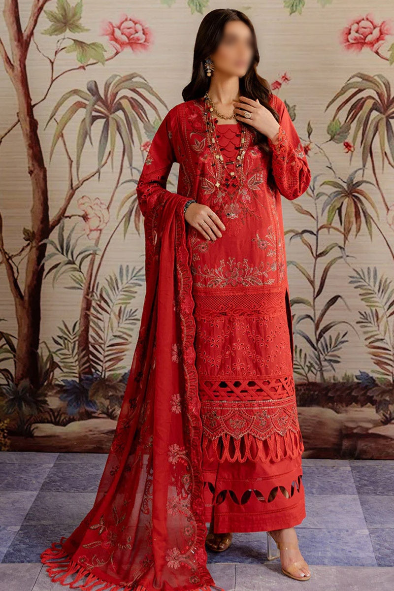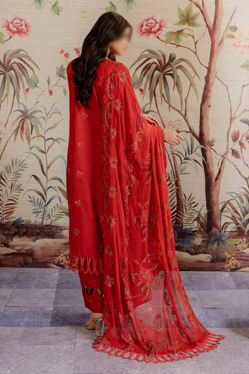 Marjjan Florence Embroidered Karandi Collection 2023 has been styled in the image for photography and illustrative purposes.