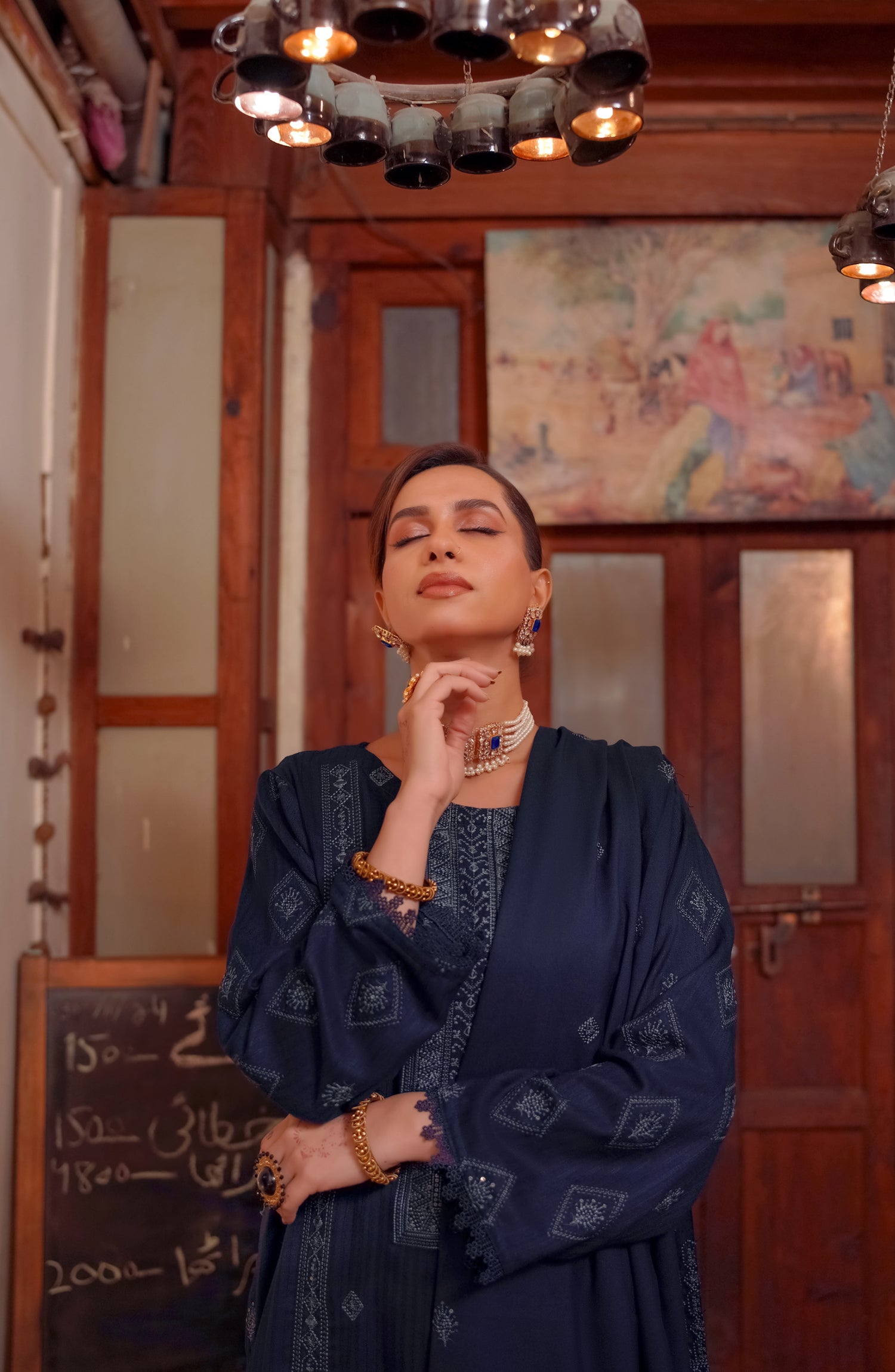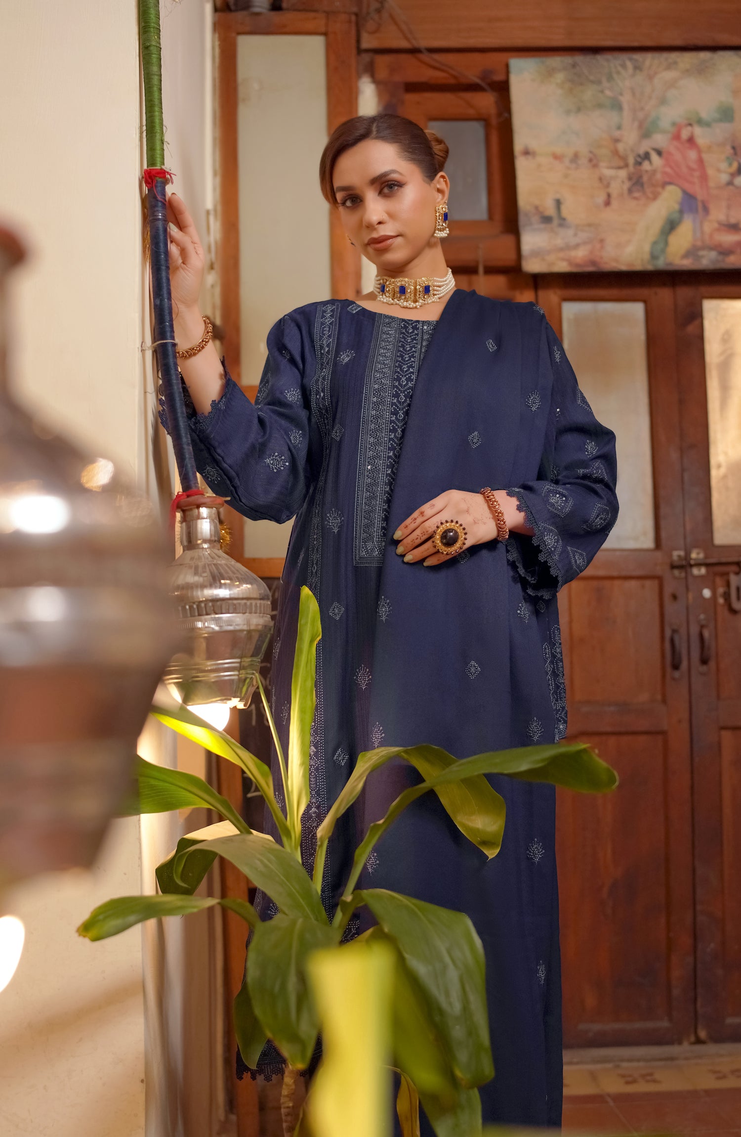 DYED SELF WOOL SEQUINS EMBROIDERED FRONT