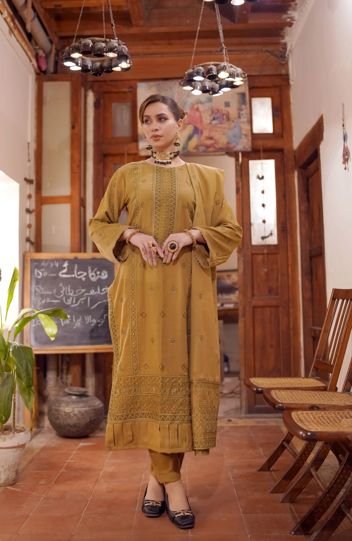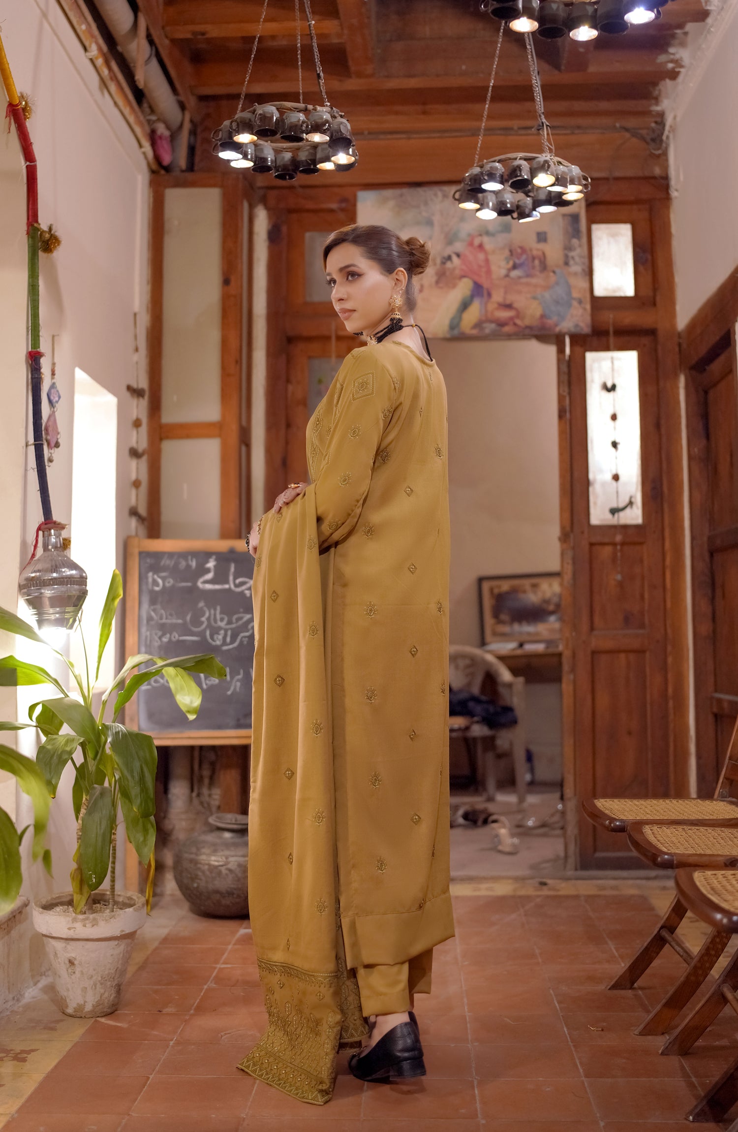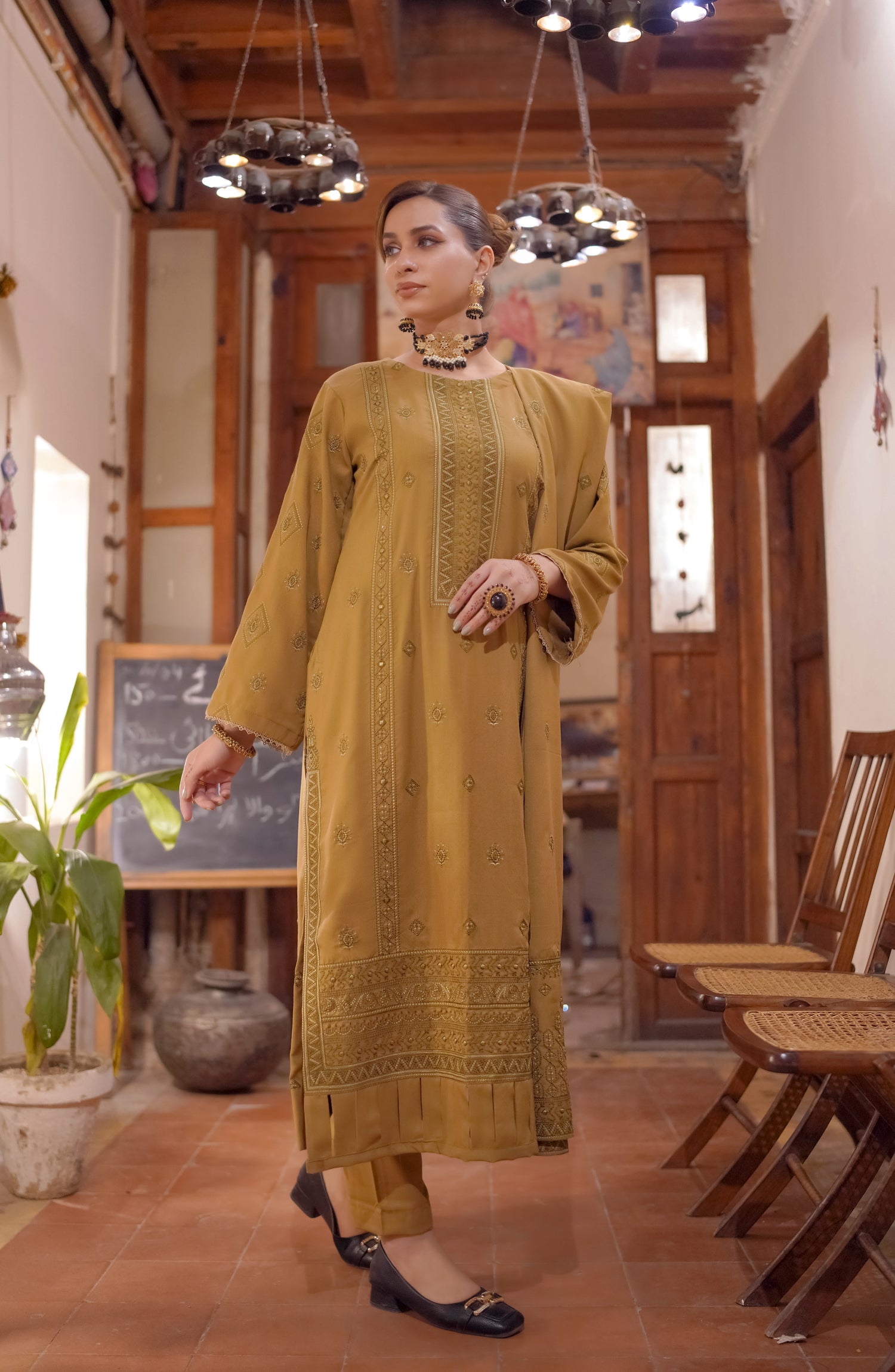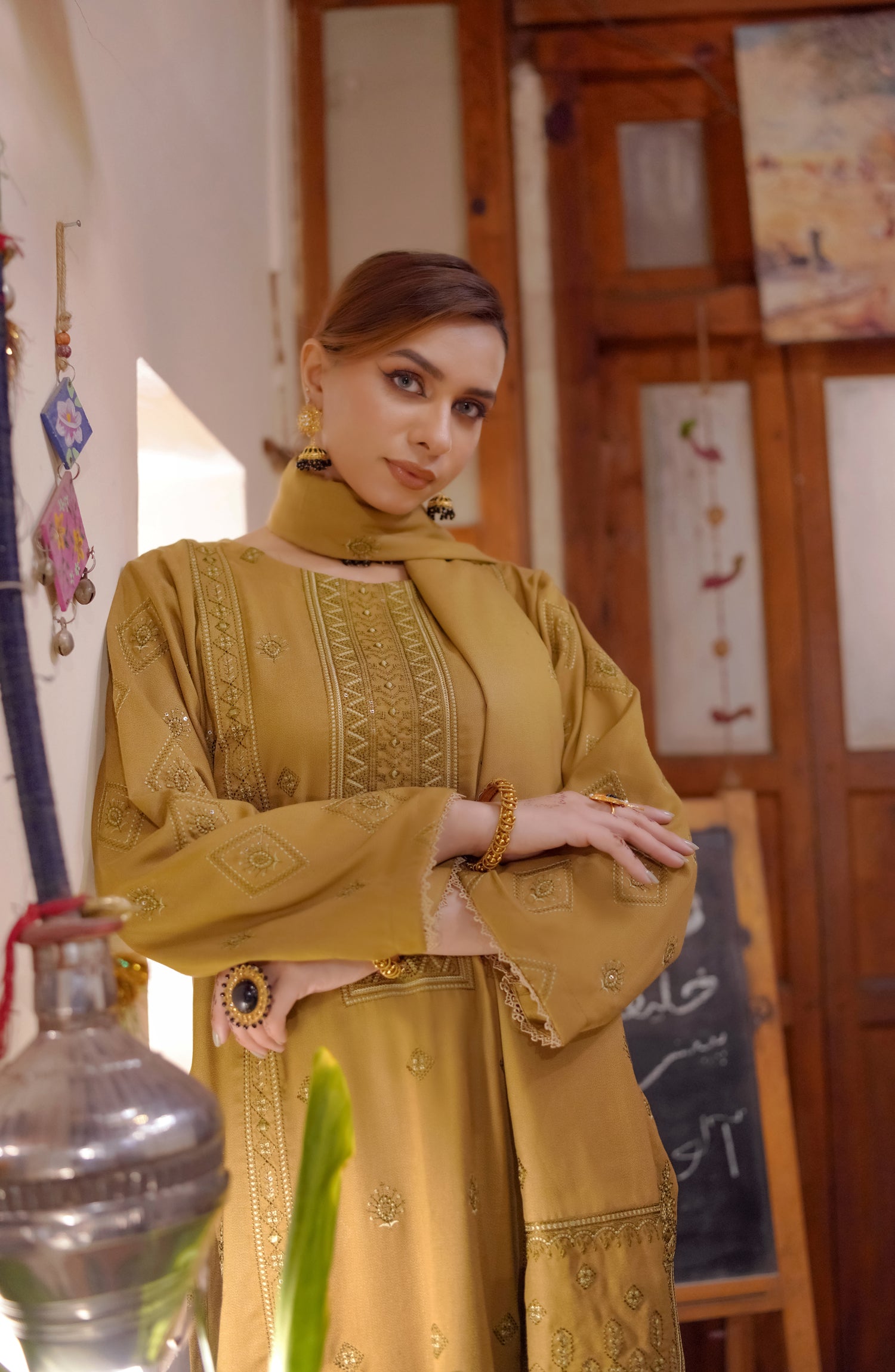 DYED SELF WOOL SEQUINS EMBROIDERED FRONT