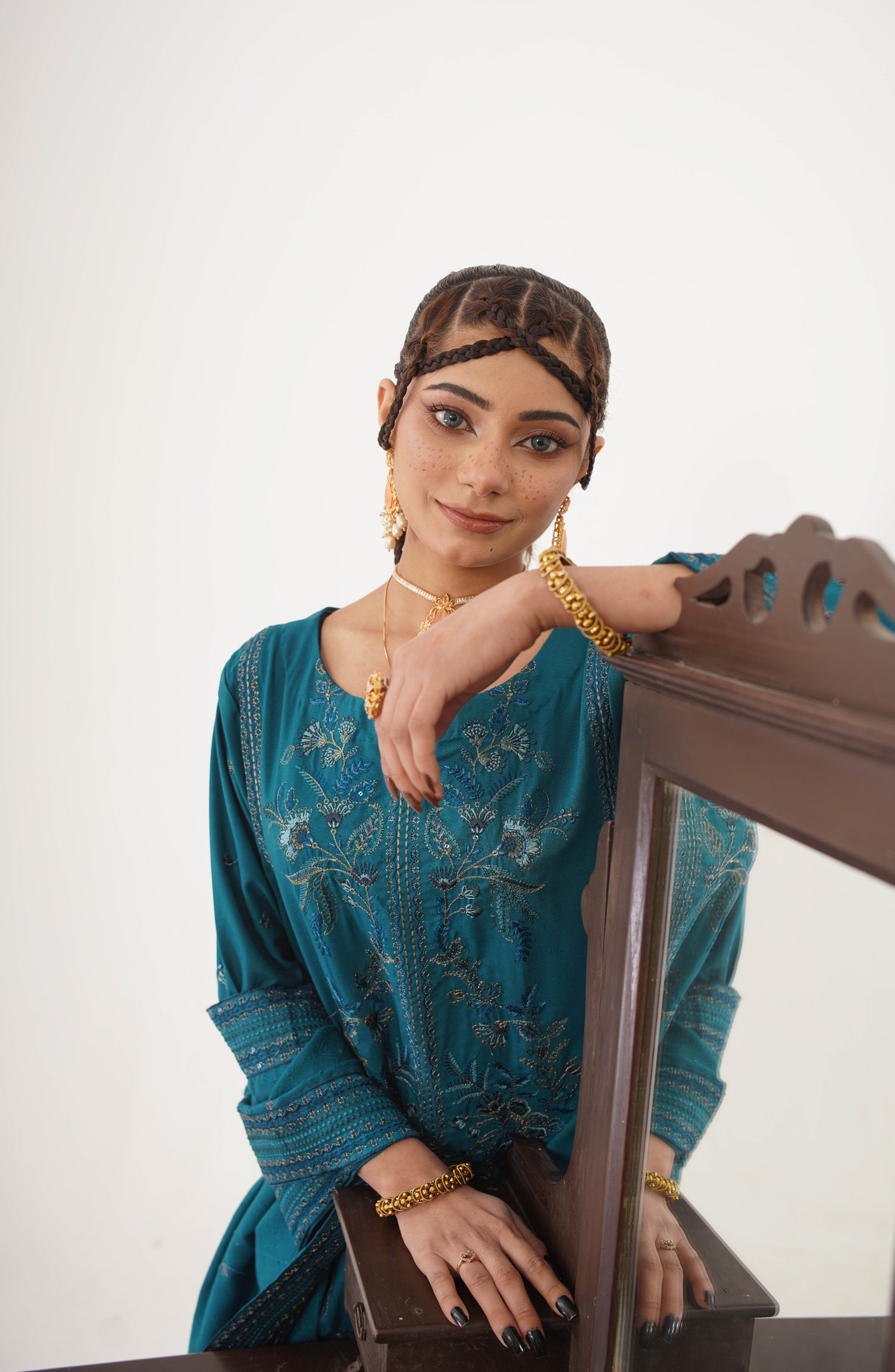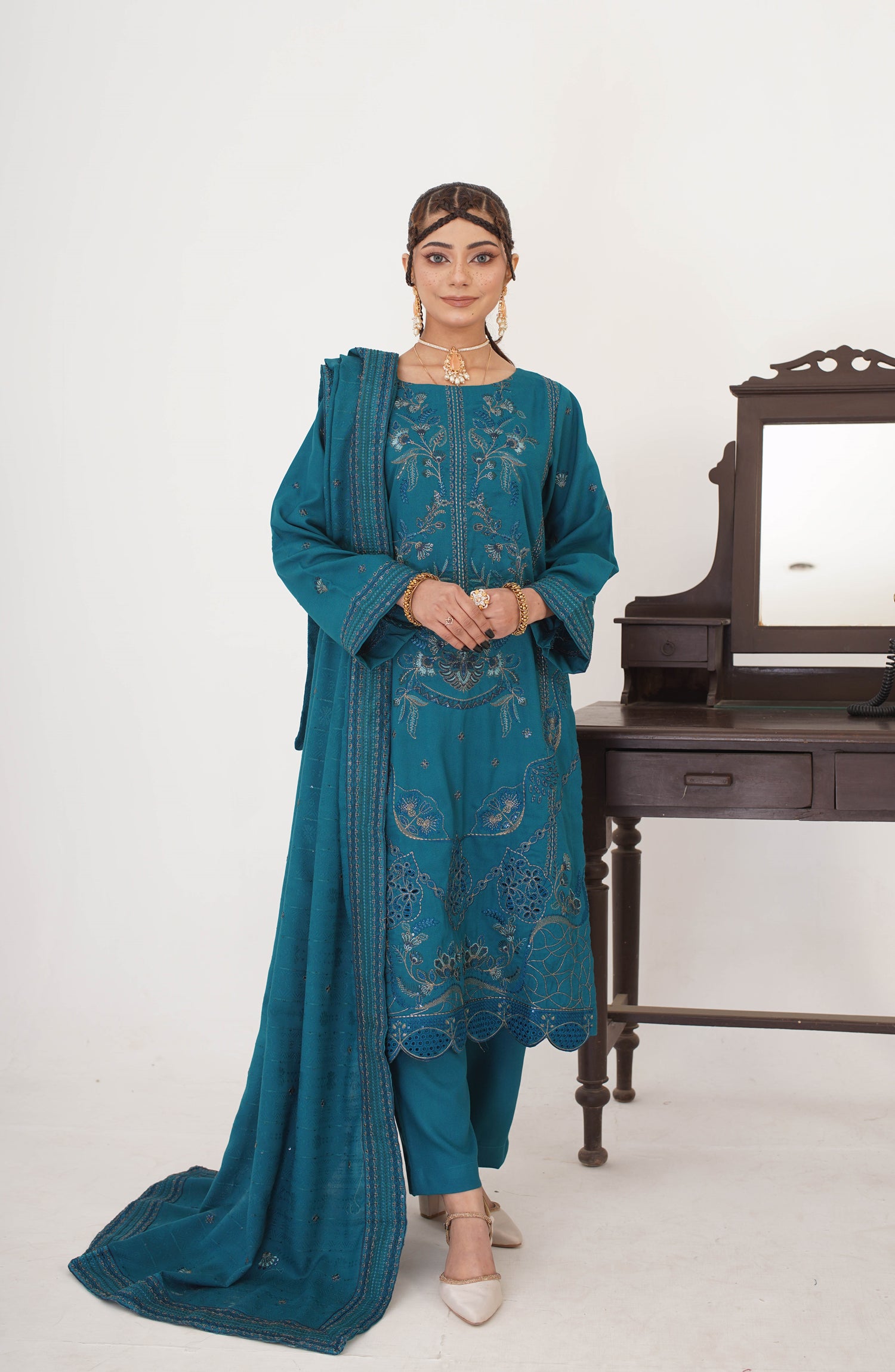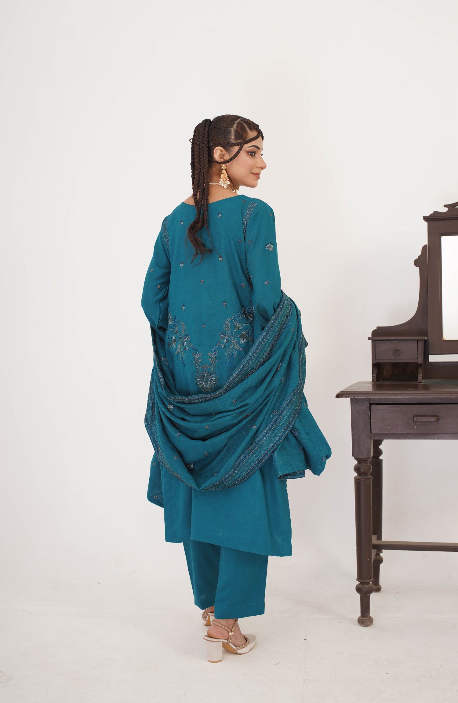 DYED SELF WOOL SEQUINS EMBROIDERED FRONT