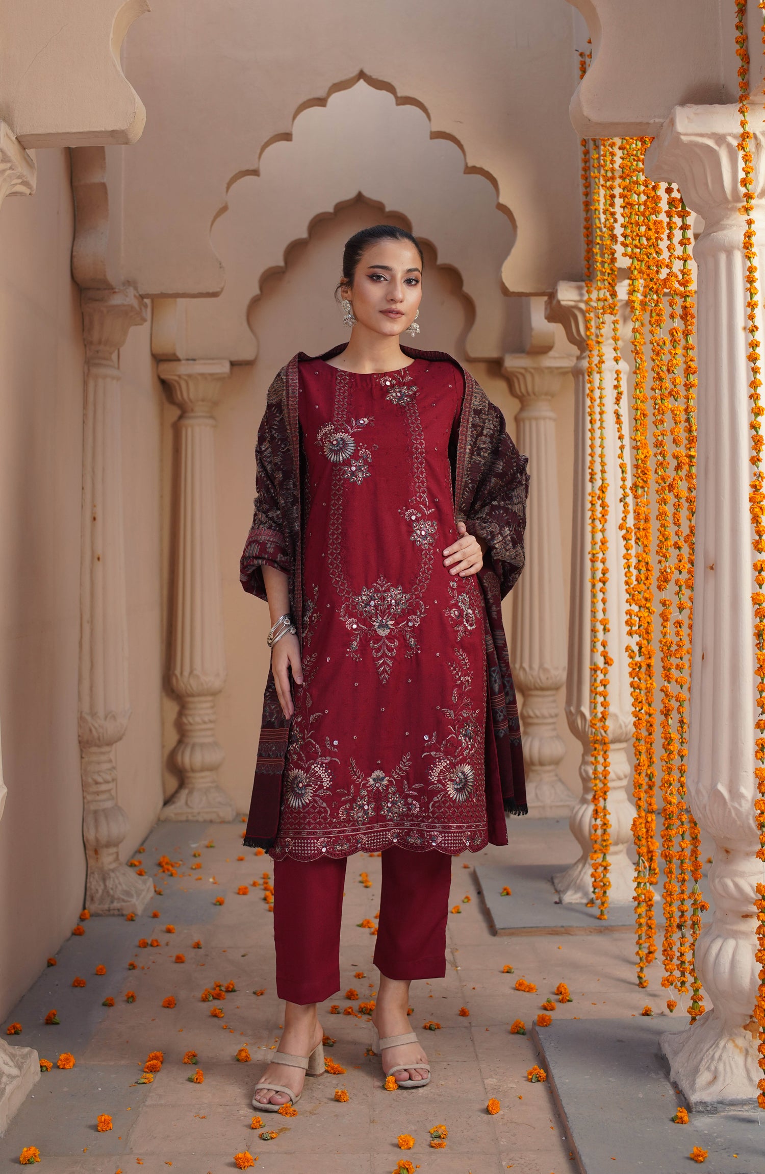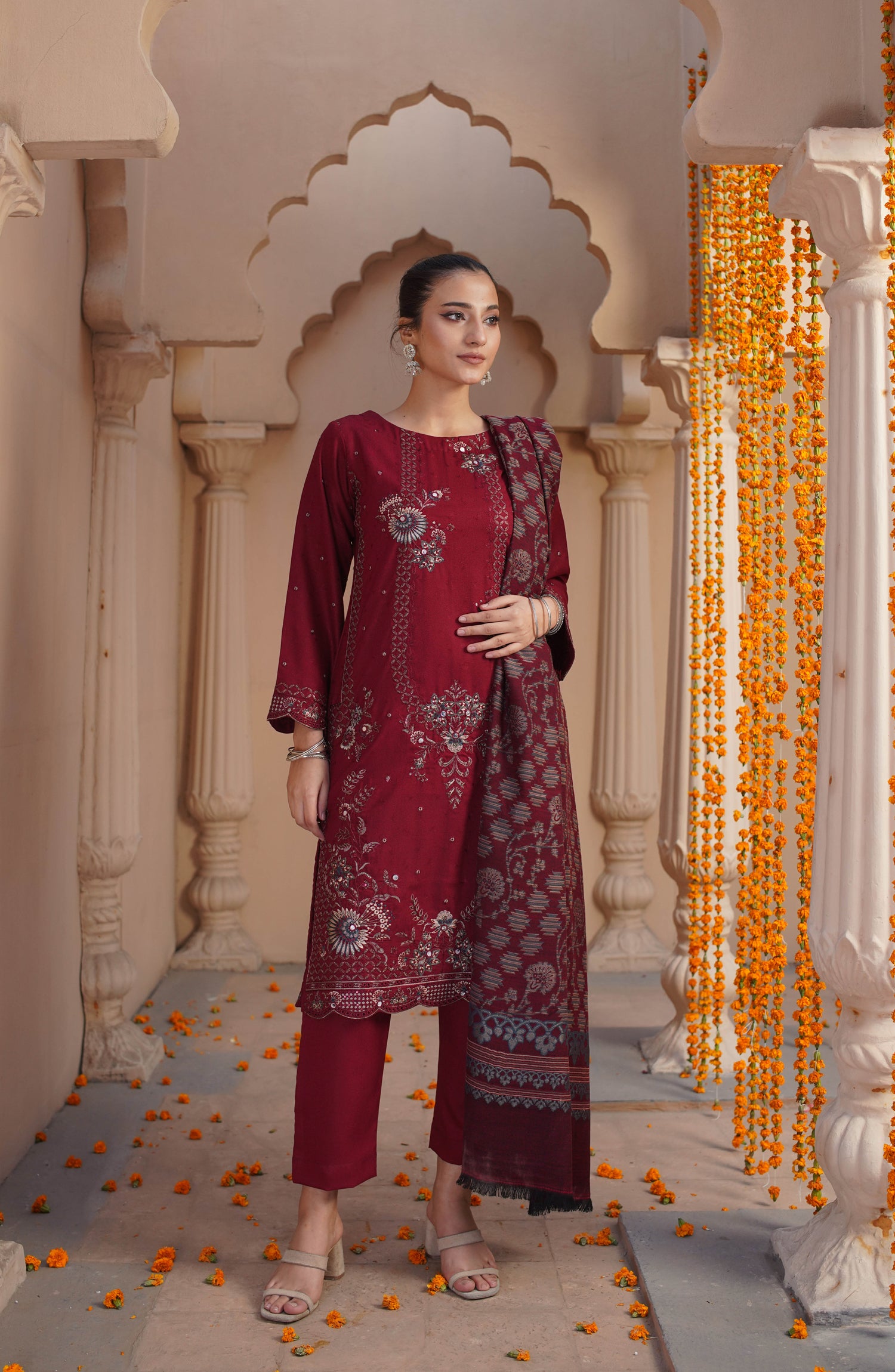 DYED SLUB WOOL SEQUINS EMBROIDERED FRONT