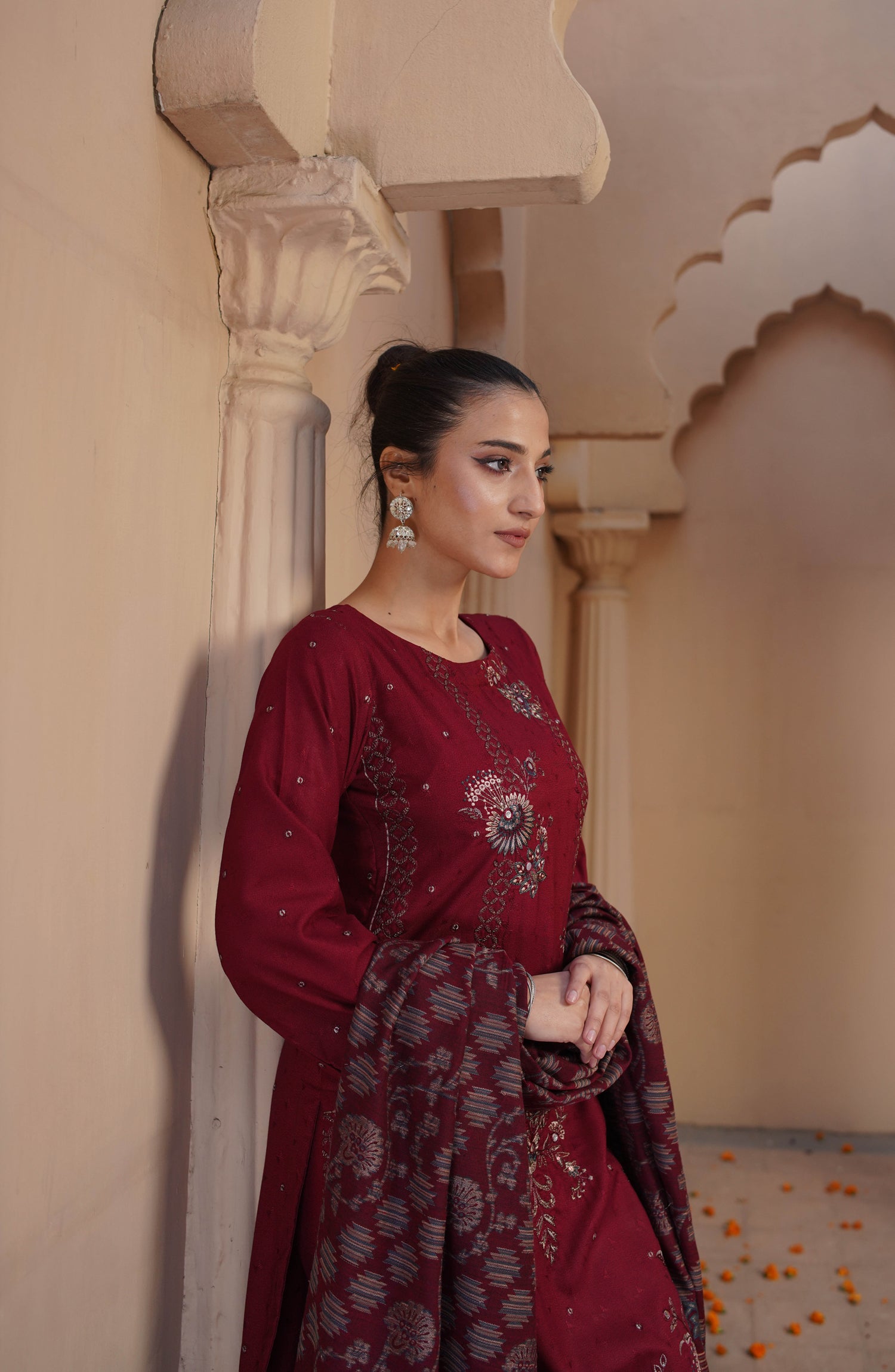 DYED SLUB WOOL SEQUINS EMBROIDERED SLEEVES