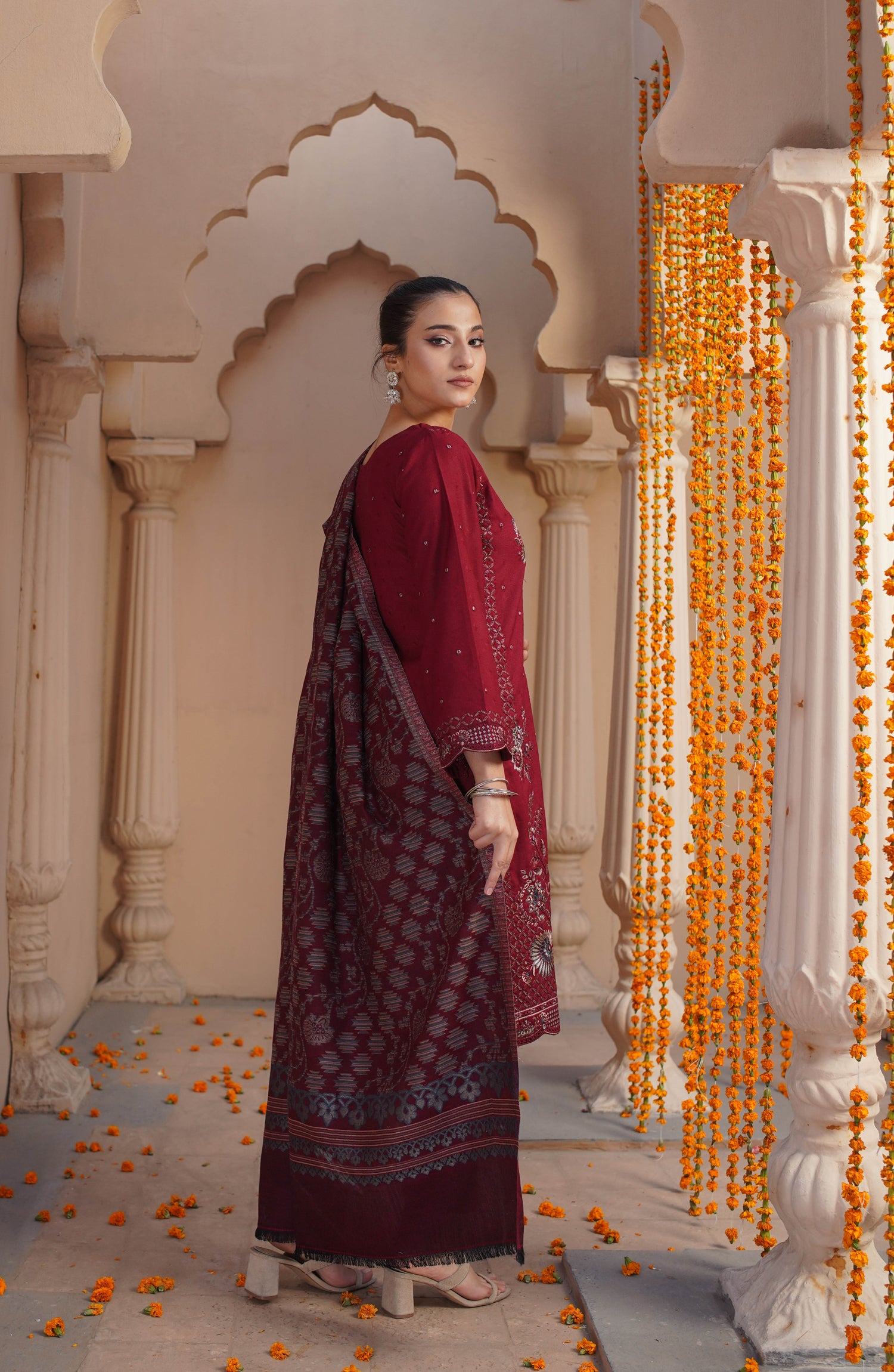 DYED SLUB WOOL SEQUINS EMBROIDERED BACK