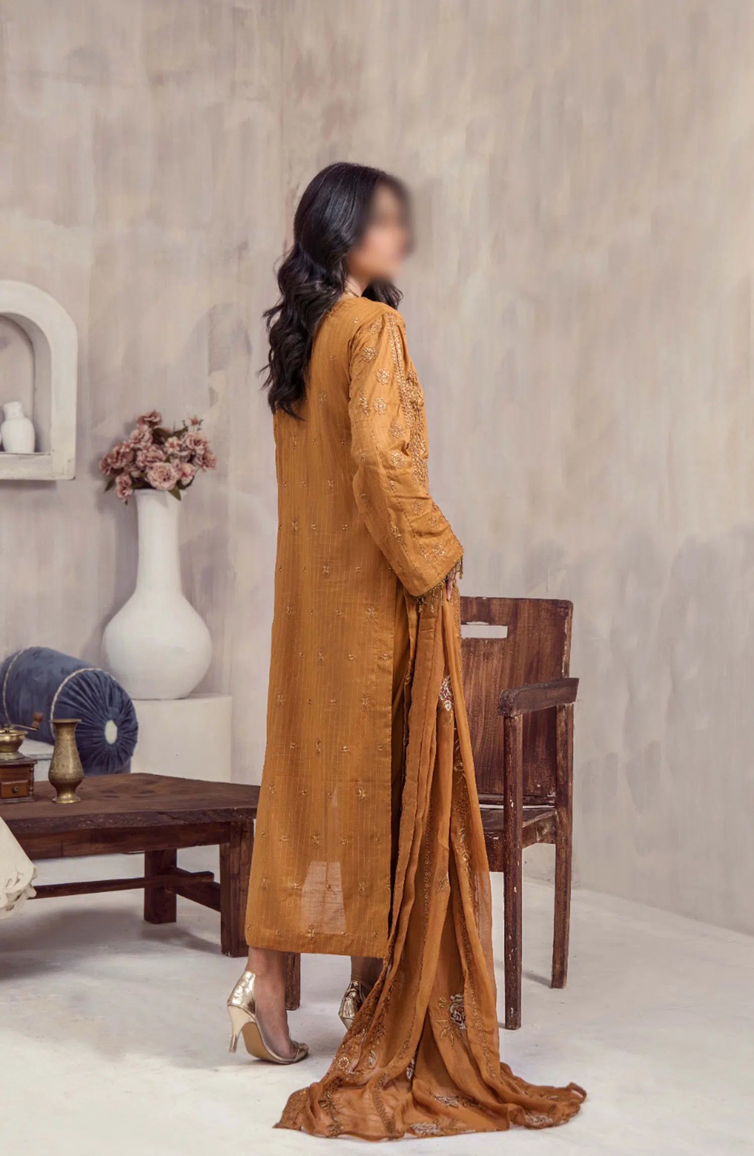 Queen Embroidered Sweet Peach Unstitched 3 Piece Suit - Design-01 - QU25SW - Mustard - Winter Collection