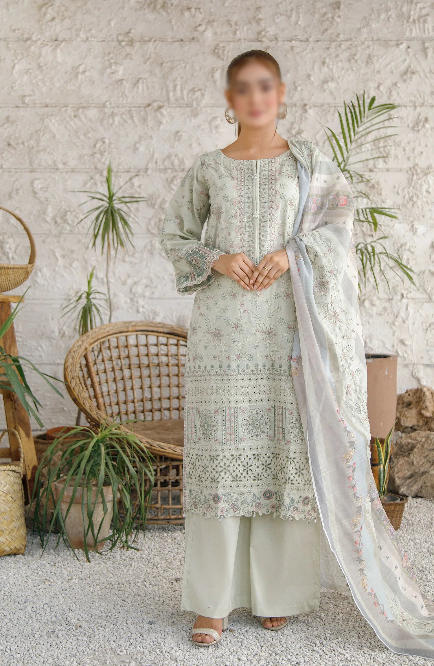 Marjjan Slub Lawn Embroidered Collection has been styled in the image for photography and illustrative purposes.