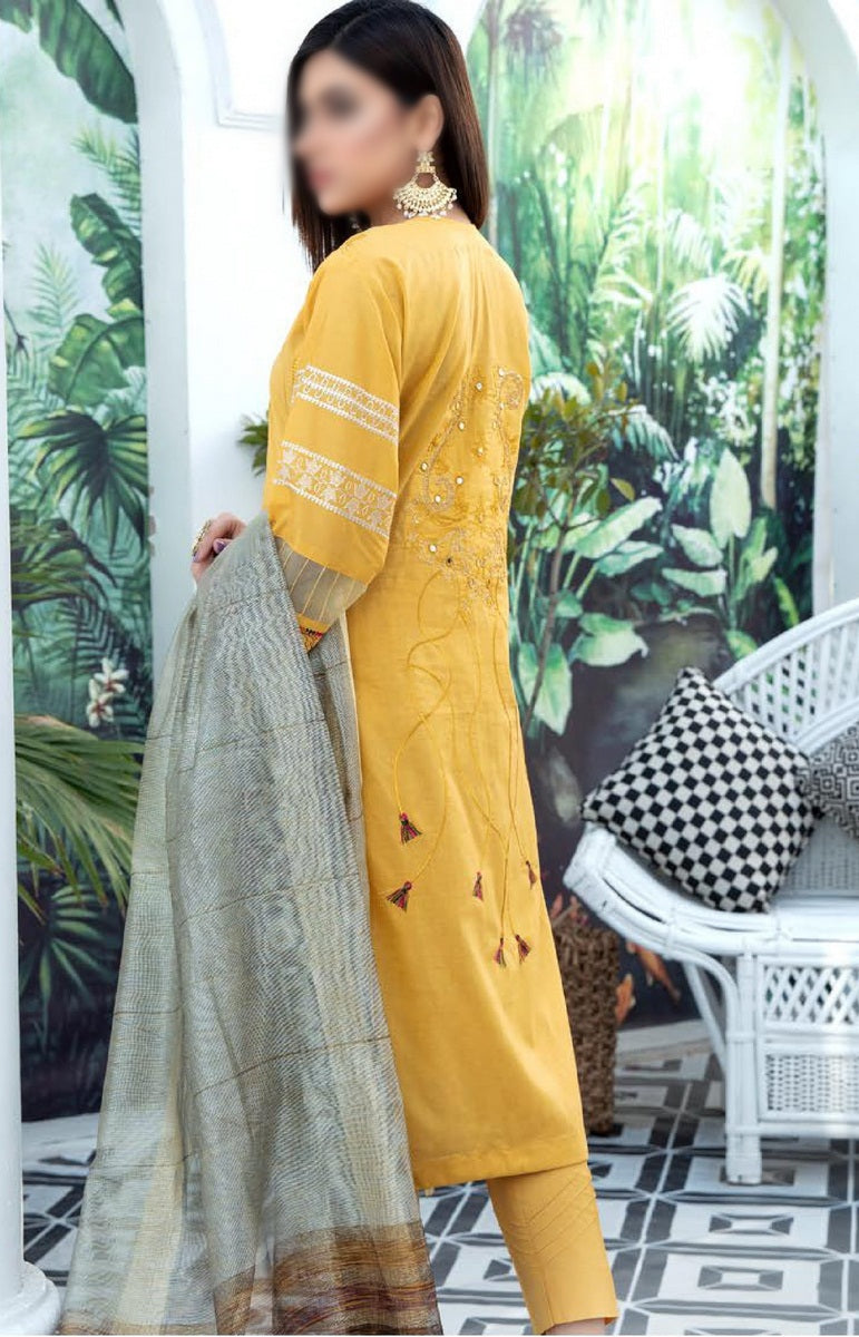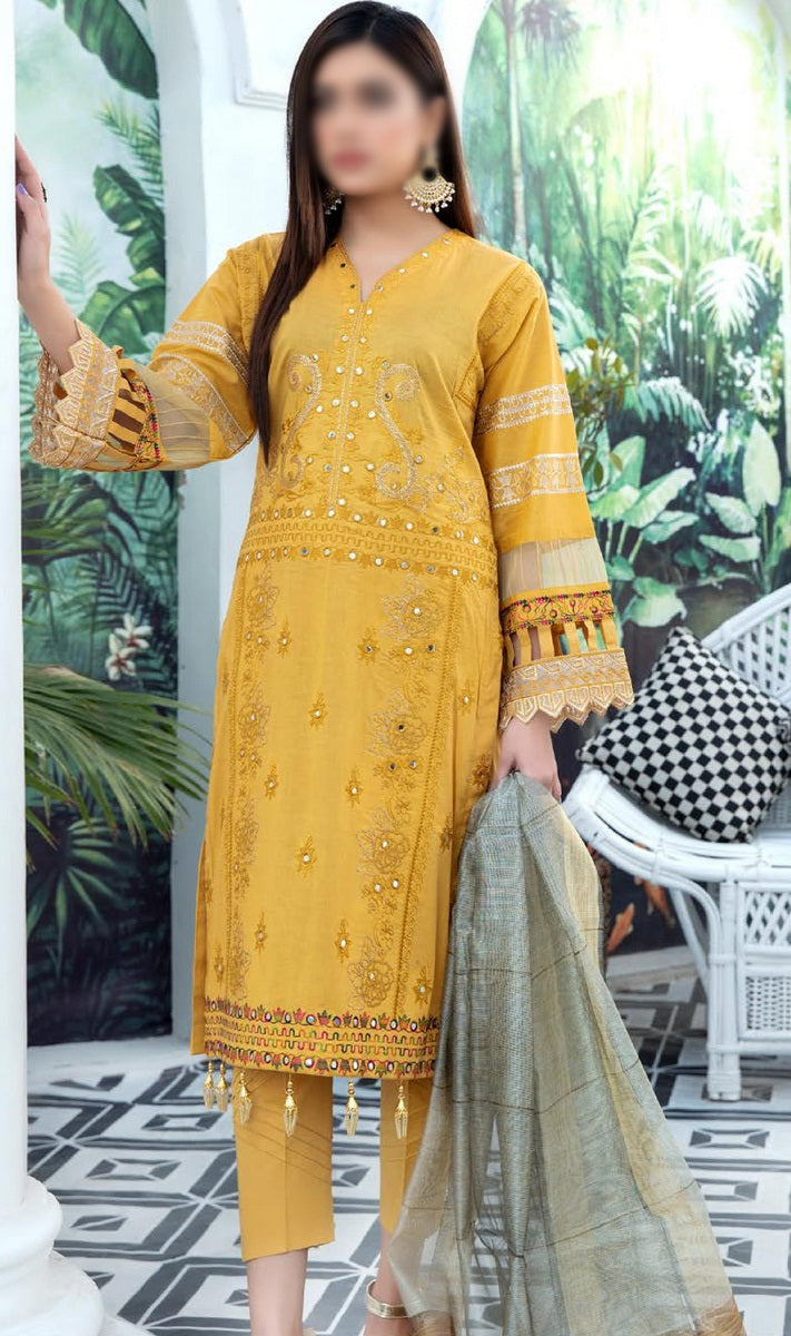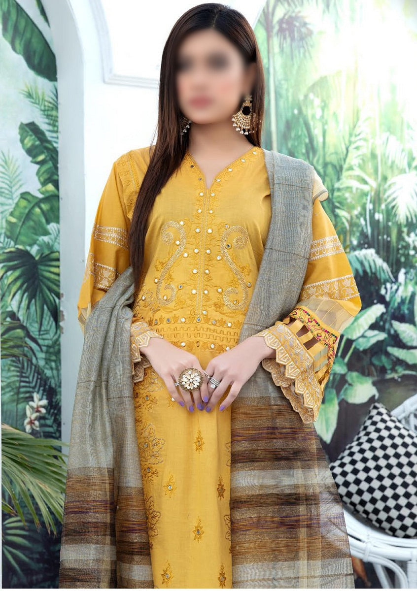 The standard style comes as a long-sleeved kameez with dupatta and trouser/shalwar.