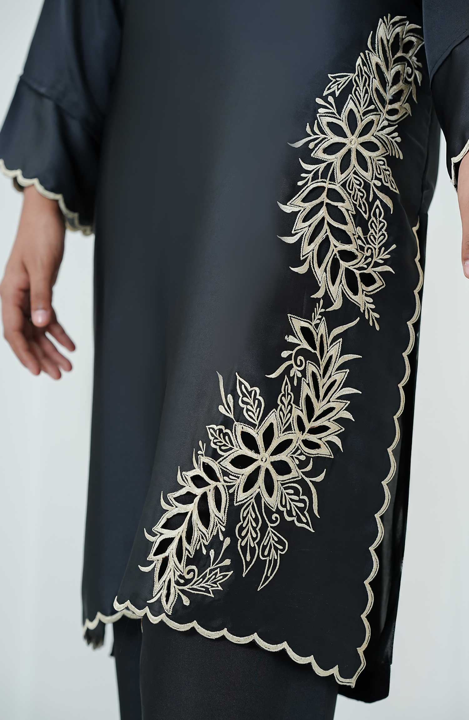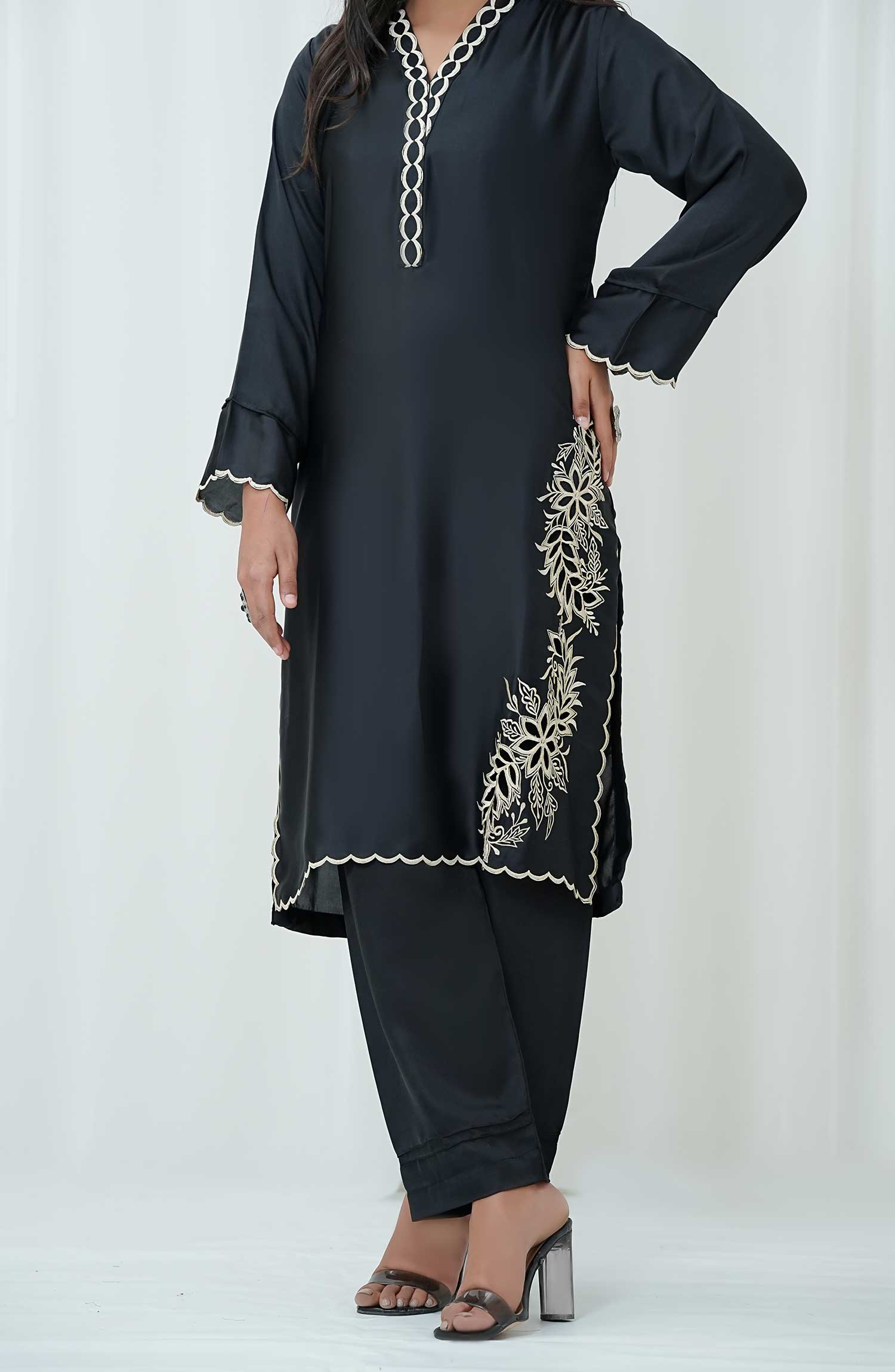 Stitched Shamooz Silk Shirt with Fine Cutwork Embroidery