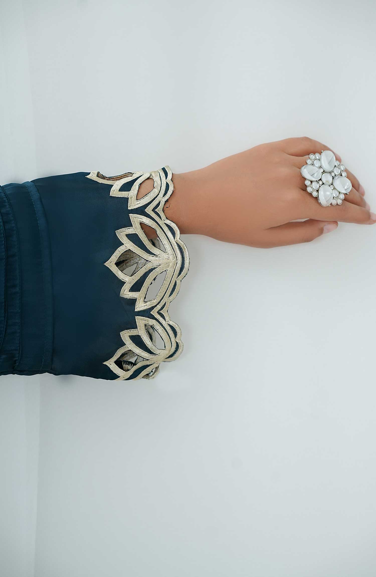 Marlene by Amna Khadija Embroidered Shamooz Silk Pret 2 Piece Suit - AM25MRS - MSS-09 - Dark Blue - Winter Collection