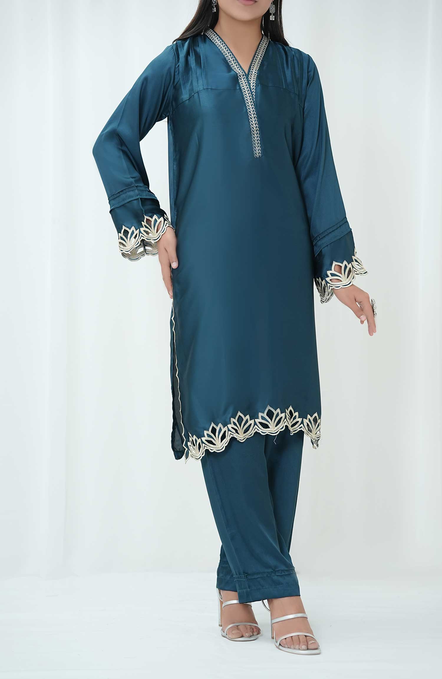 Home Marlene by Amna Khadija Embroidered Shamooz Silk Pret 2 Piece Suit - AM25MRS - MSS-09 - Dark Blue - Winter Collection