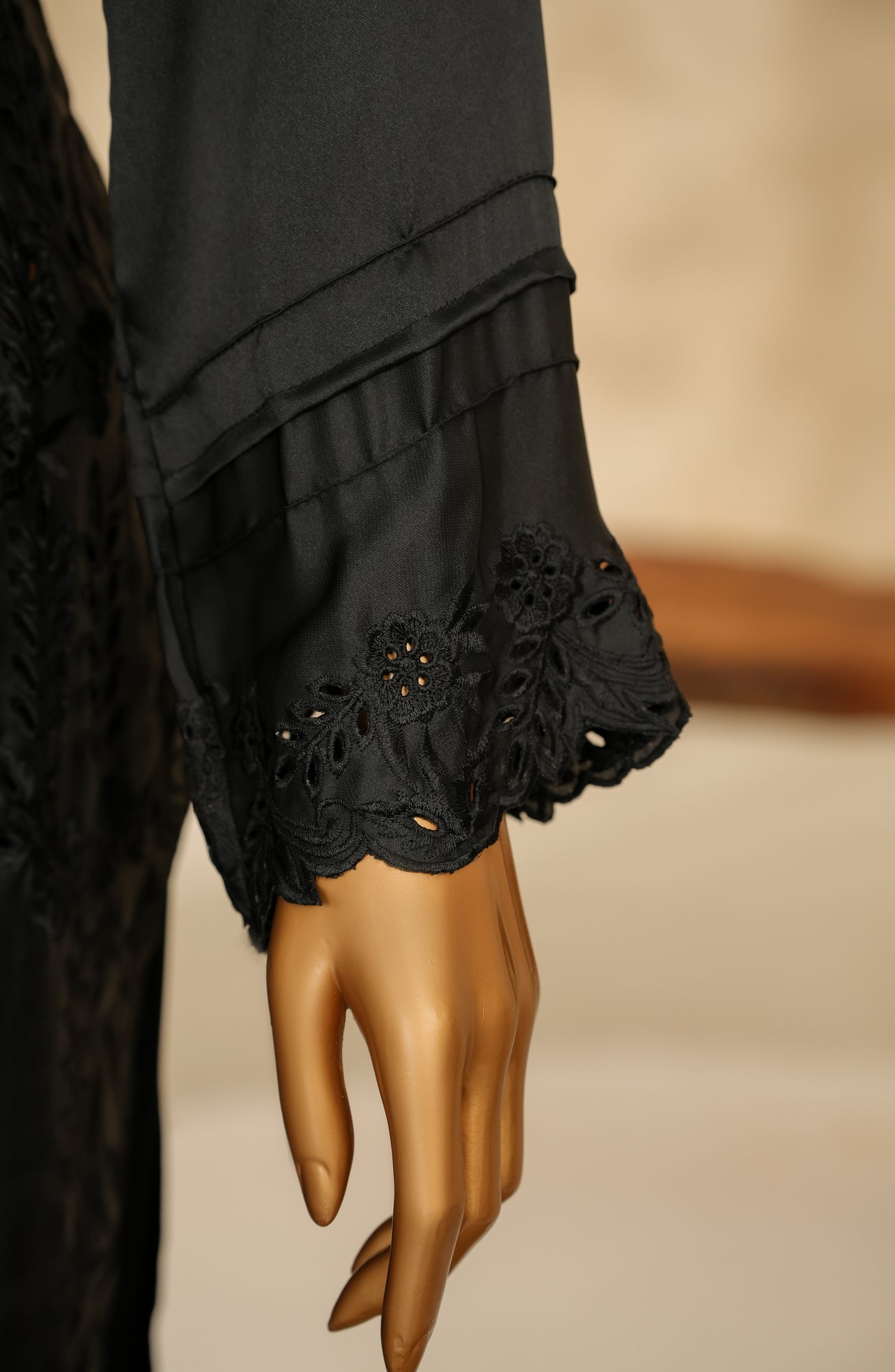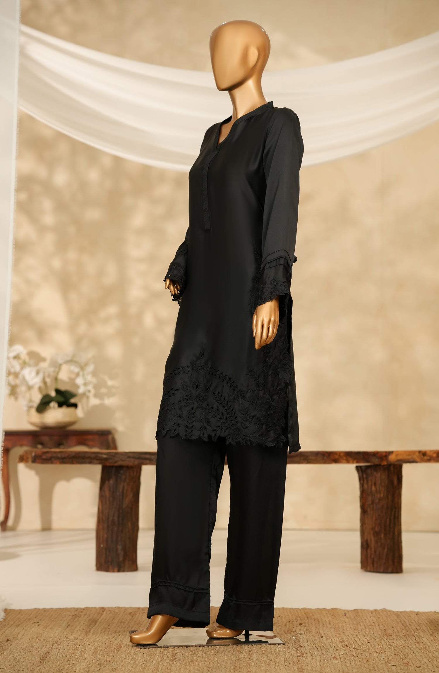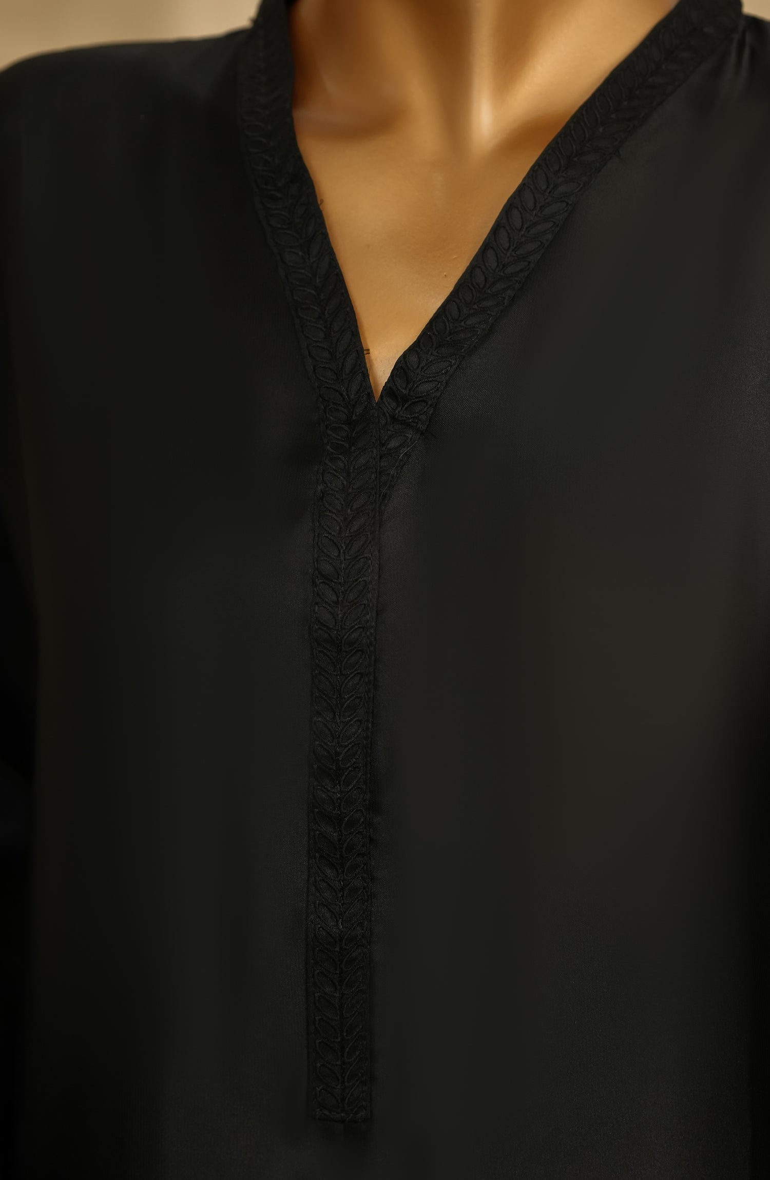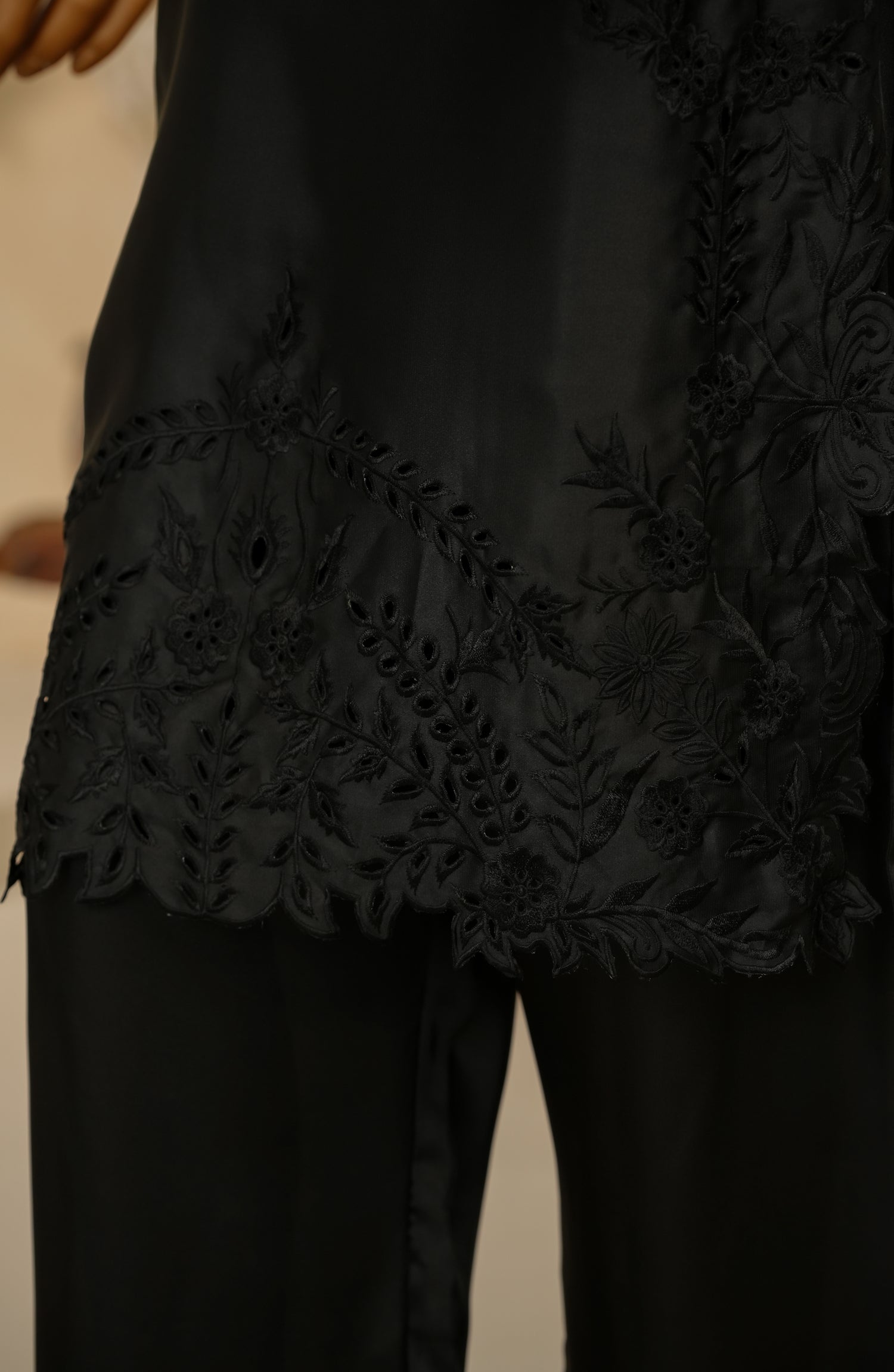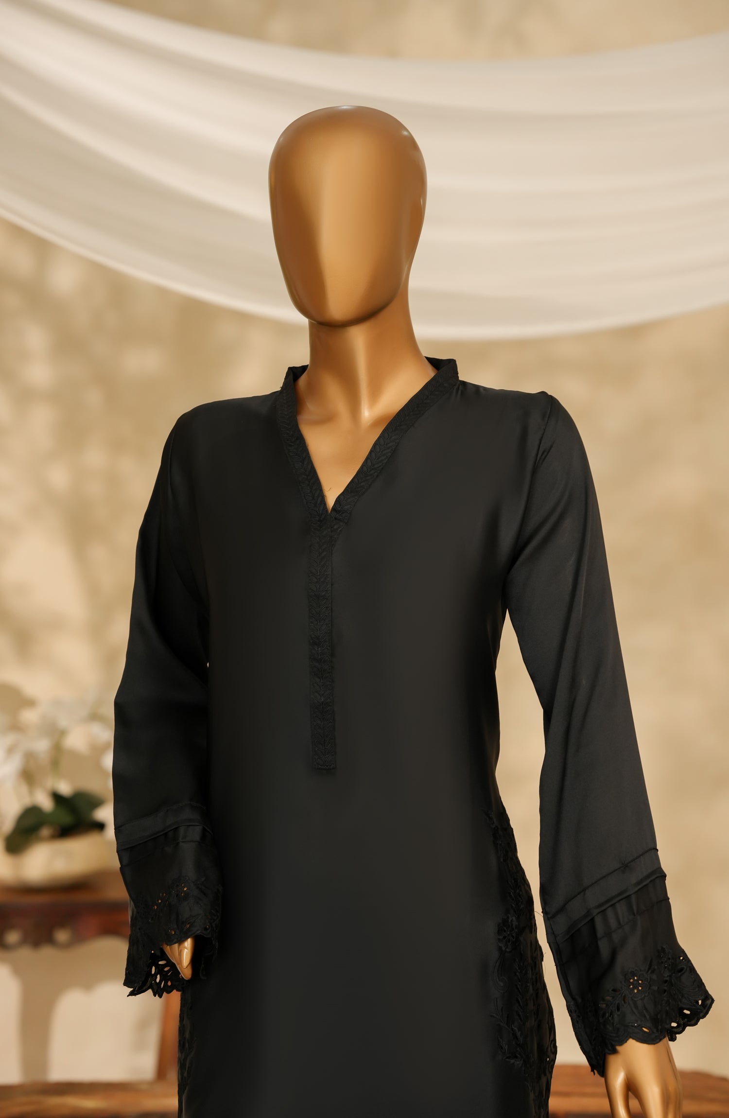 Stitched Shamooz Silk Shirt with Fine Cutwork Embroidery