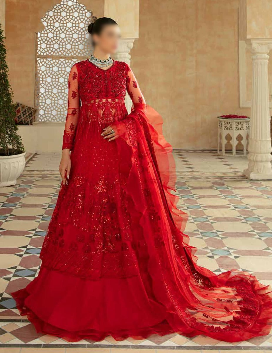 The standard style comes as a long-sleeved kameez with dupatta and trouser/shalwar.