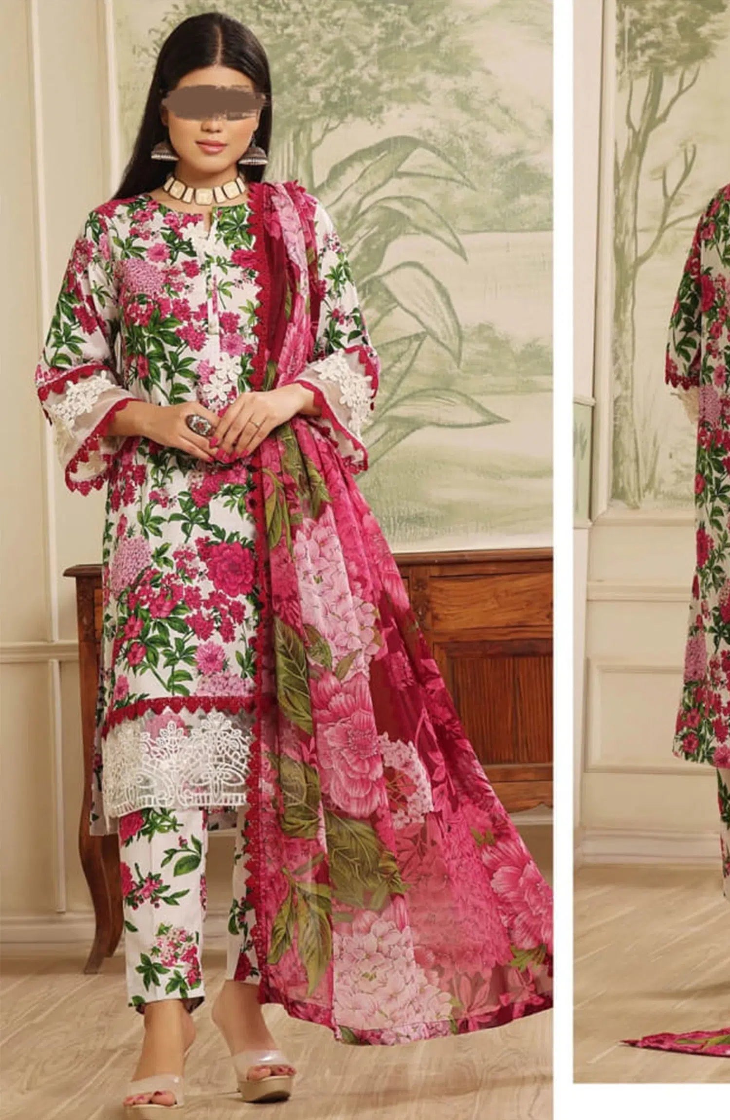 Maryum Maniya Summer Soirees Printed and Embroidered Collection 2024 has been styled in the image for photography and illustrative purposes.