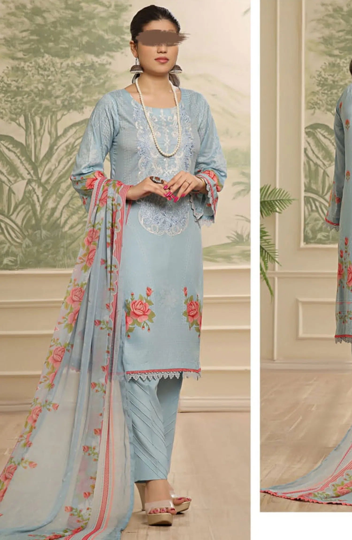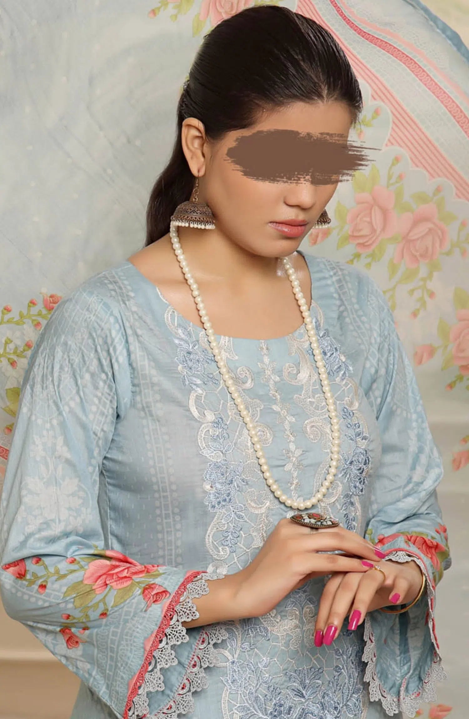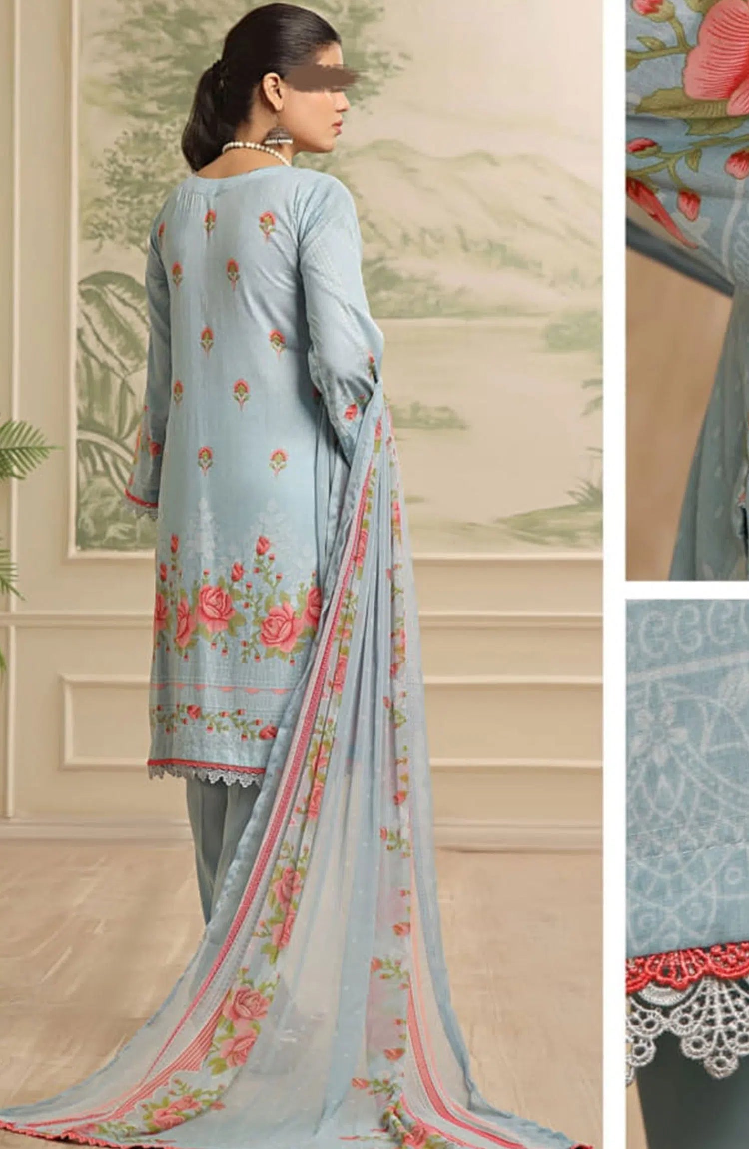 Maryum Maniya Summer Soirees Printed and Embroidered Collection 2024 has been styled in the image for photography and illustrative purposes.