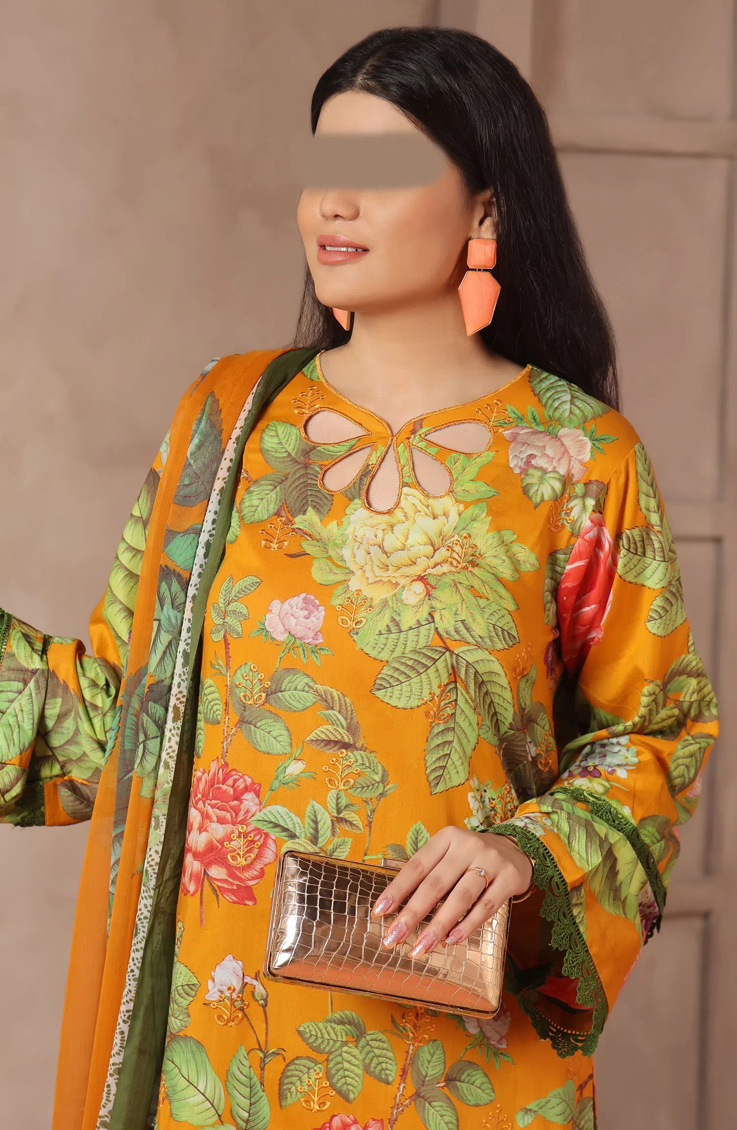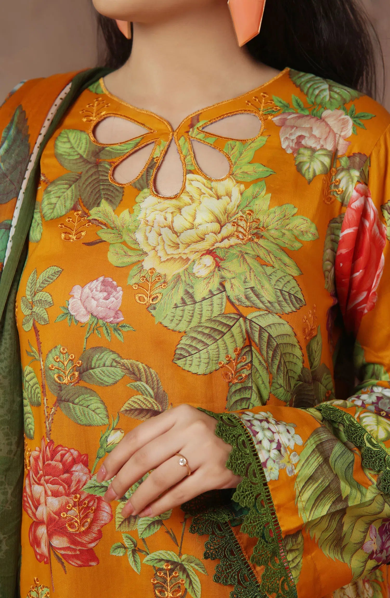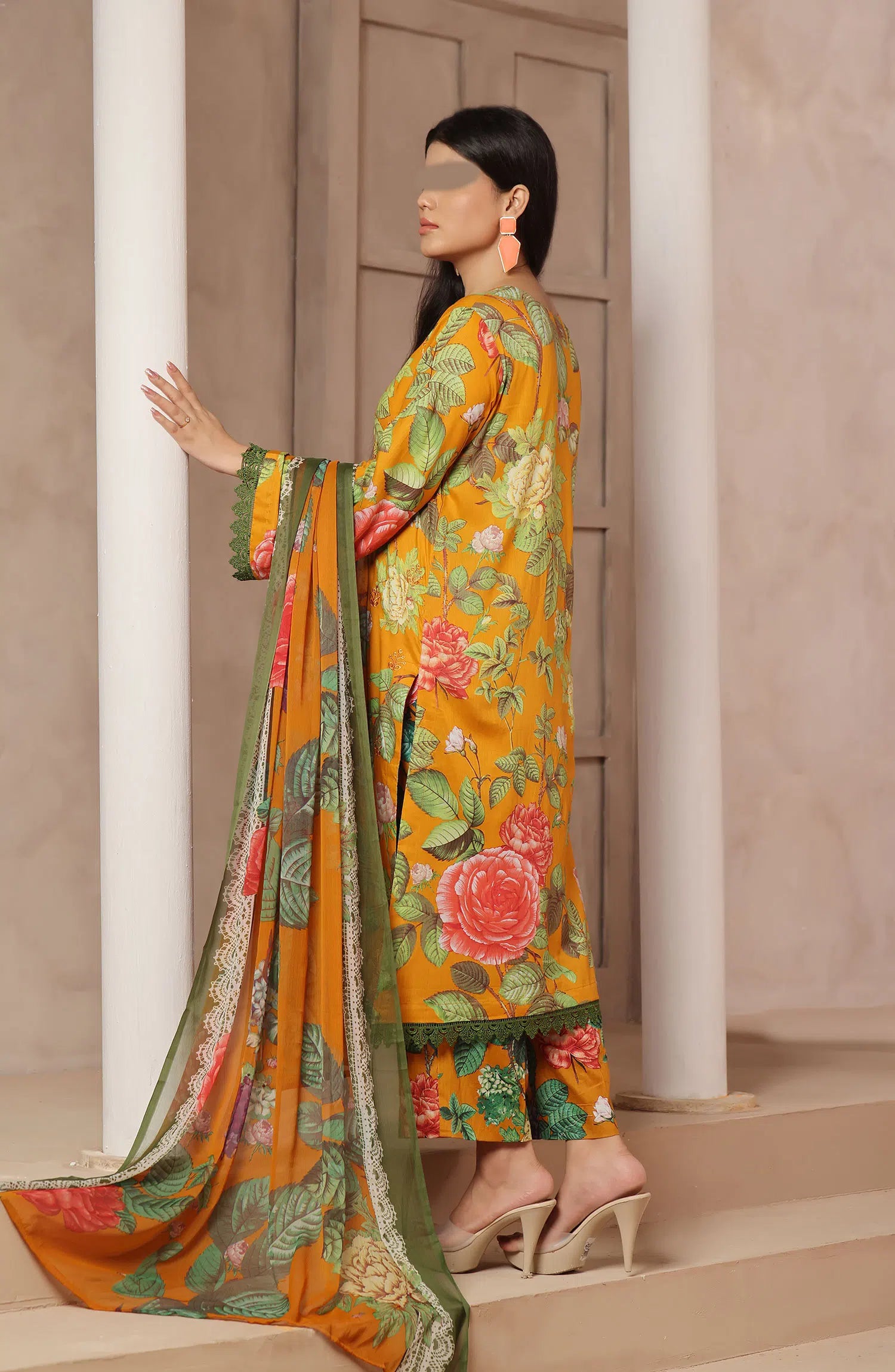 Rua by Casual Lite Embroidered Premium Linen Stitched 3 Piece Suit - D-01 Olive Mustard Hue - CL25RU - Dhani - Winter Collection