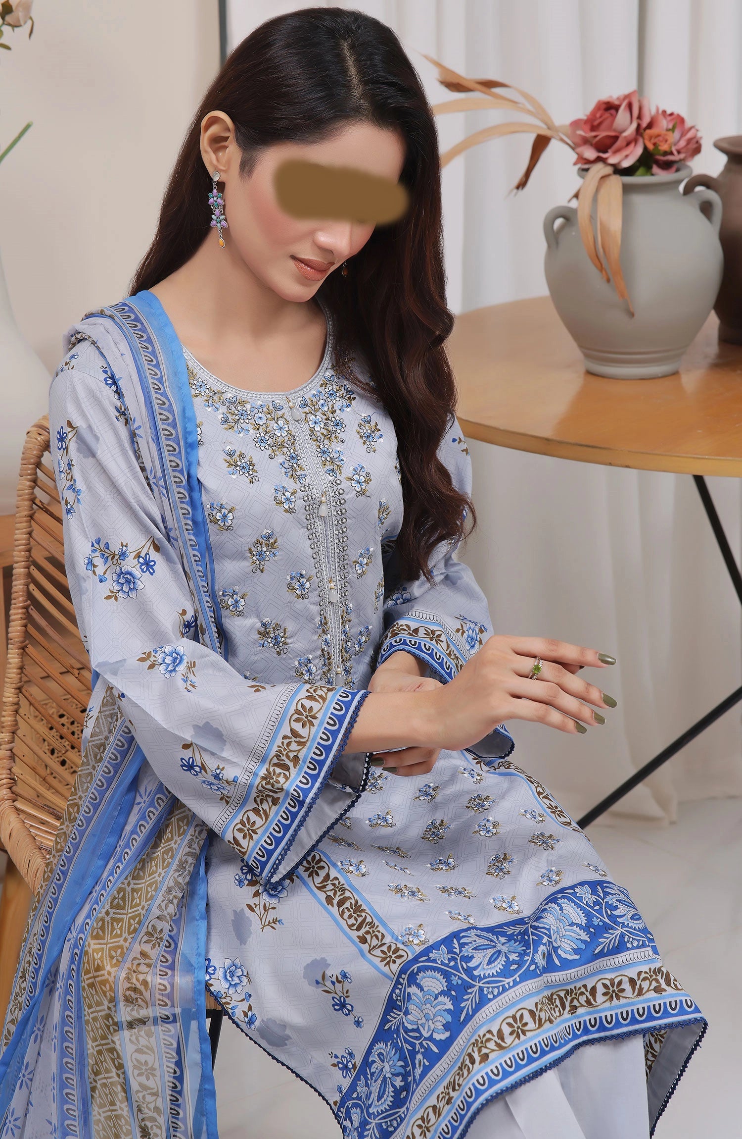 Maryum Maniya Summer Soirees Printed and Embroidered Collection Vol 04 has been styled in the image for photography and illustrative purposes.