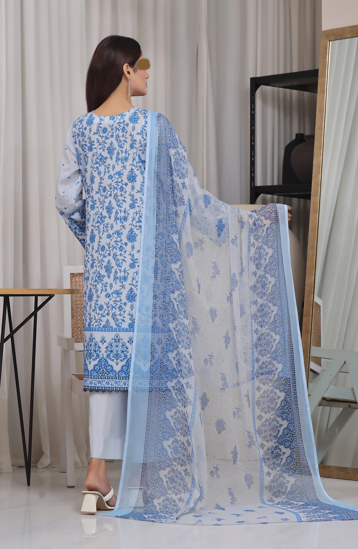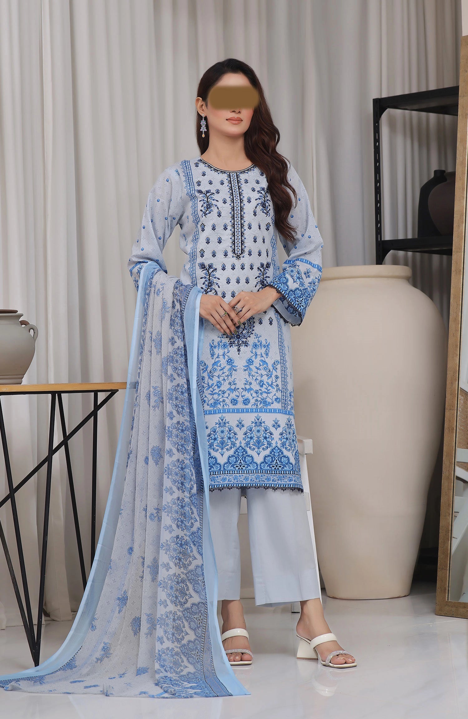 The standard style comes as a long-sleeved kameez with dupatta and trouser/shawlar.