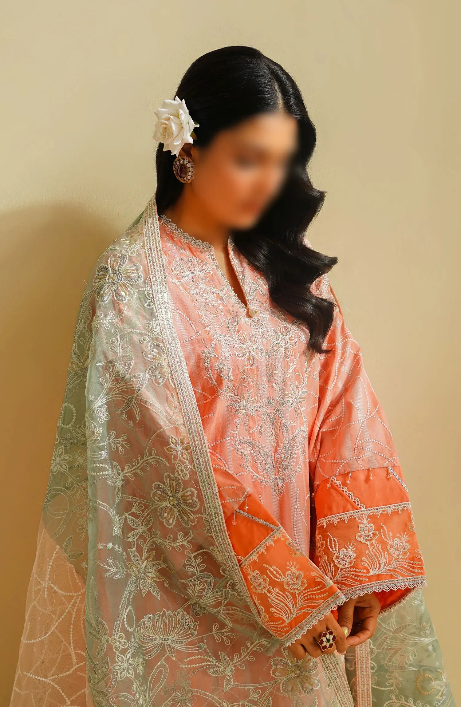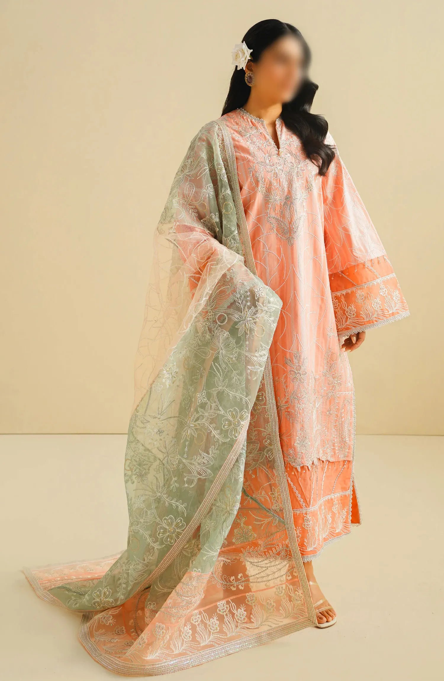 Maryum N Maria Eid Luxury Lawn Collection has been styled in the image for photography and illustrative purposes.