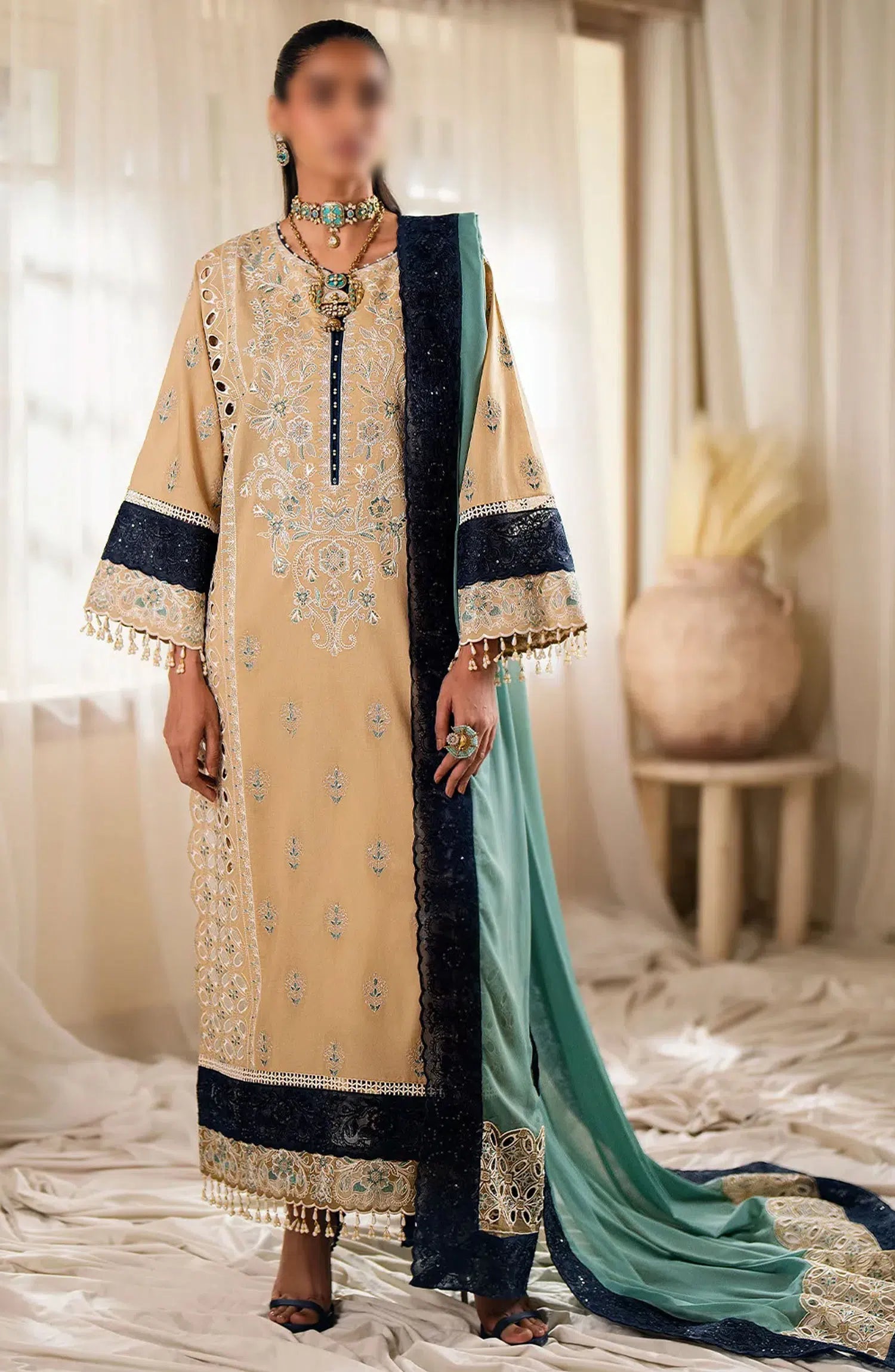 Maryum N Maria Eid-ul-Azha Chapter Two - Luxury Lawn 2024 has been styled in the image for photography and illustrative purposes.