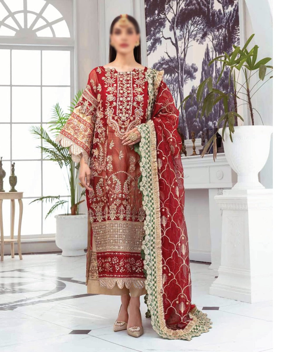 Embroidered handmade net front & sleeves
