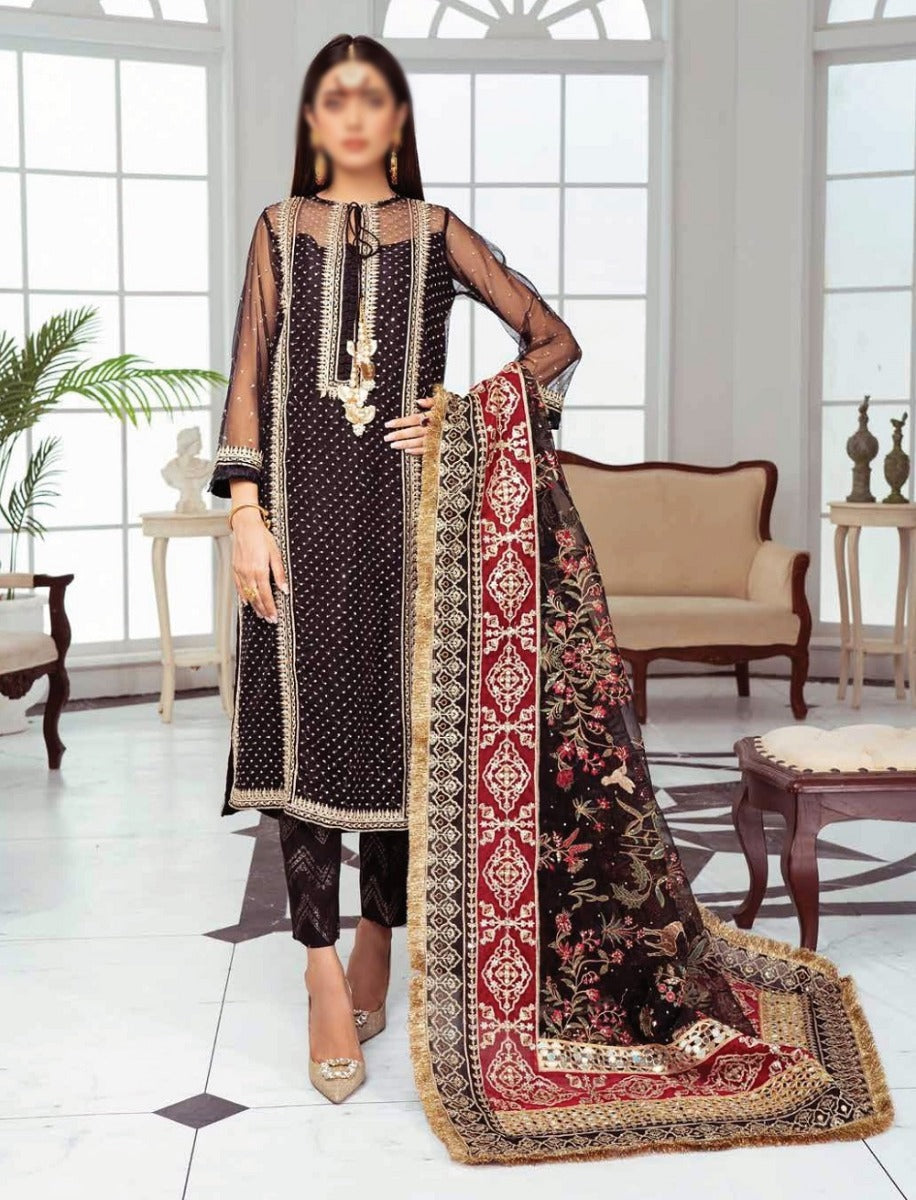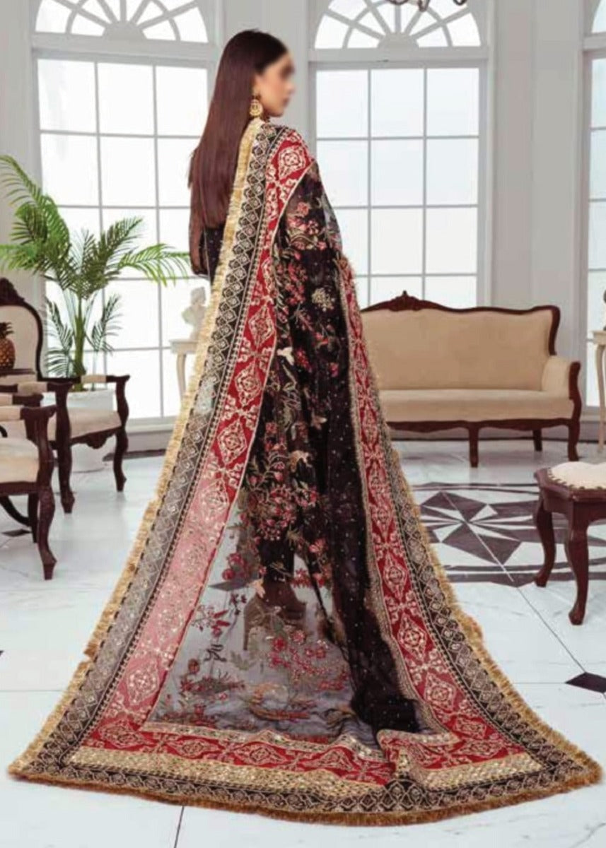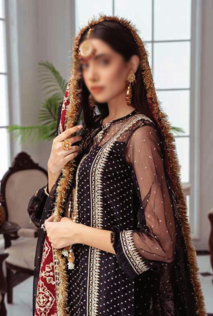 The standard style comes as a long-sleeved kameez with dupatta and trouser/shalwar.