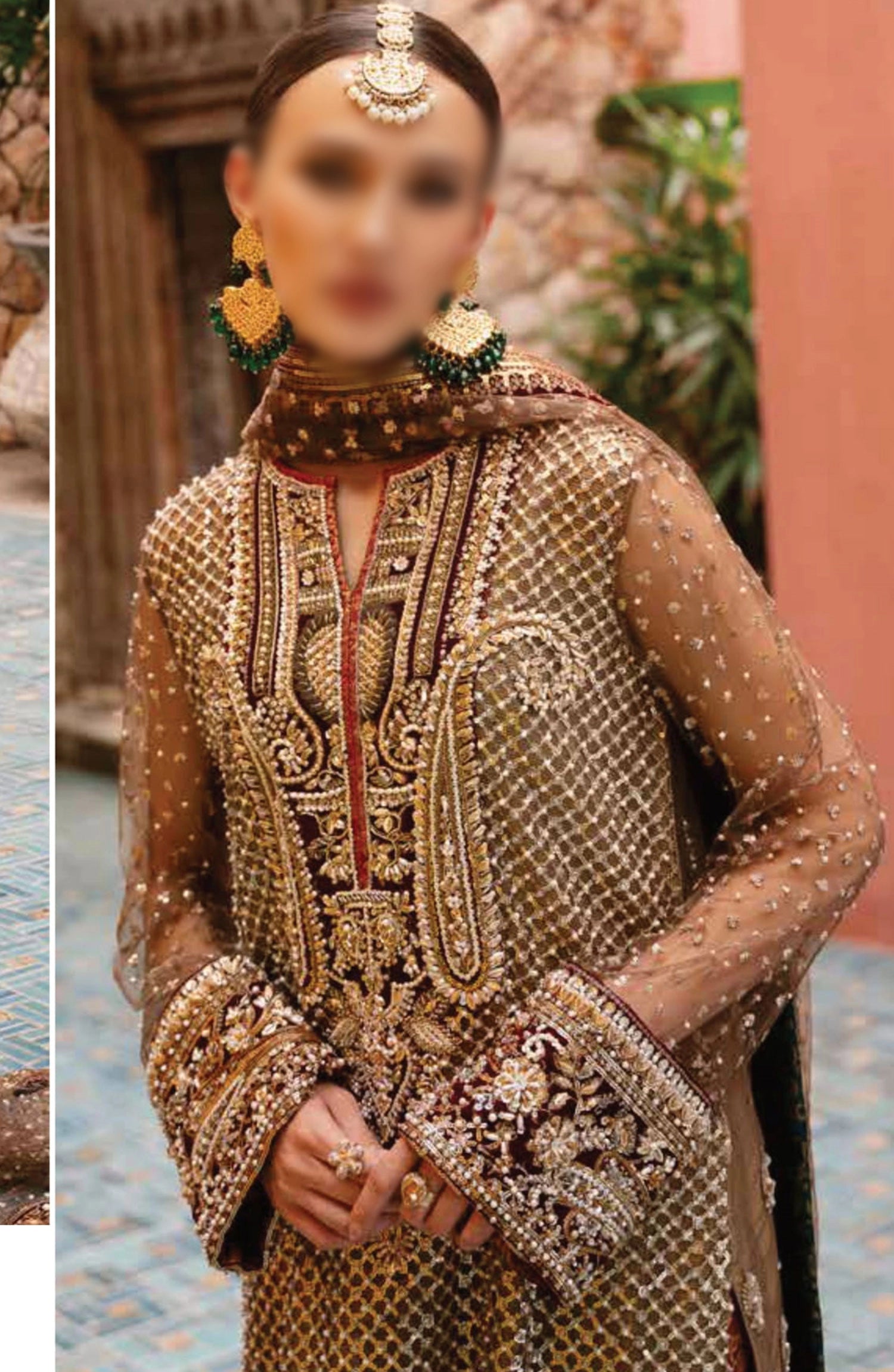 The standard style comes as a long-sleeved kameez with dupatta and trouser/shawlar.