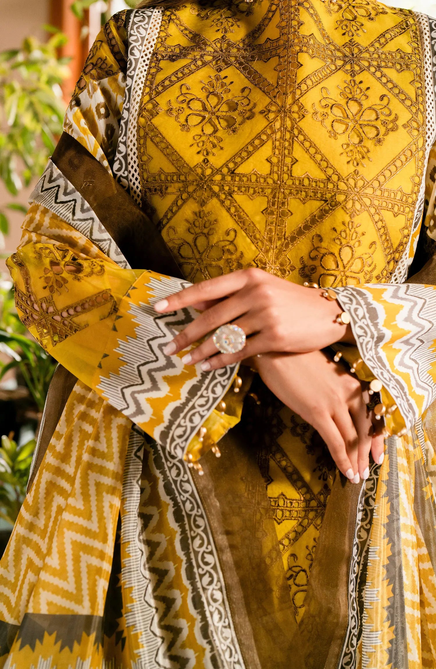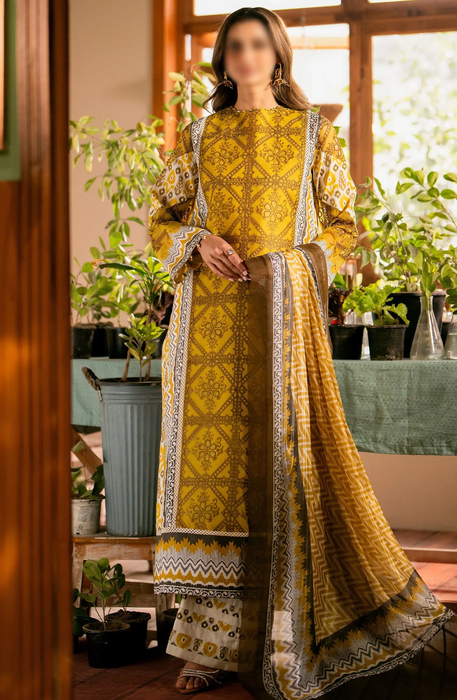 Maryum N Maria Luxury Lawn Collection 2024 has been styled in the image for photography and illustrative purposes.