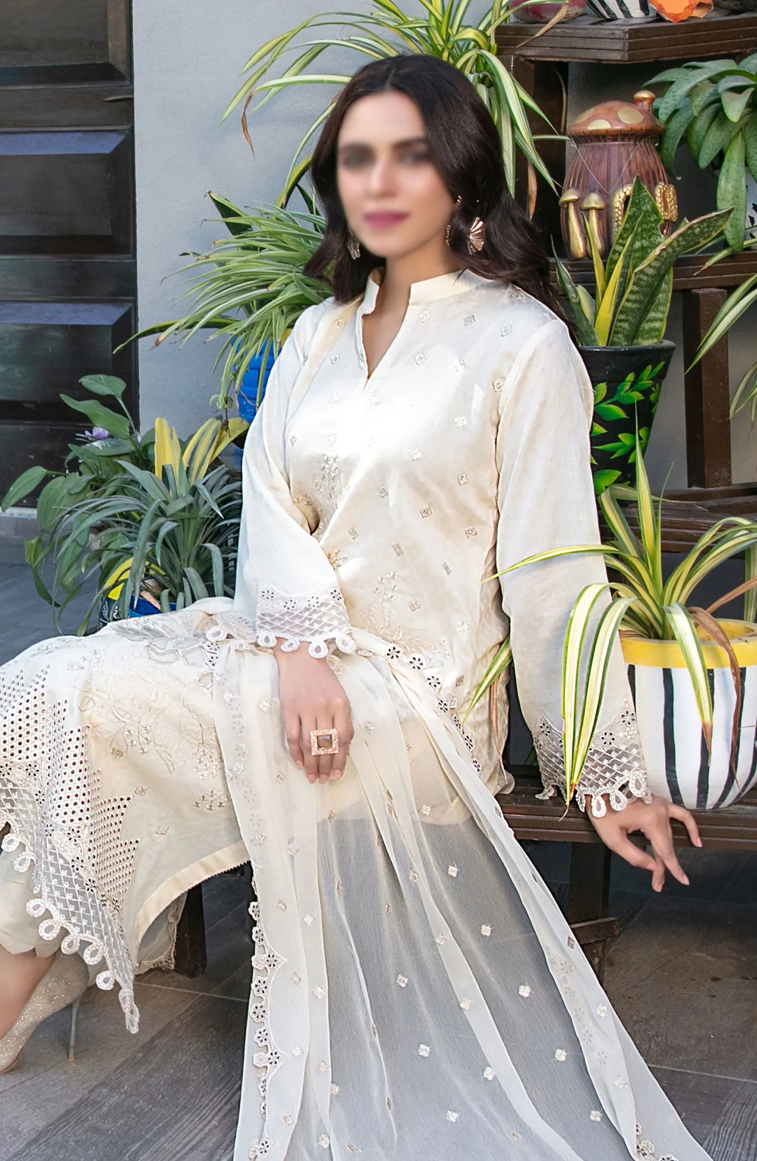Marzhan - Fancy Jacquard Lawn Collection By Tawakkal Fabrics has been styled in the image for photography and illustrative purposes.