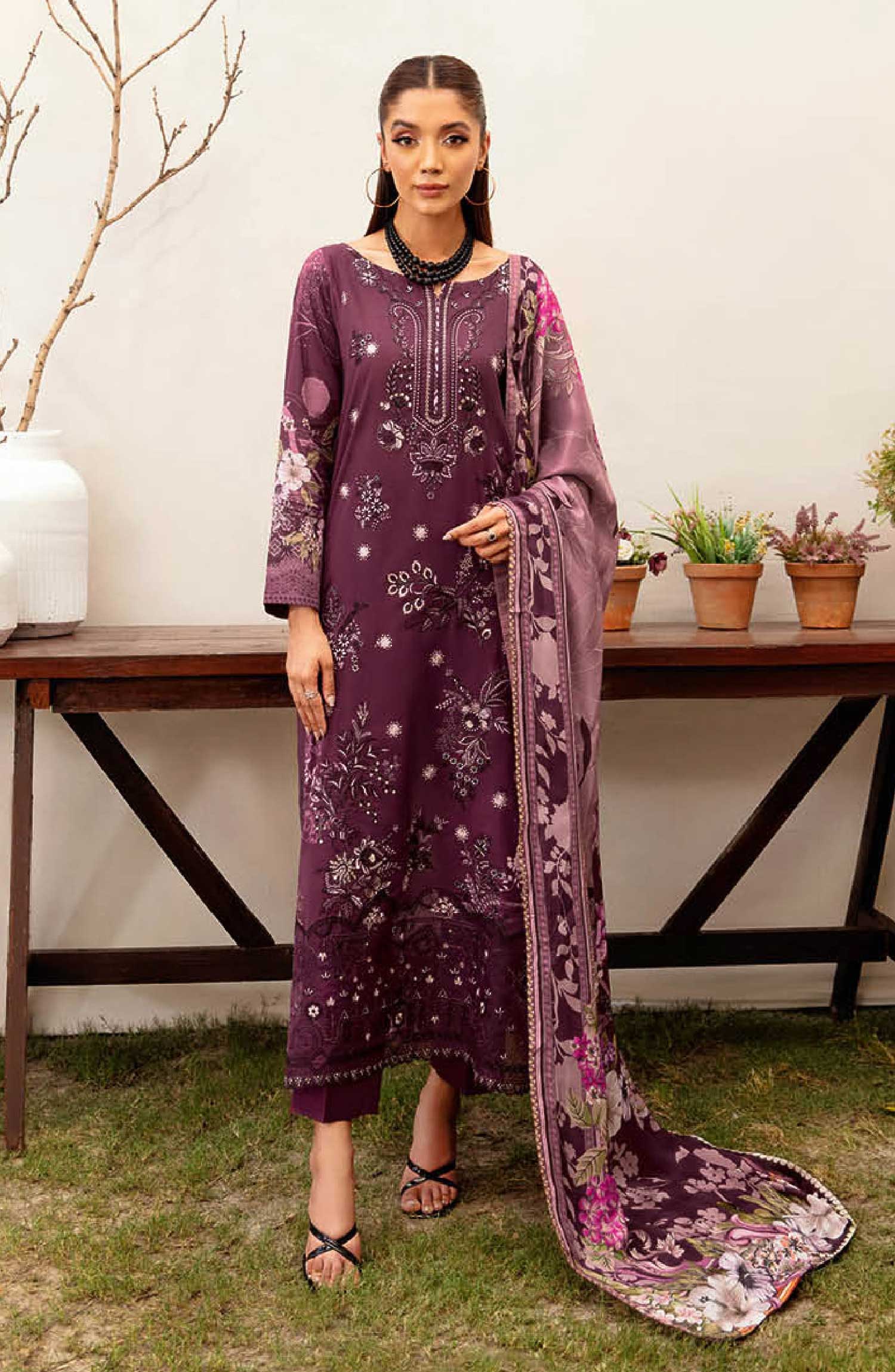 Mashaal by Ramsha Embroidered Lawn Unstitched 3 Piece Suit - L 1201 - R25M12 - Purple - Summer Collection
