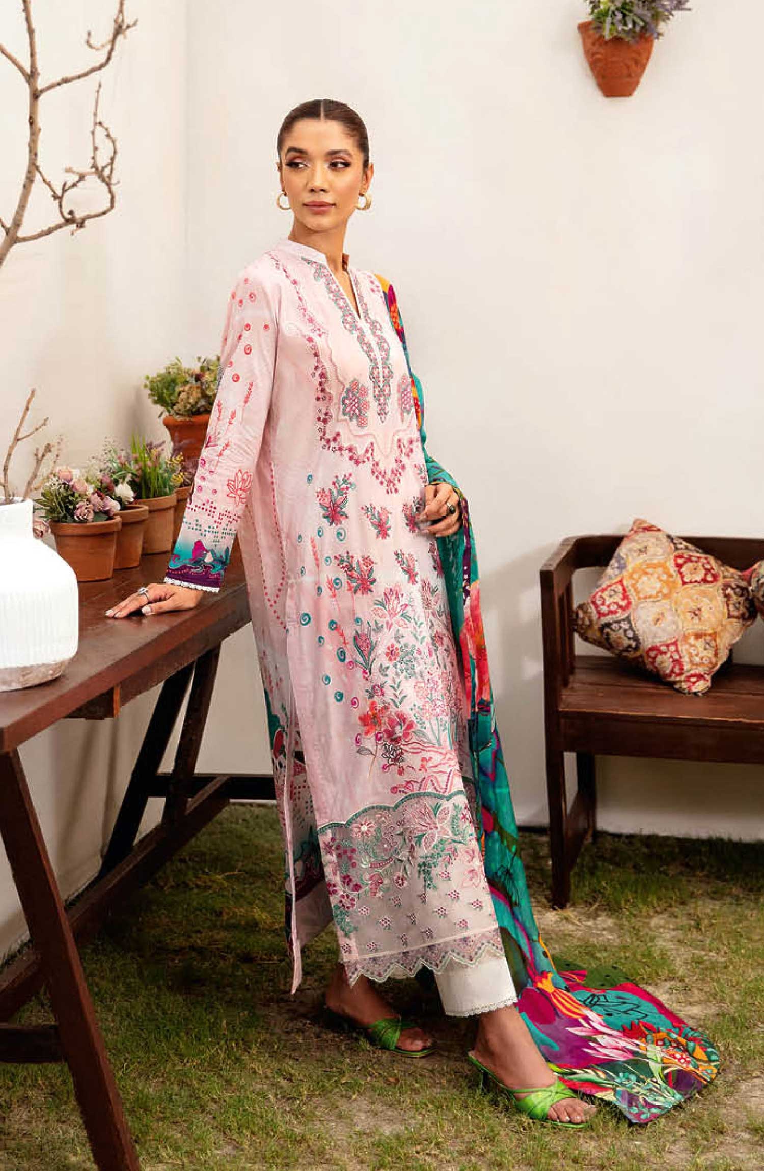 Mashaal by Ramsha Embroidered Lawn Unstitched 3 Piece Suit - L 1204 - R25M12 - Light Pink - Summer Collection