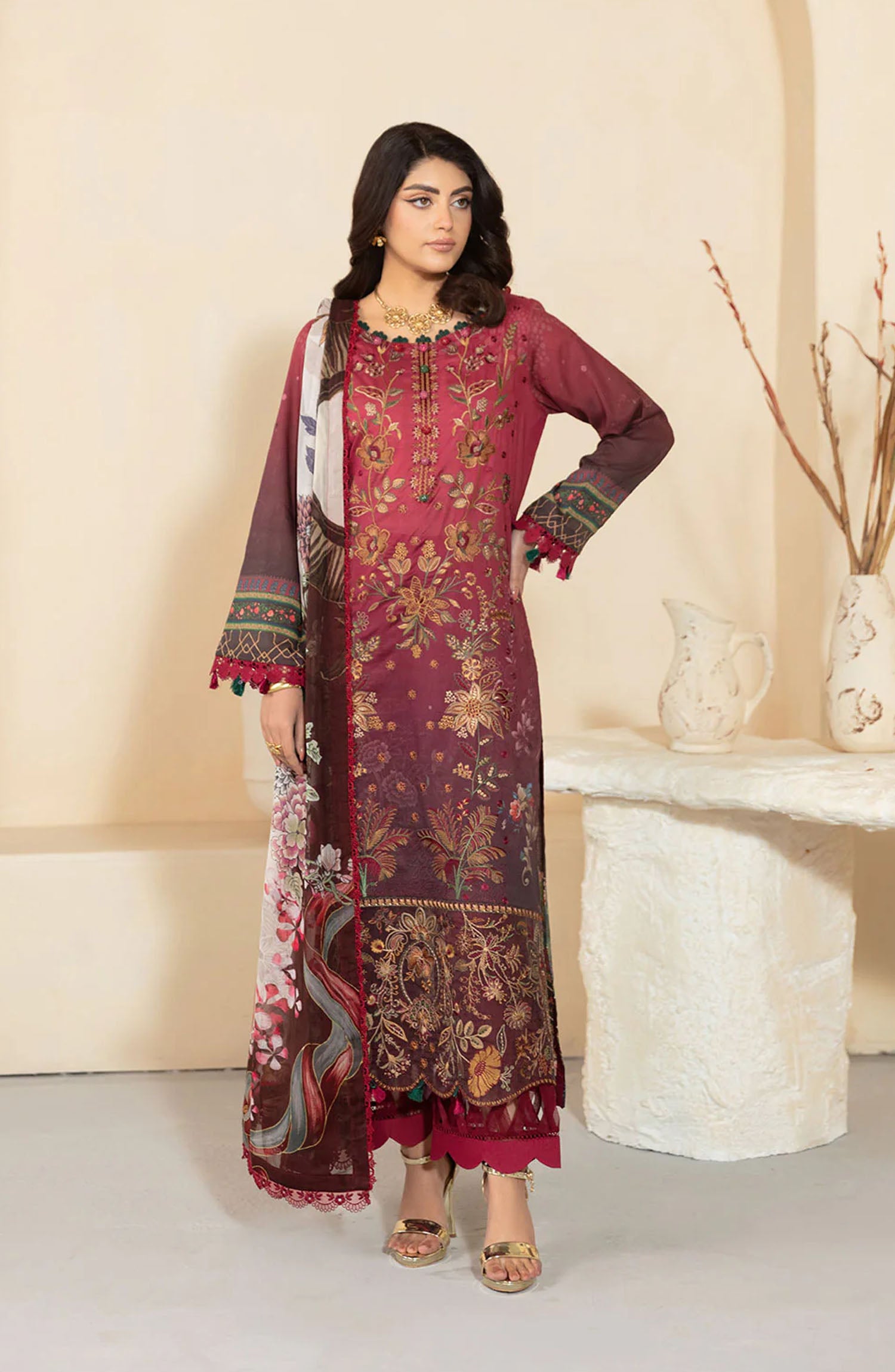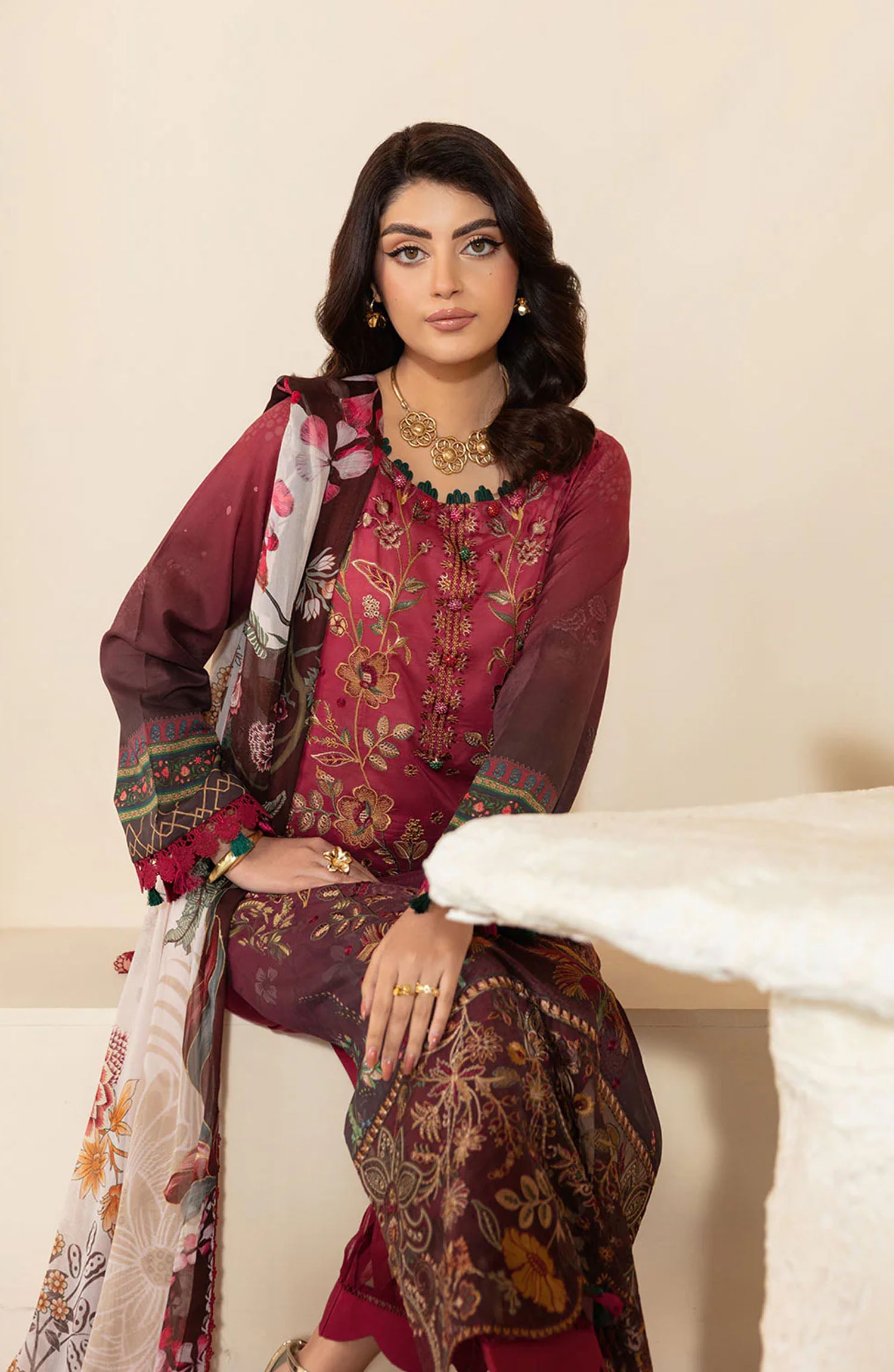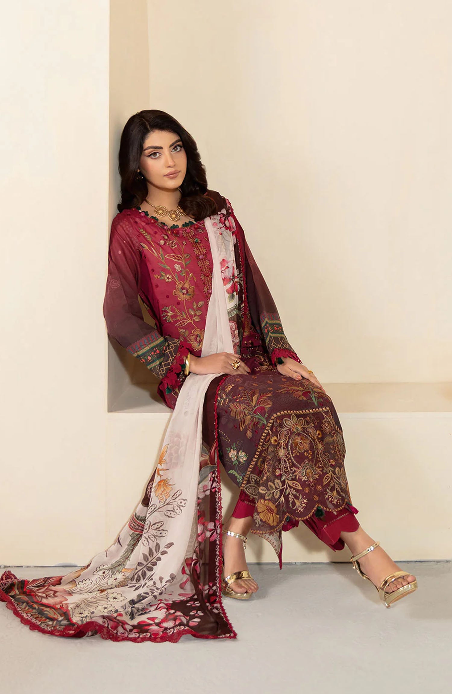 Embroidered lawn front