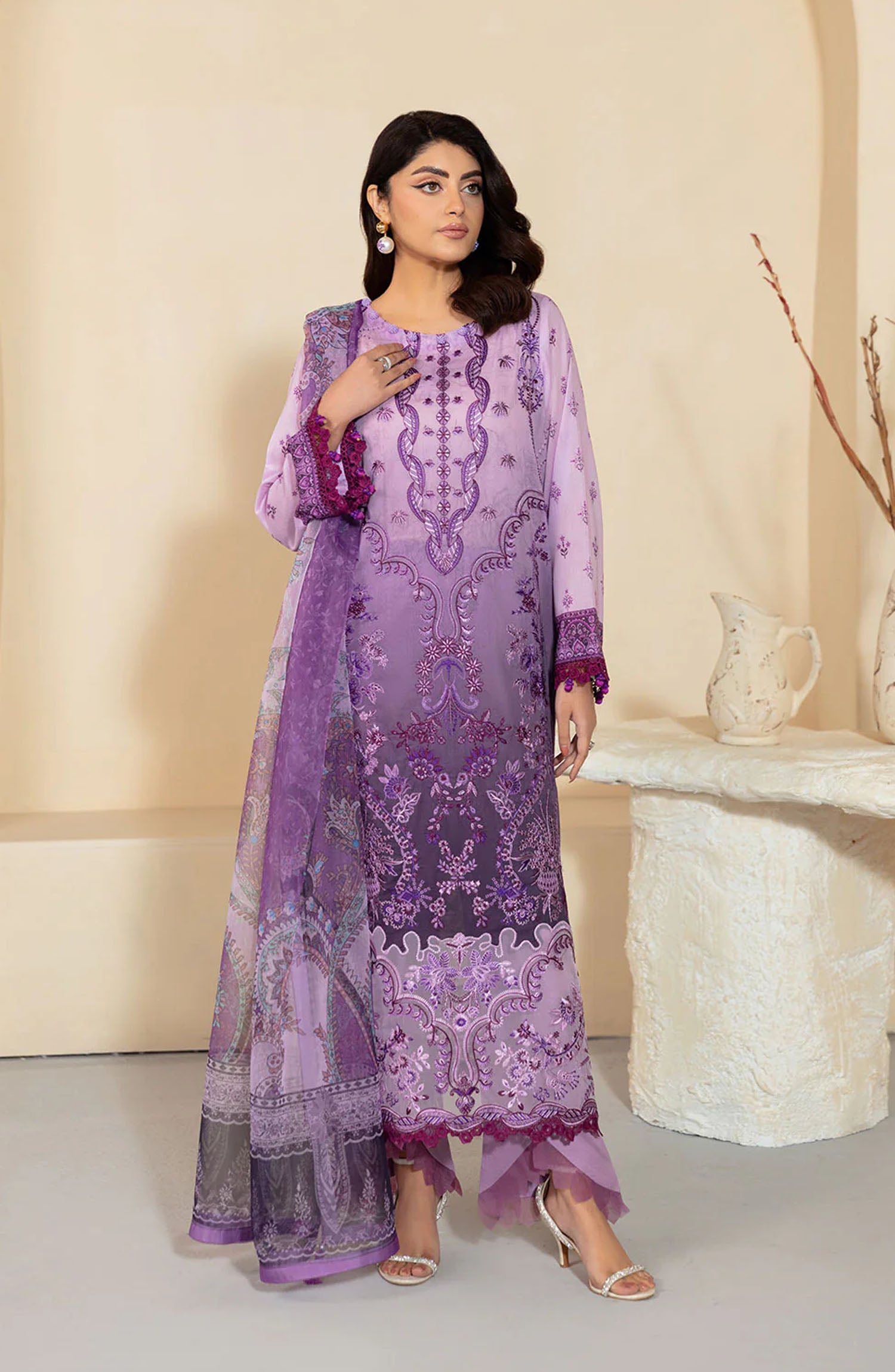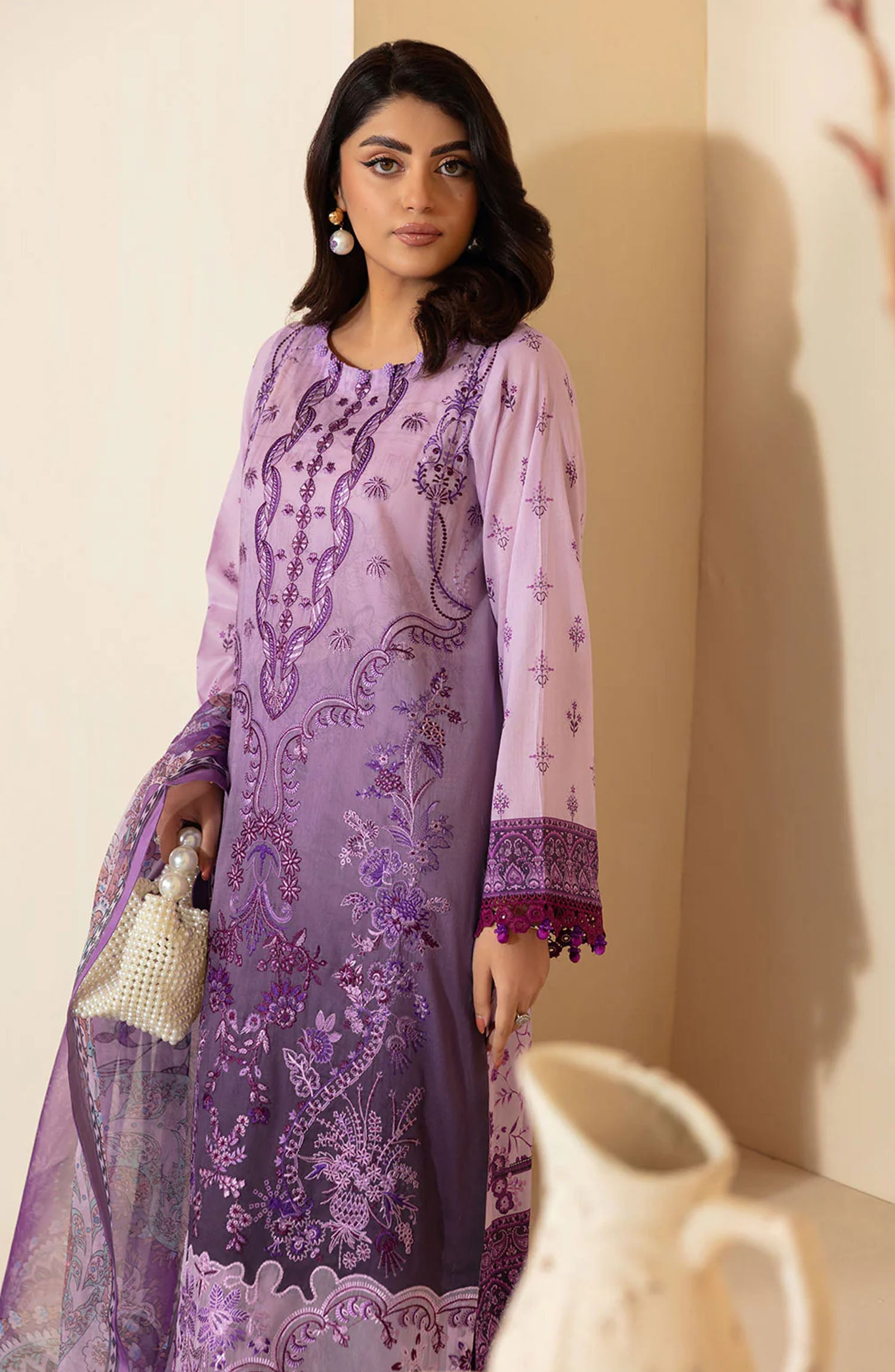 Embroidered lawn front