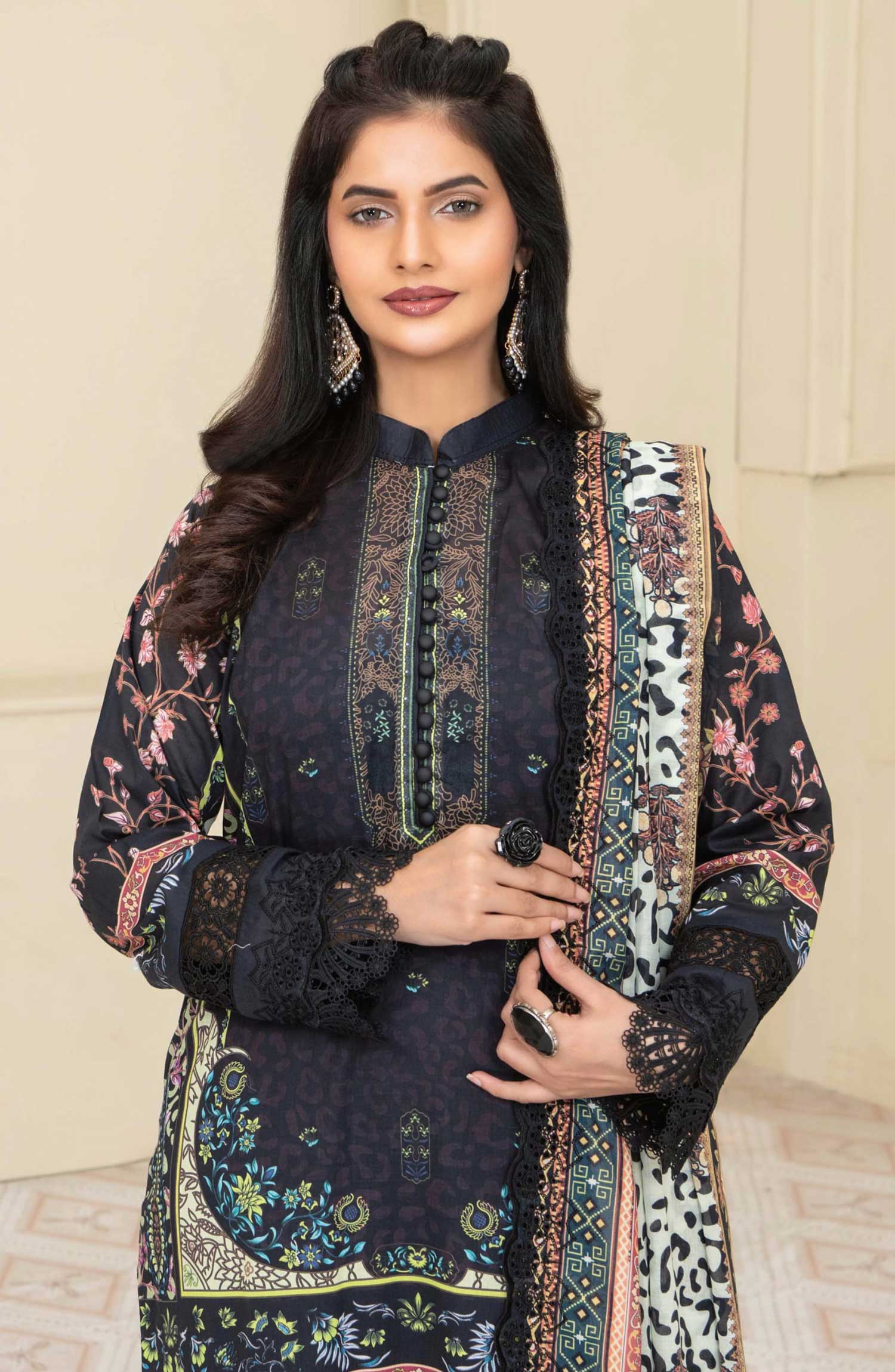 3 Piece Exclusive Digital Printed and Embroidered suit with digital print and embroidered lawn voile dupatta .