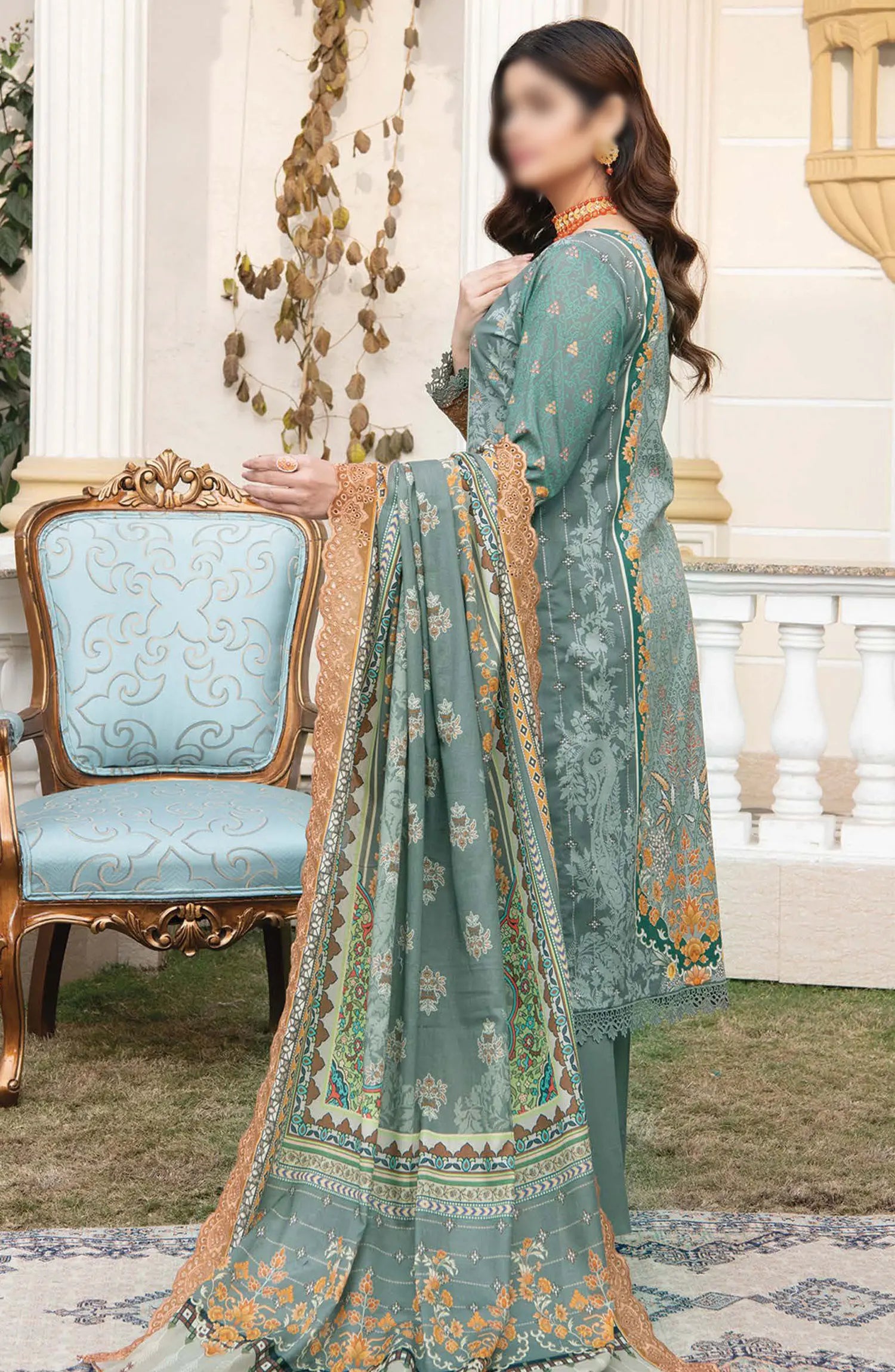 Lamisah by Lavish Premium Afsana Embroidered Chiffon Unstitched 3 Piece Suit - D-04 Mint Whisper - LP25AFS - Blue - Luxury Collection