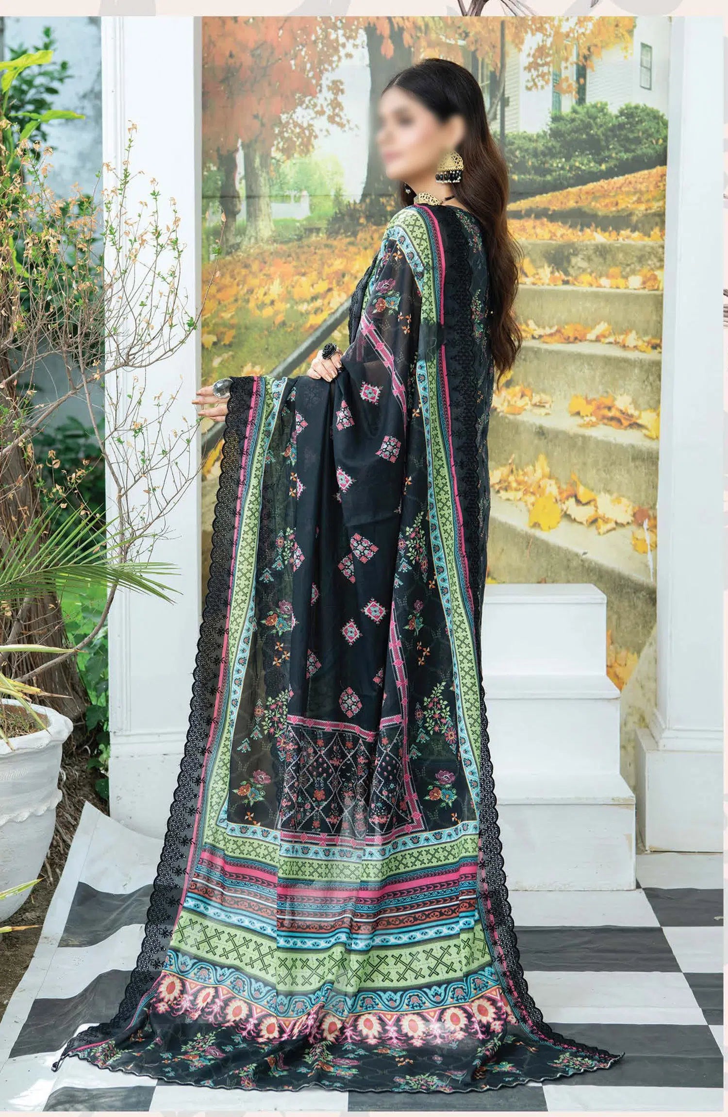 3 Piece Exclusive digital multi allover embroidered lawn with special digital embroidered voile dupatta.